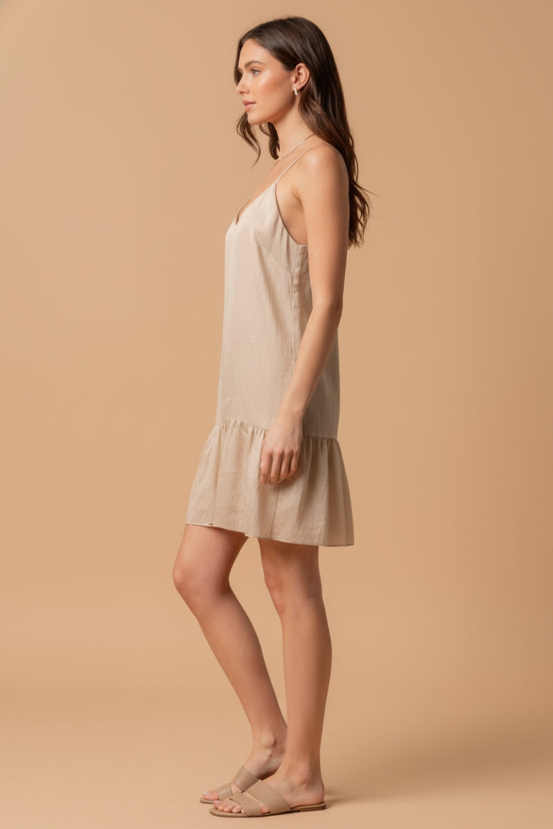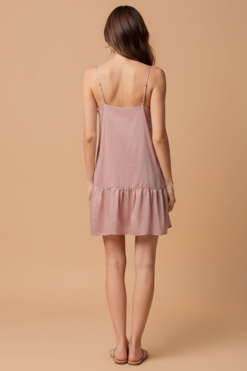 Linen Ruffle-Hem Mini Dress