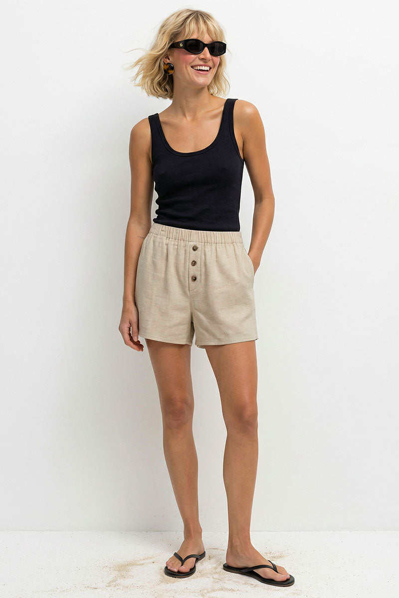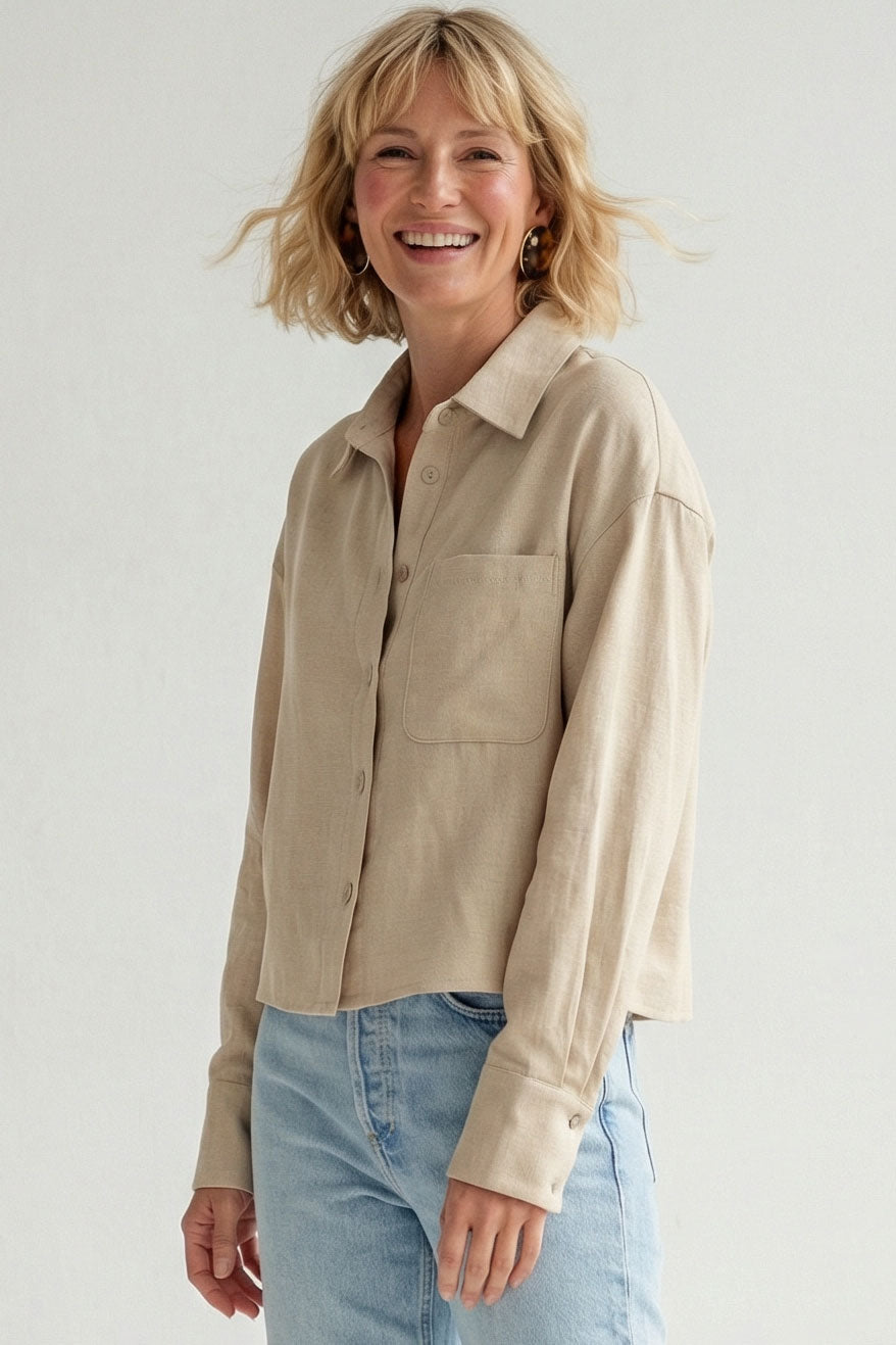 Linen Hidden-placket Blouse