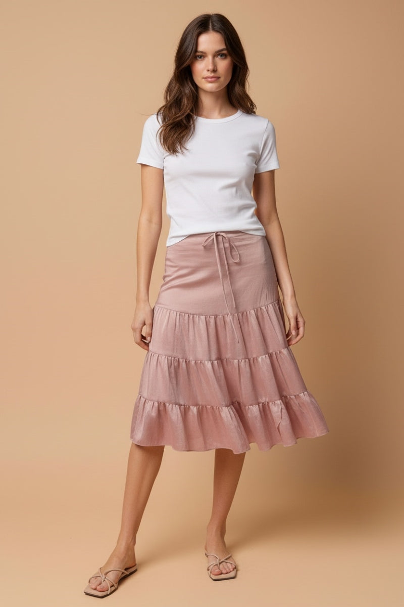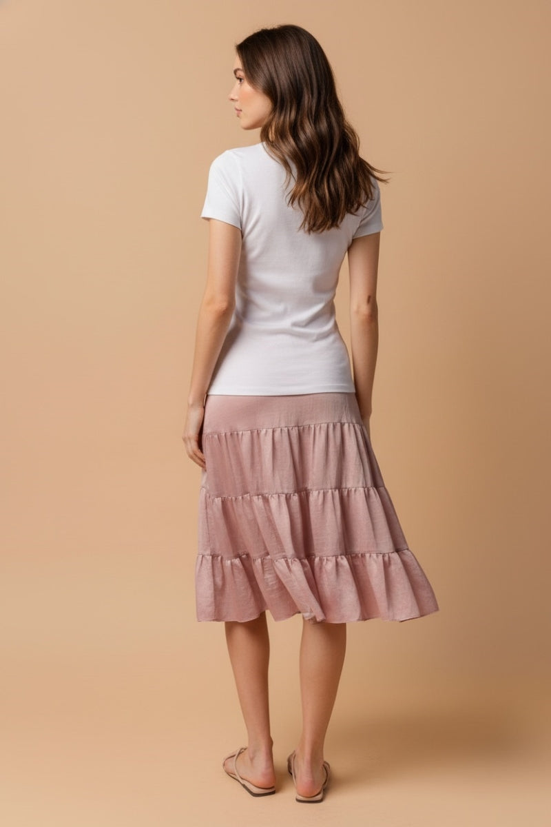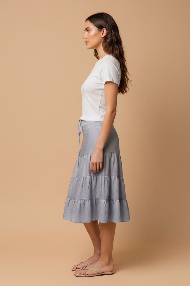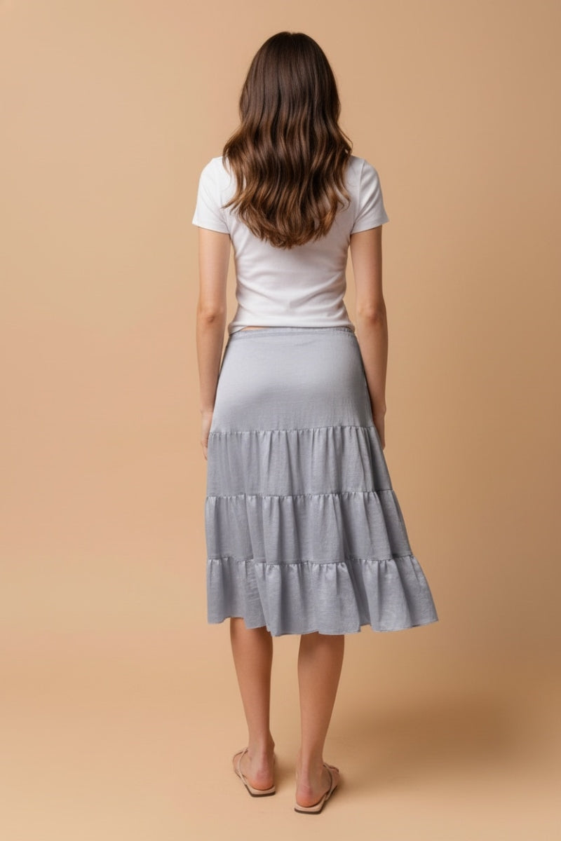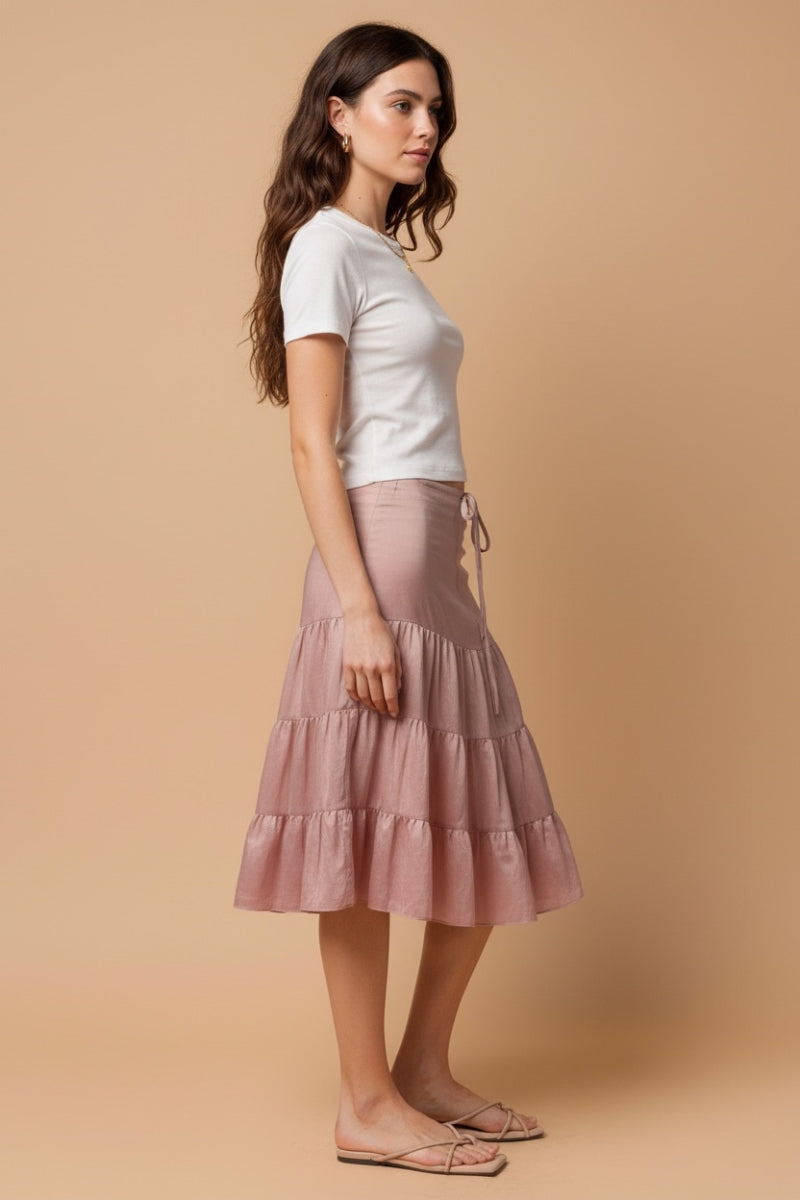Linen Drop-Waist Tiered Midi Skirt