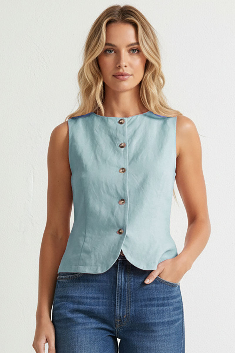 Sleeveless Woven Vest With Back Tie