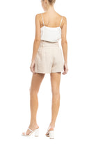 Soft, breathable linen fabric with a flattering paper bag waist.