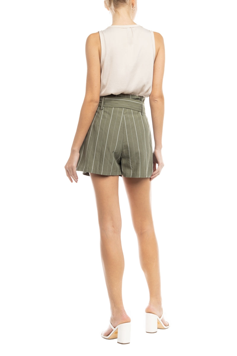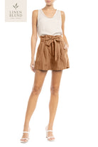 Women's Paper Bag Striped Linen Shorts.