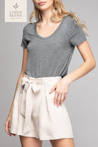 Soft, breathable linen-tencel fabric with a flattering paper bag waist for a relaxed fit.
