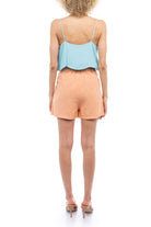 These shorts feature practical front pockets and a relaxed fit, offering both style and convenience. Crafted from a lightweight, breathable fabric, they are perfect for warm weather, providing all-day comfort. The versatile design makes them easy to pair with casual tops for a laid-back look or dressier blouses for a more refined ensemble.