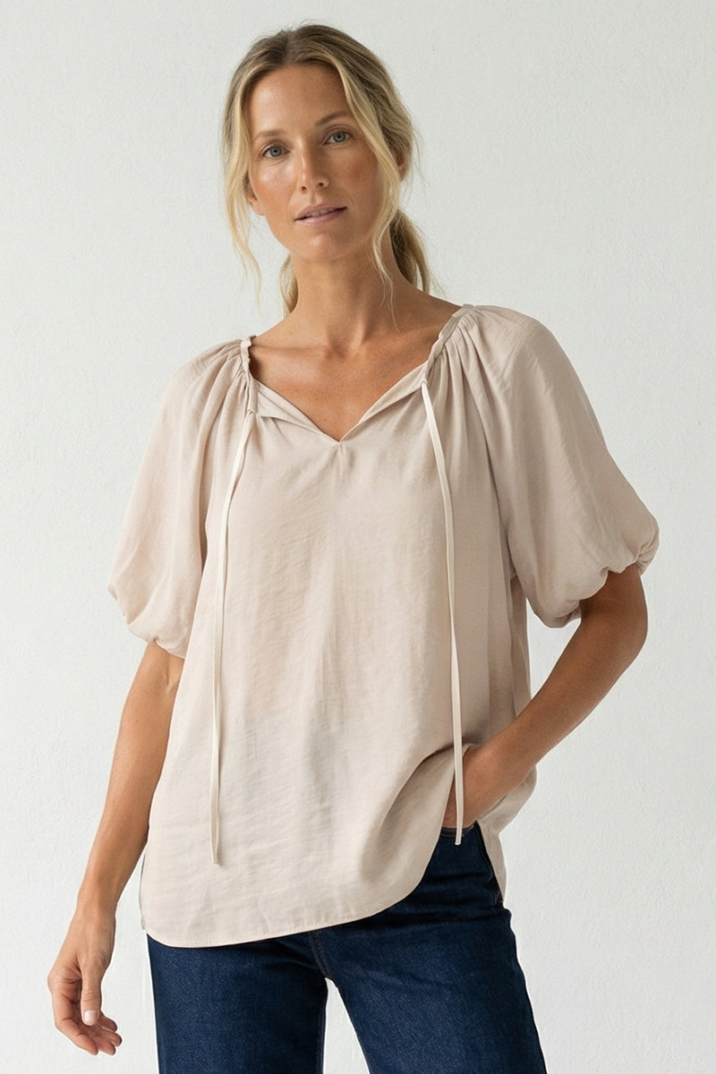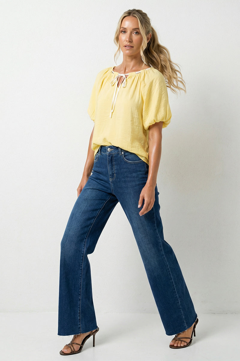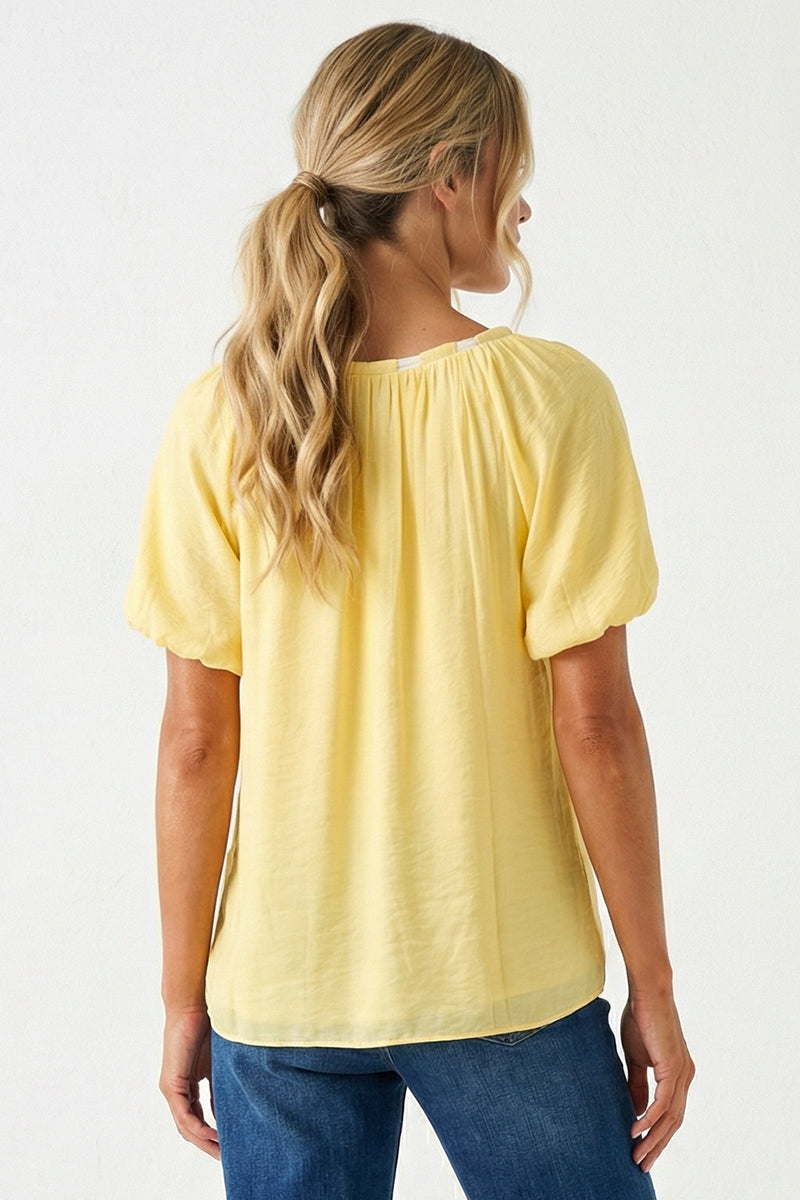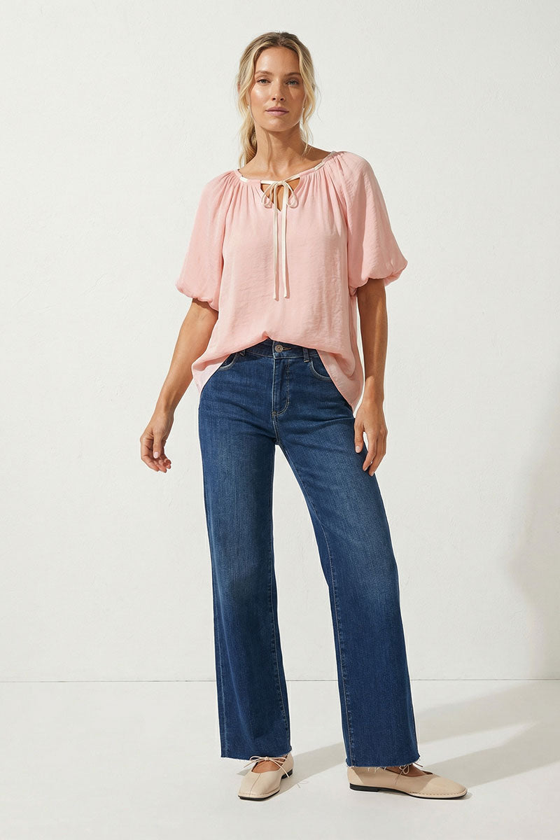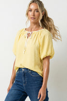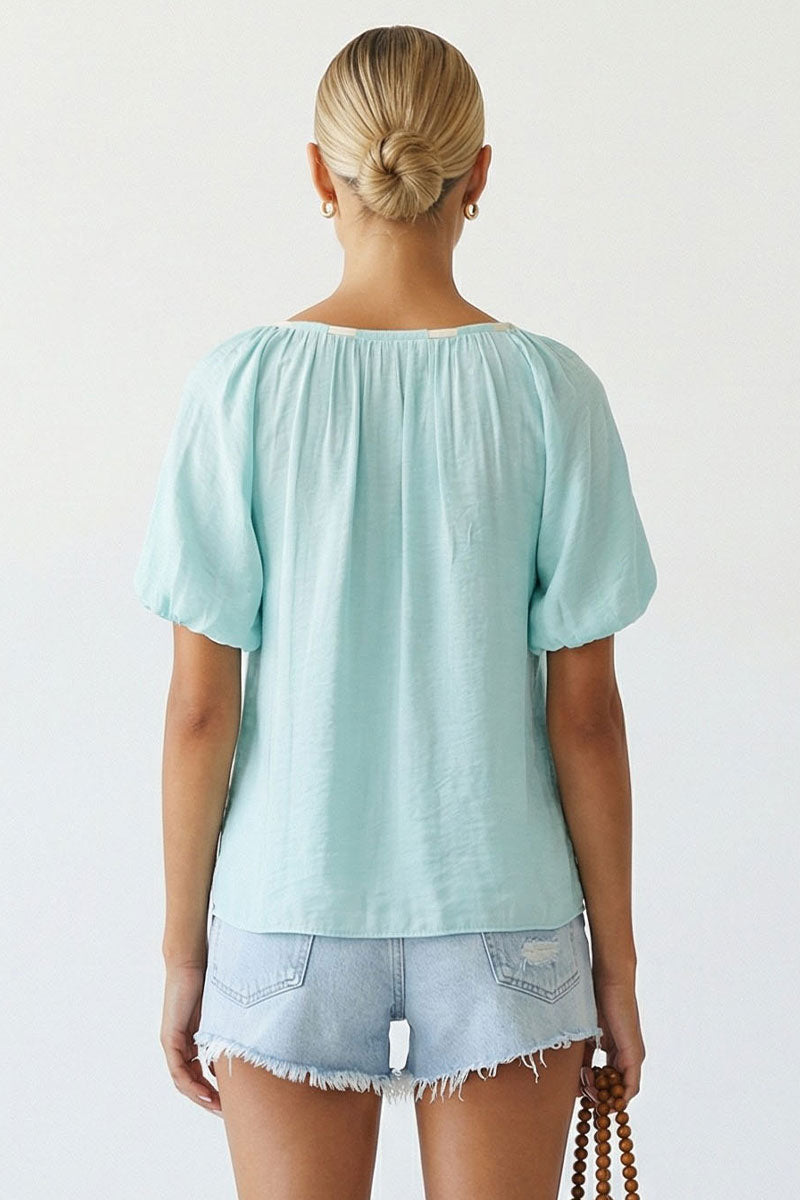 ╴Women's Contrast Drawstring Detail Bubble Sleeve Blouse