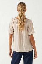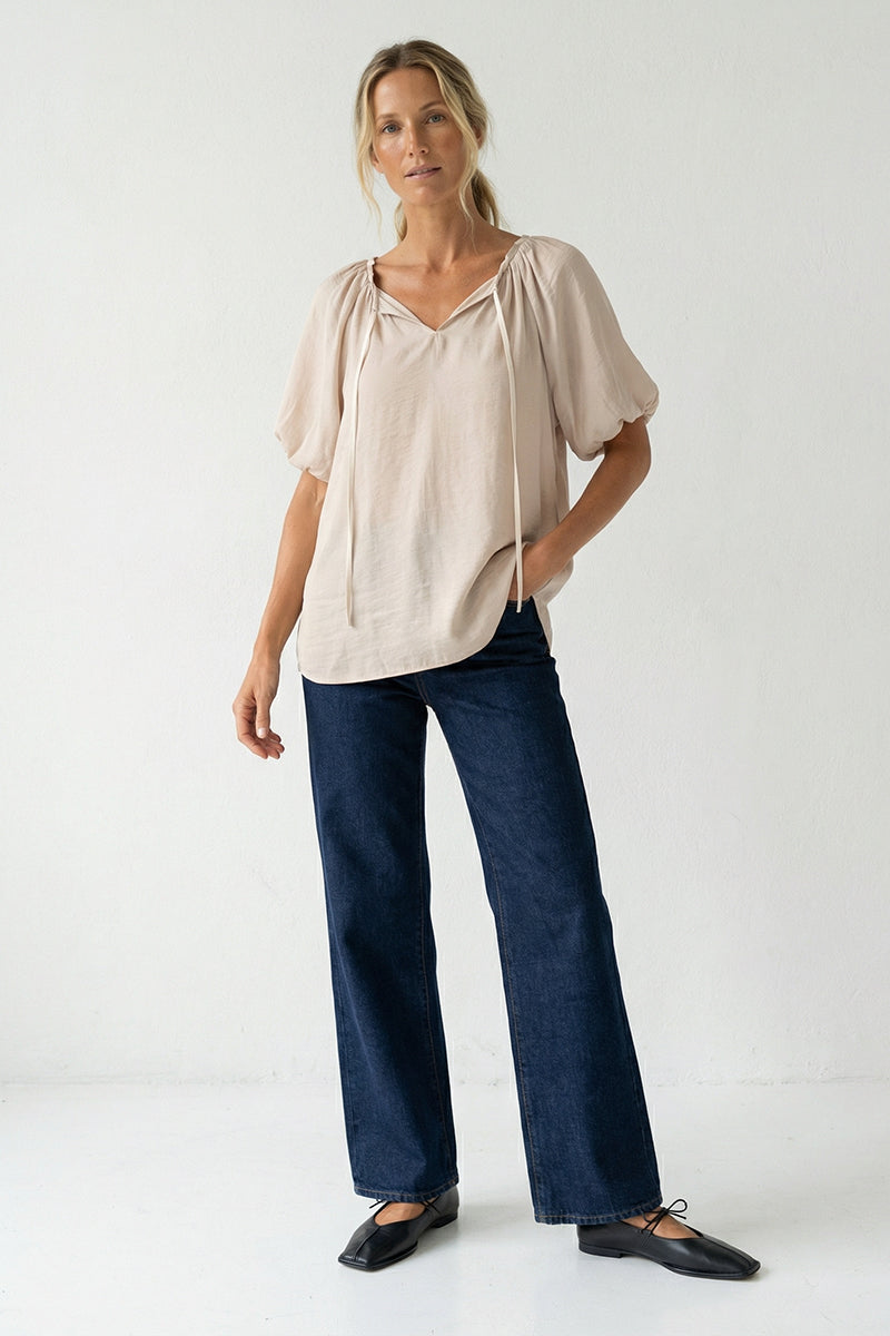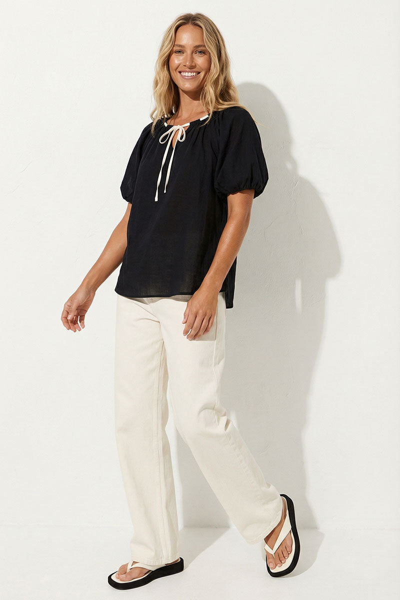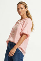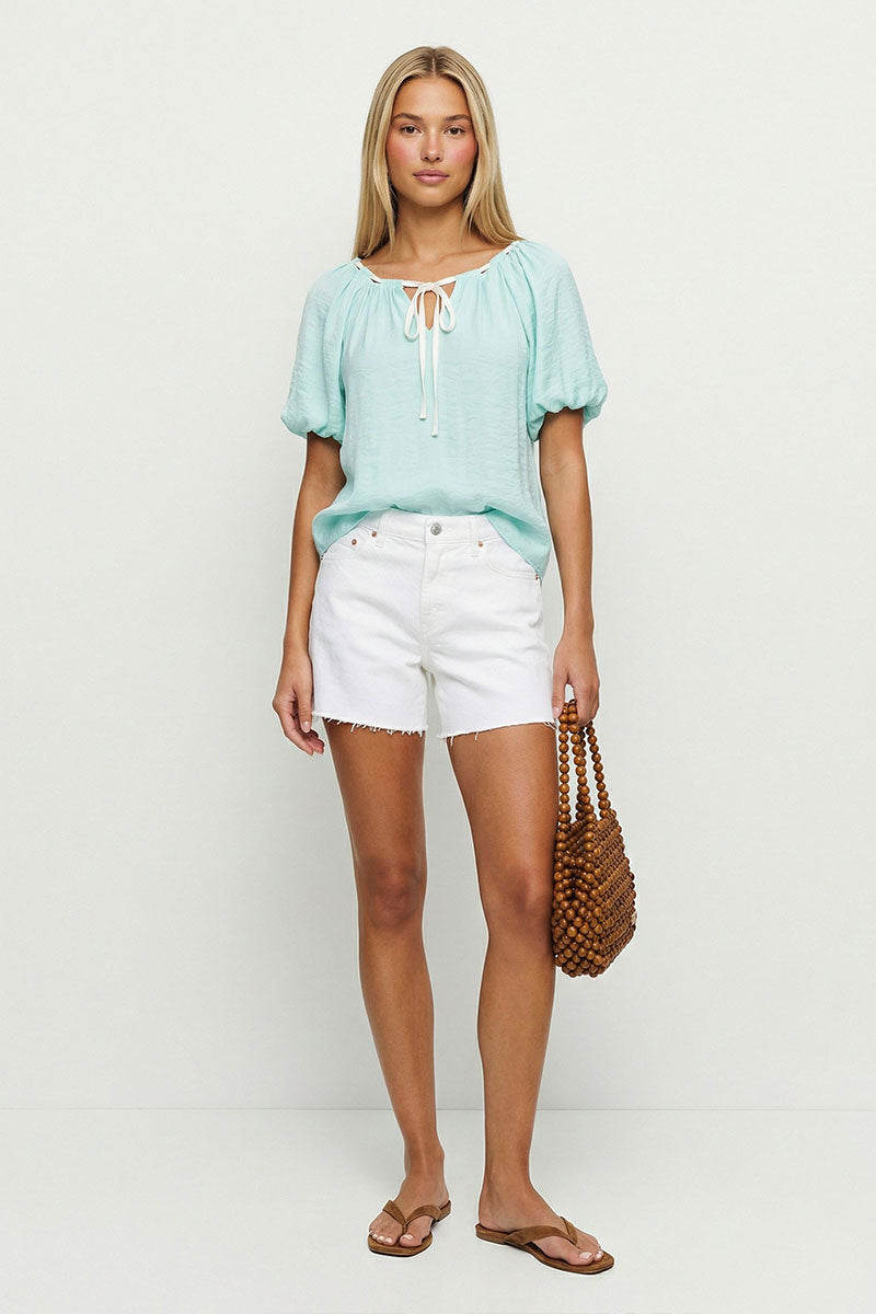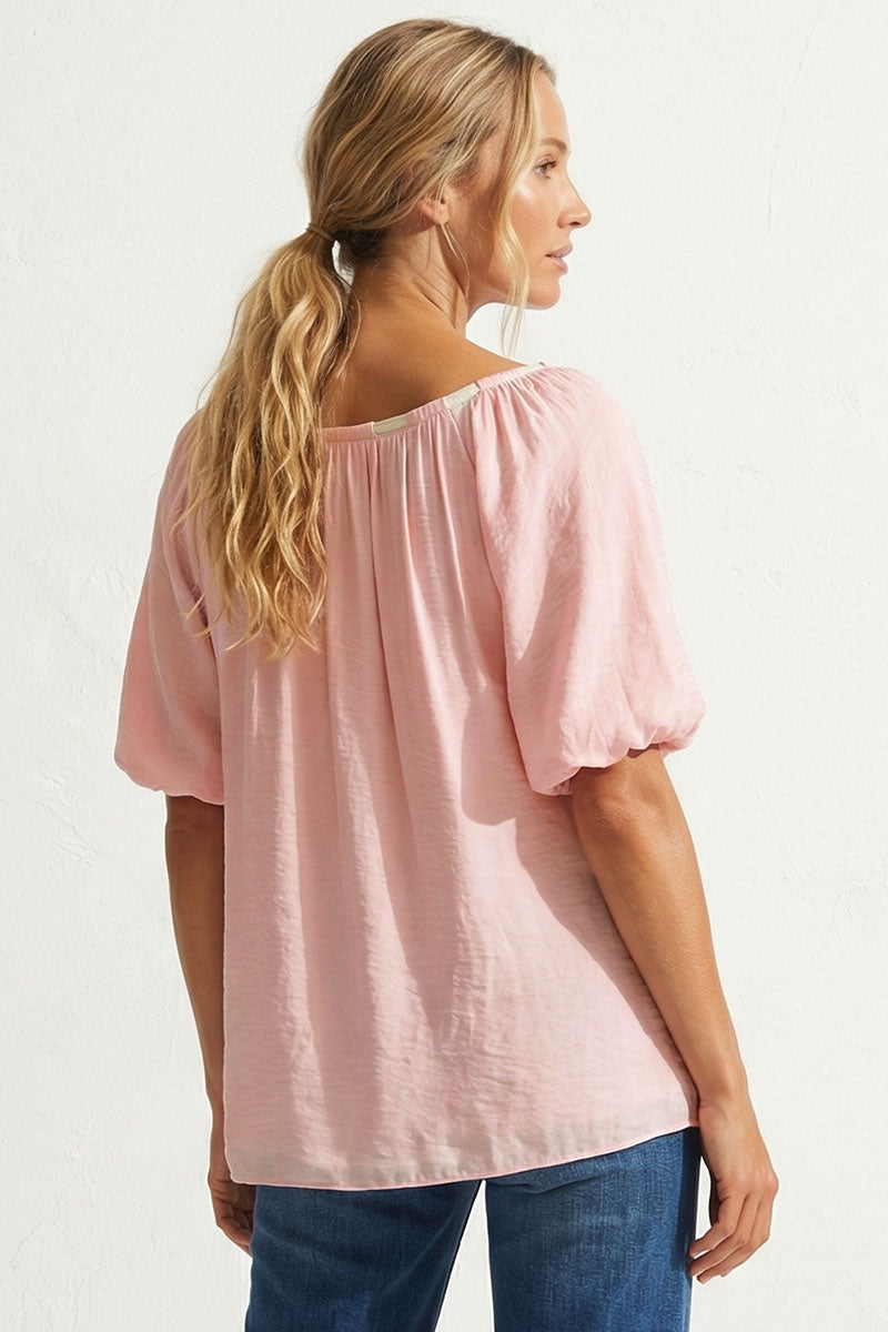 ╴Women's Contrast Drawstring Detail Bubble Sleeve Blouse