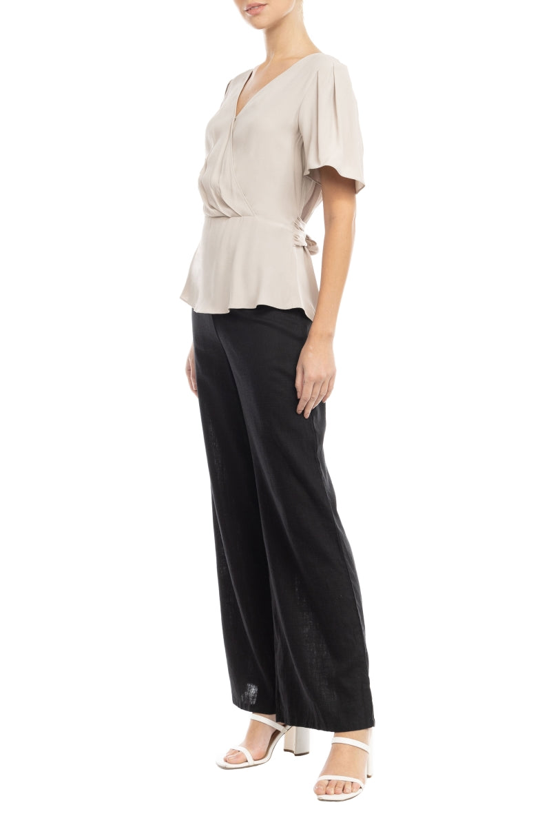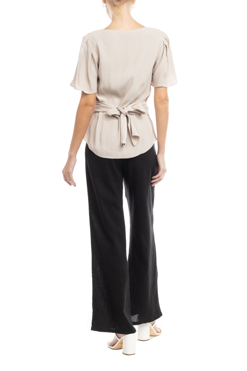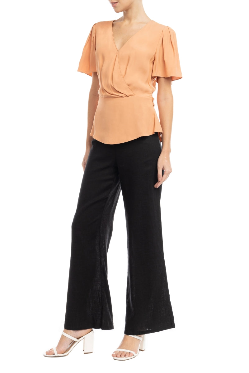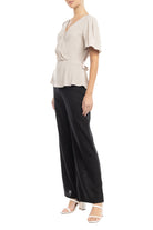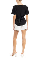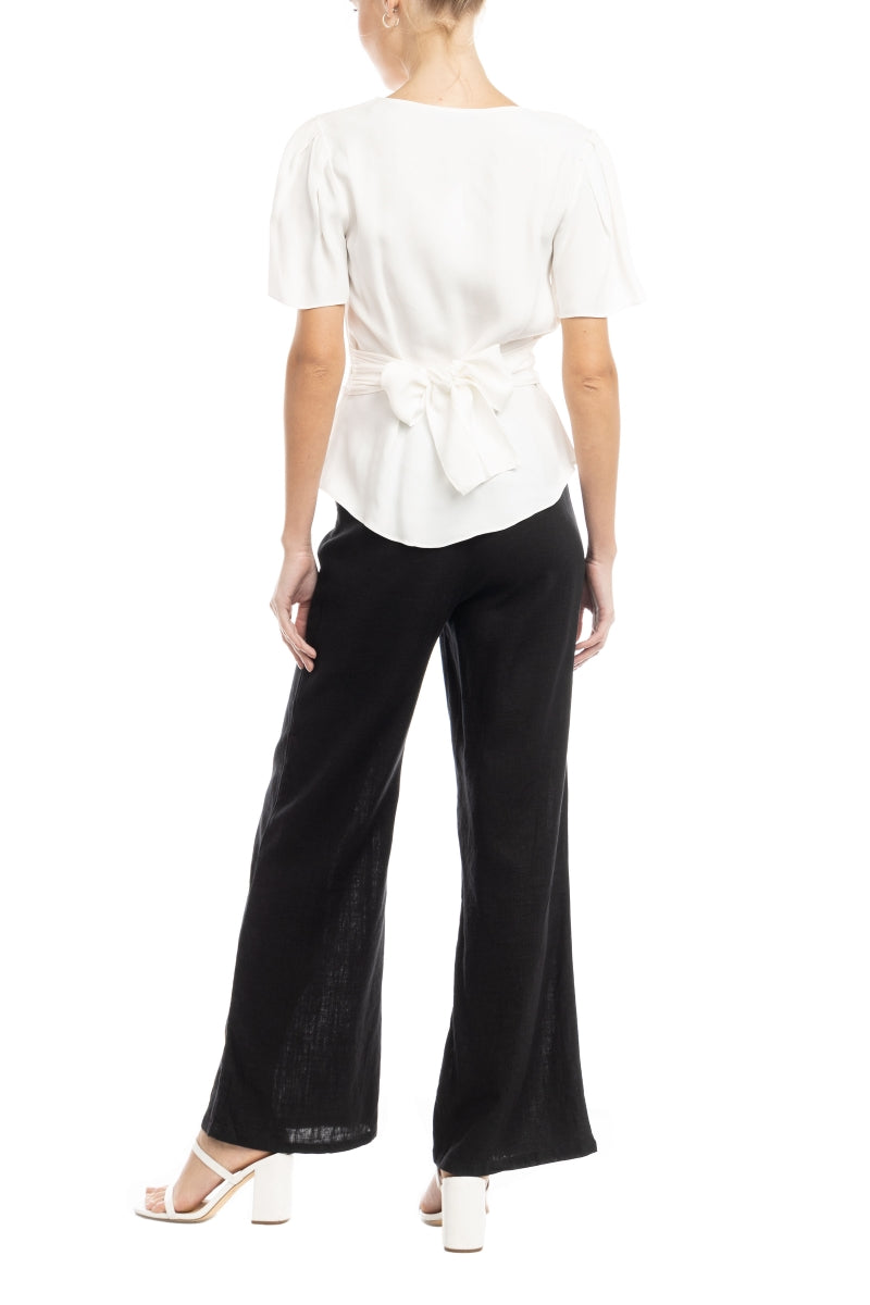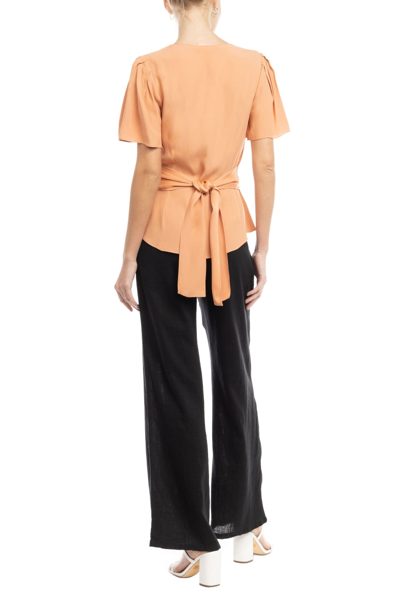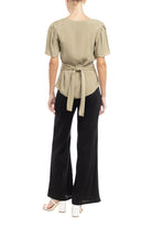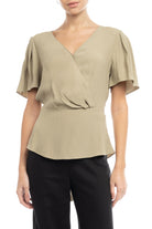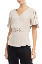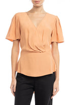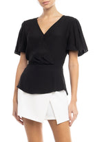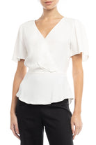 Elevate your style with the Faux Wrap Peplum Blouse, featuring short sleeves and a tie in the back, made by Lost April, Naked Zebra's sister company. This blouse seamlessly blends sophistication with modern design, showcasing a faux wrap silhouette, a stylish peplum detail, and a charming tie in the back. The short sleeves add a touch of elegance, making it perfect for various occasions. Upgrade your fashion effortlessly with this chic piece, ensuring a stylish and refined appearance with ease.