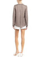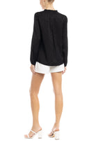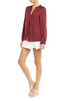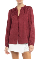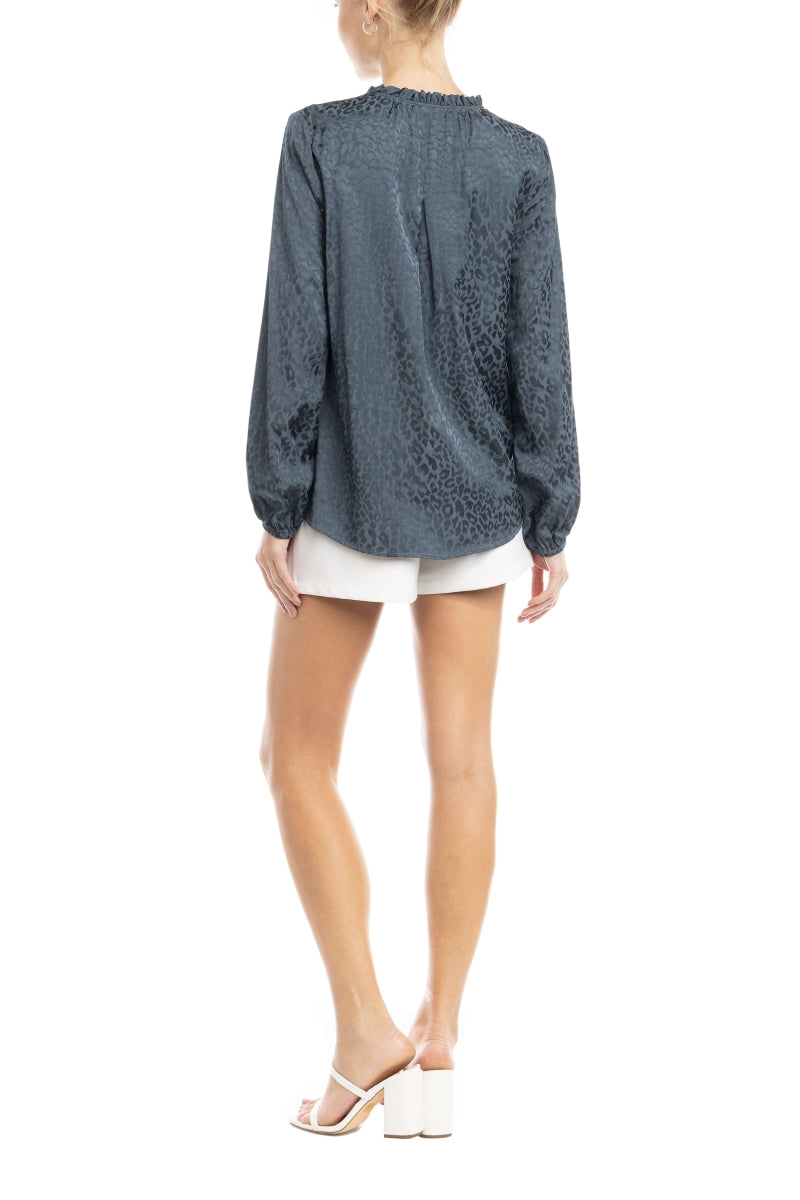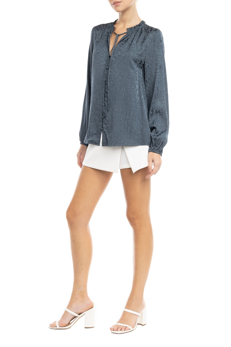 Jacquard Button Front Long Sleeve Blouse