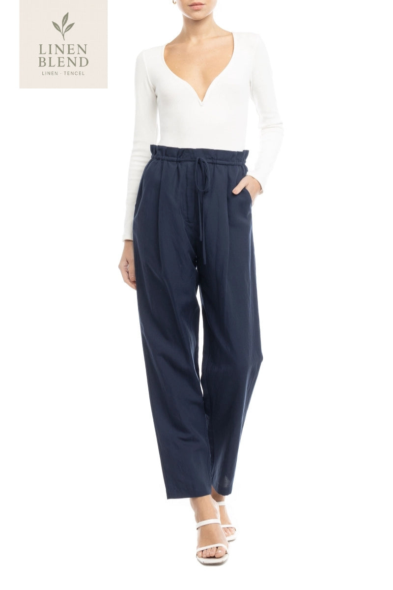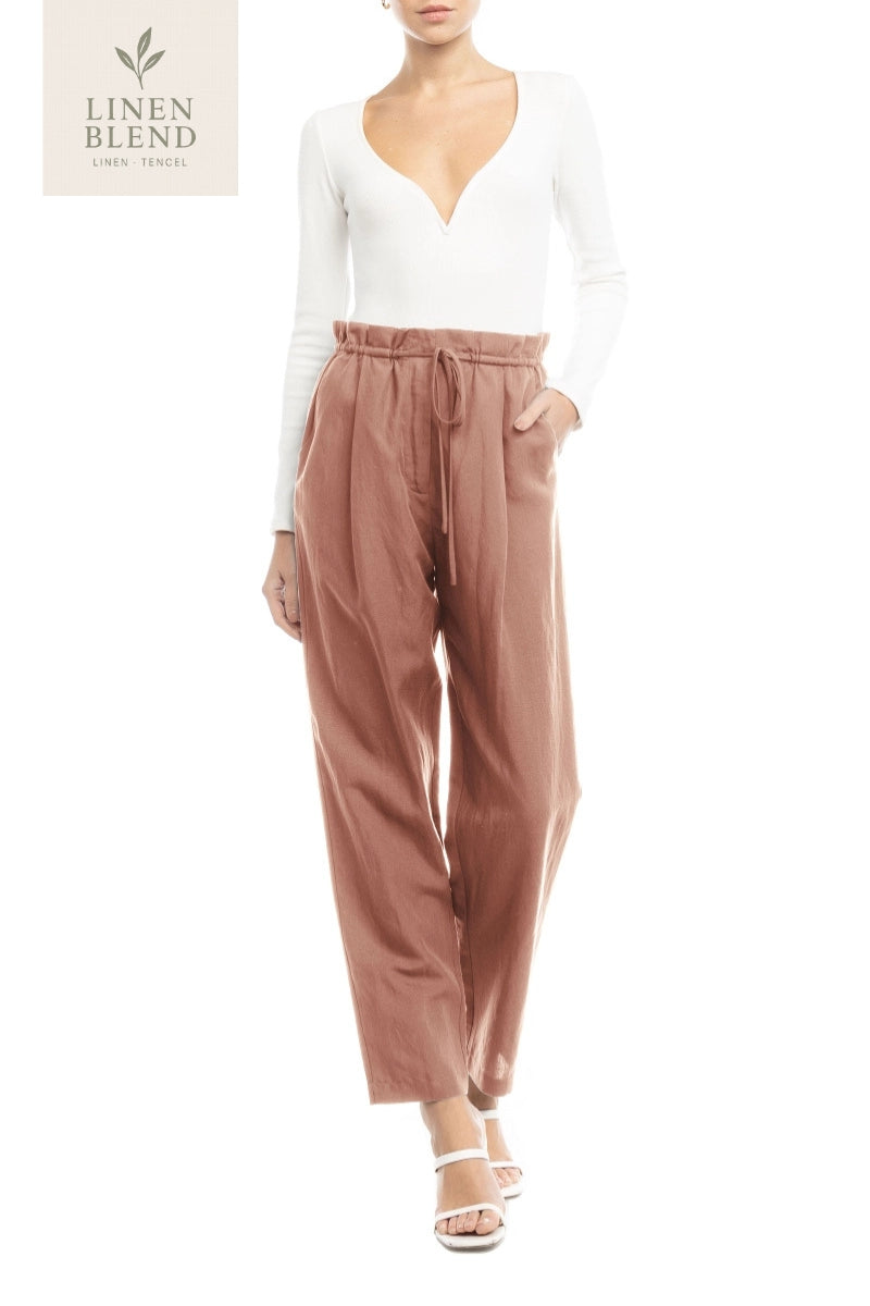 Paperbag Linen Pants with Drawstring Detail