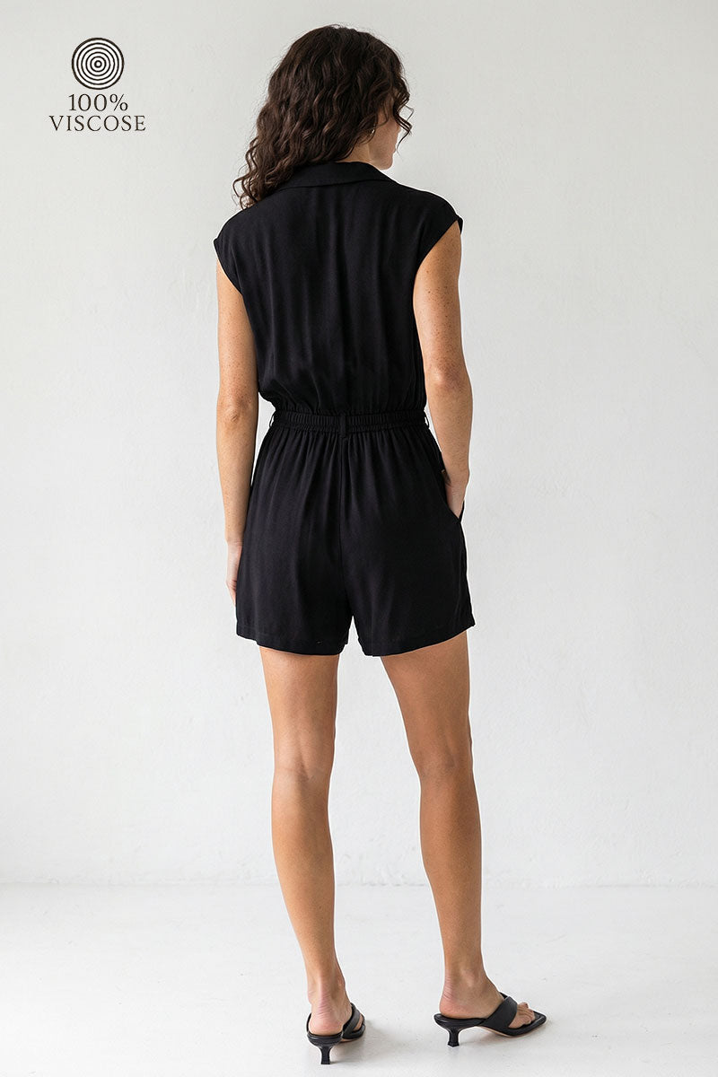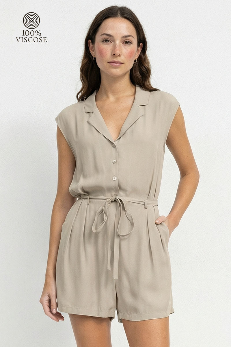 Short Drop Sleeve Lapel Collared Romper