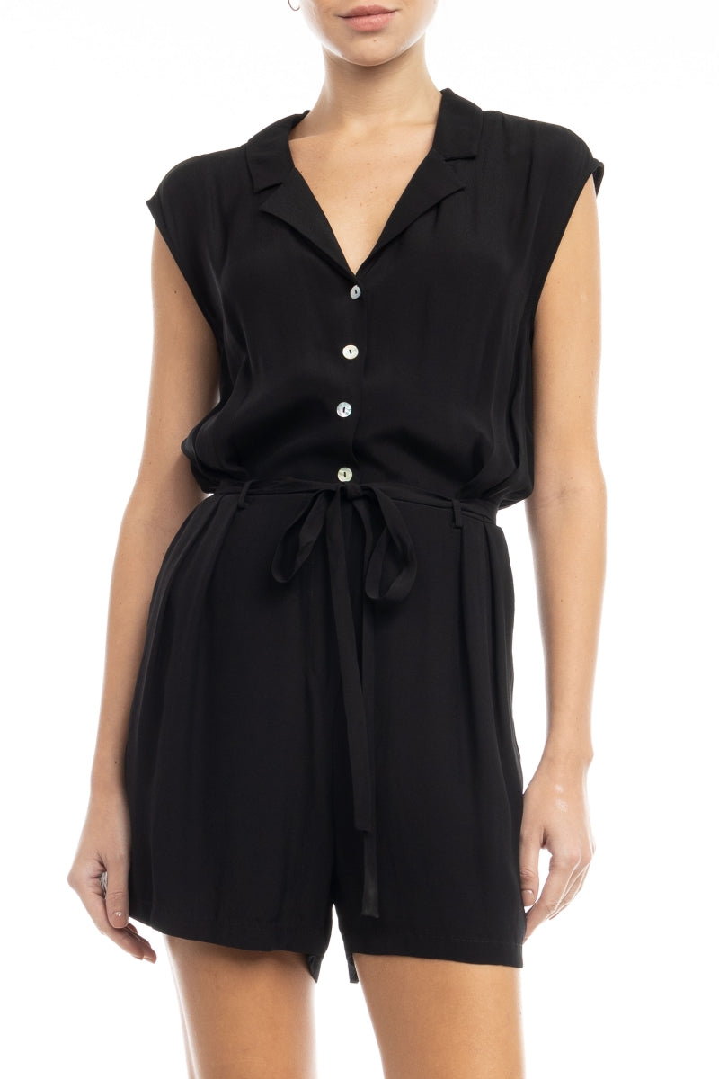 Step into chic style with our Short Drop Sleeve Lapel Collared Romper featuring a tie at the waist, brought to you by Lost April, Naked Zebra's sister company. The drop sleeve and lapel collared design add a touch of modern sophistication, while the tie at the waist enhances the overall silhouette. Perfect for a trendy and comfortable ensemble, this romper effortlessly combines fashion and ease, embodying the unique aesthetic of Lost April.