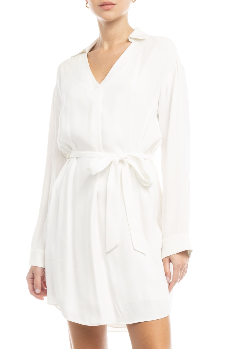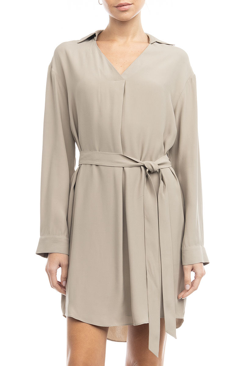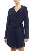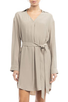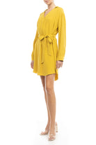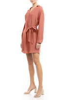 Revitalize your wardrobe with the V-Neck Pleated Center Shift Dress With Tie from Lost April, the sister company of Naked Zebra. This chic and versatile dress features a flattering V-neckline, a pleated center for added elegance, and a tie detail for a touch of sophistication. Perfect for various occasions, this shift dress from Lost April seamlessly combines comfort with a fashionable flair. Elevate your fashion with this on-trend piece that effortlessly enhances your wardrobe for a polished and refined appearance.