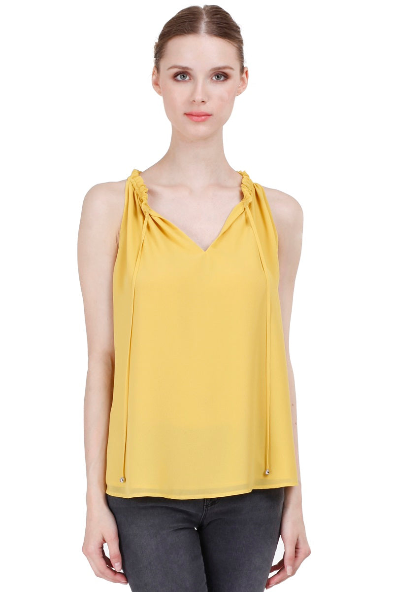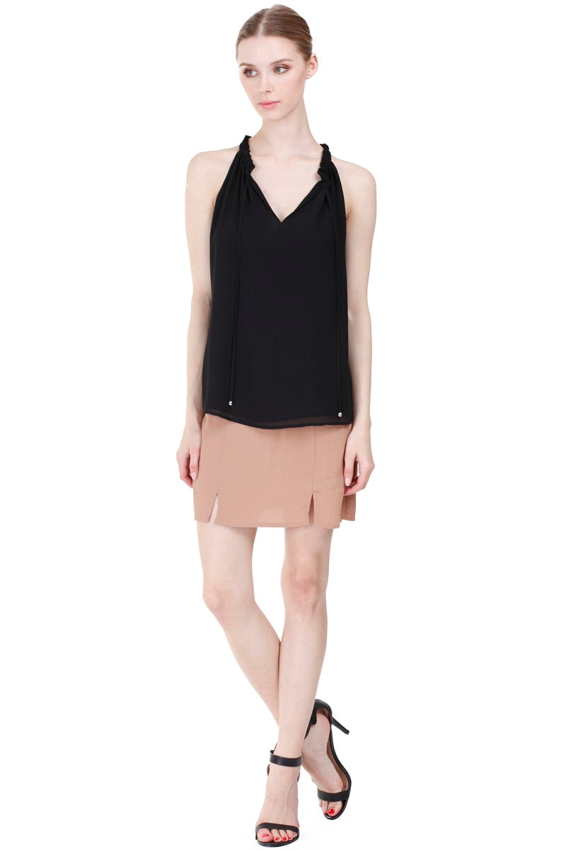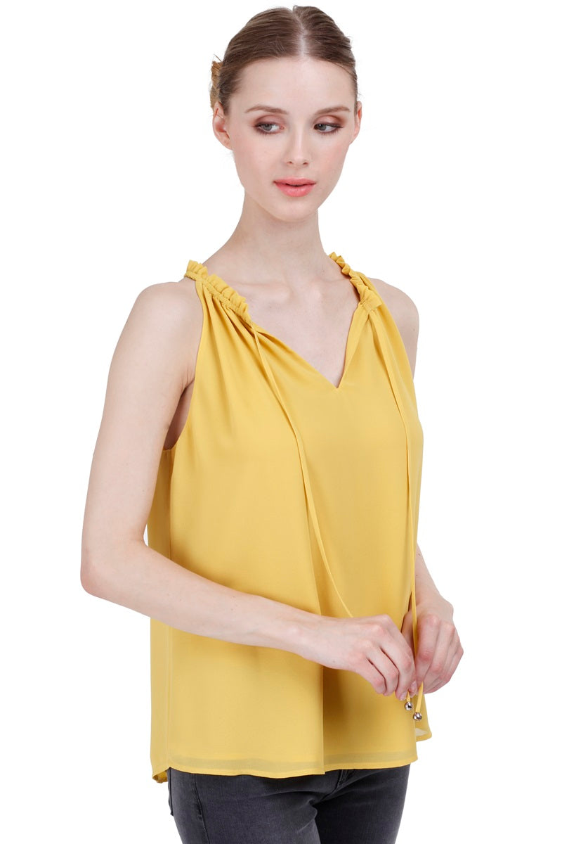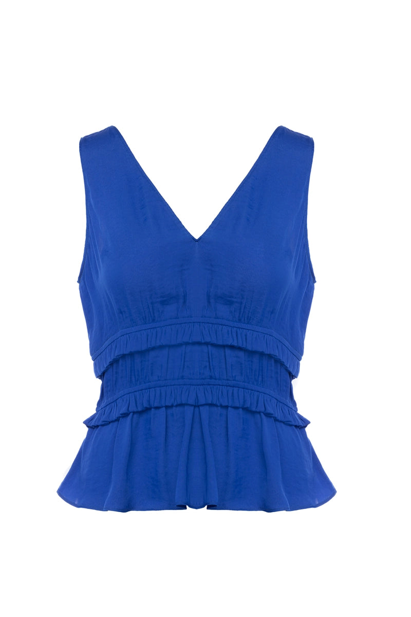 V-neck Double Tiered Waist Sleeveless Top