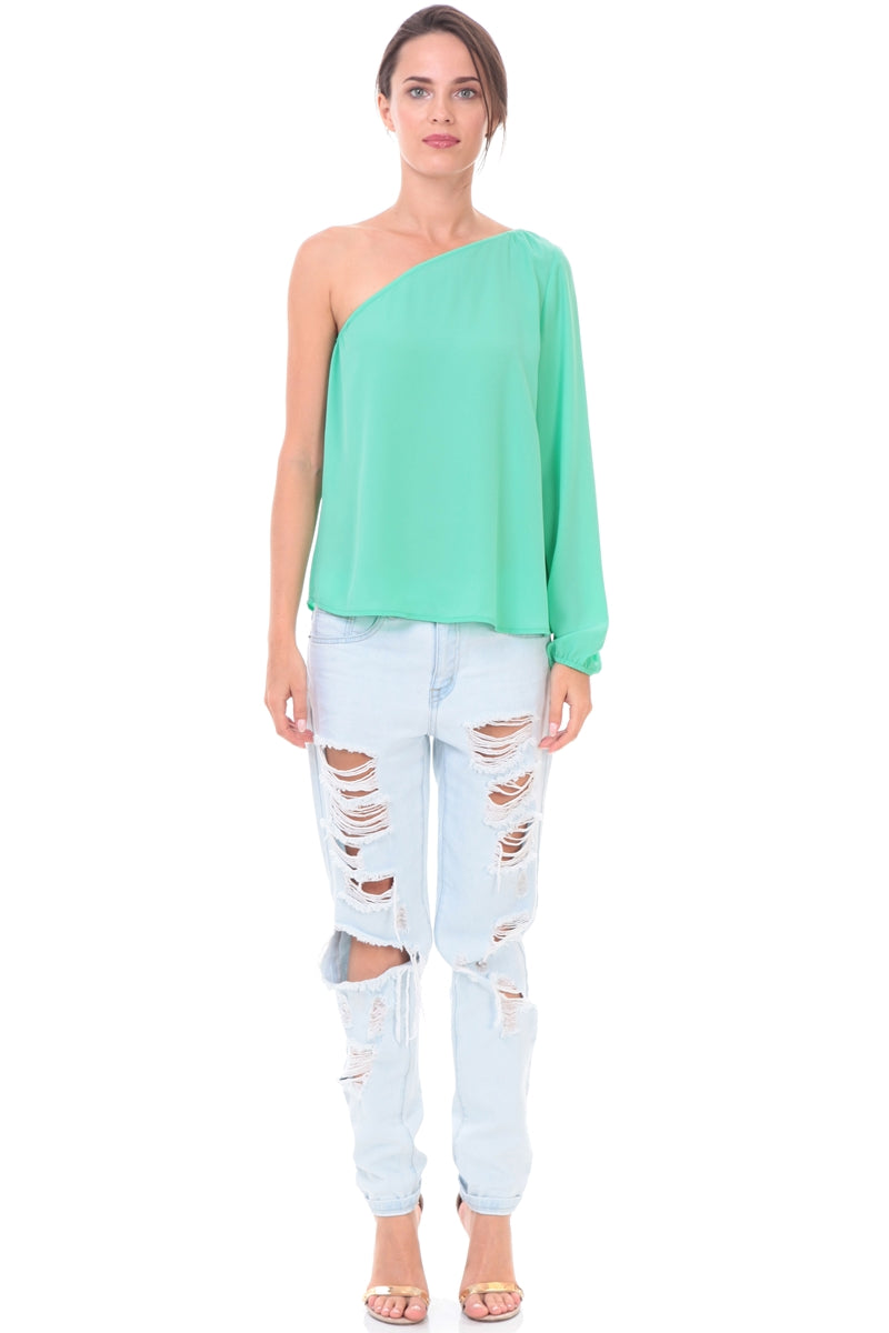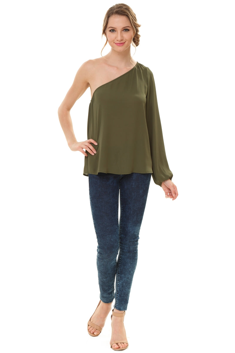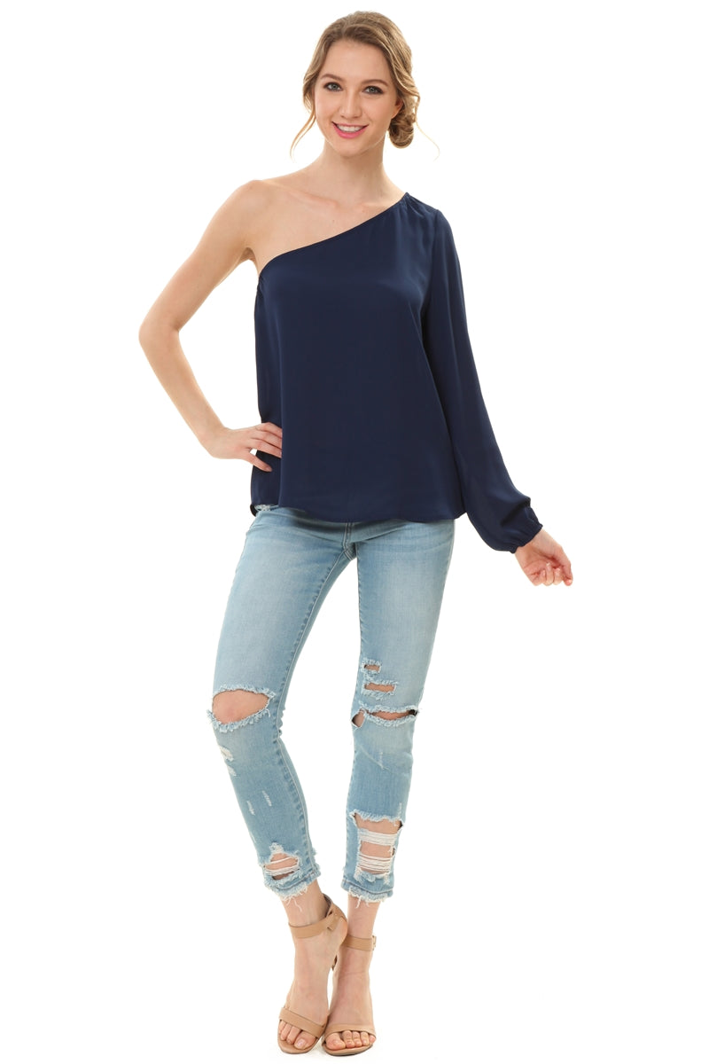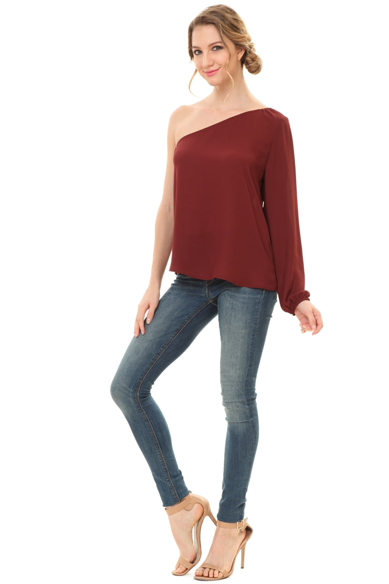 One Shoulder Long Sleeve Blouse
