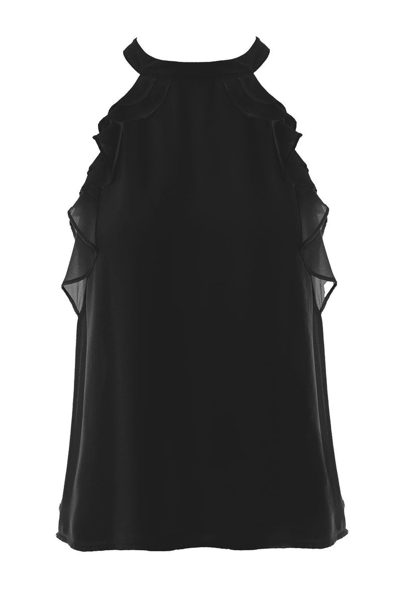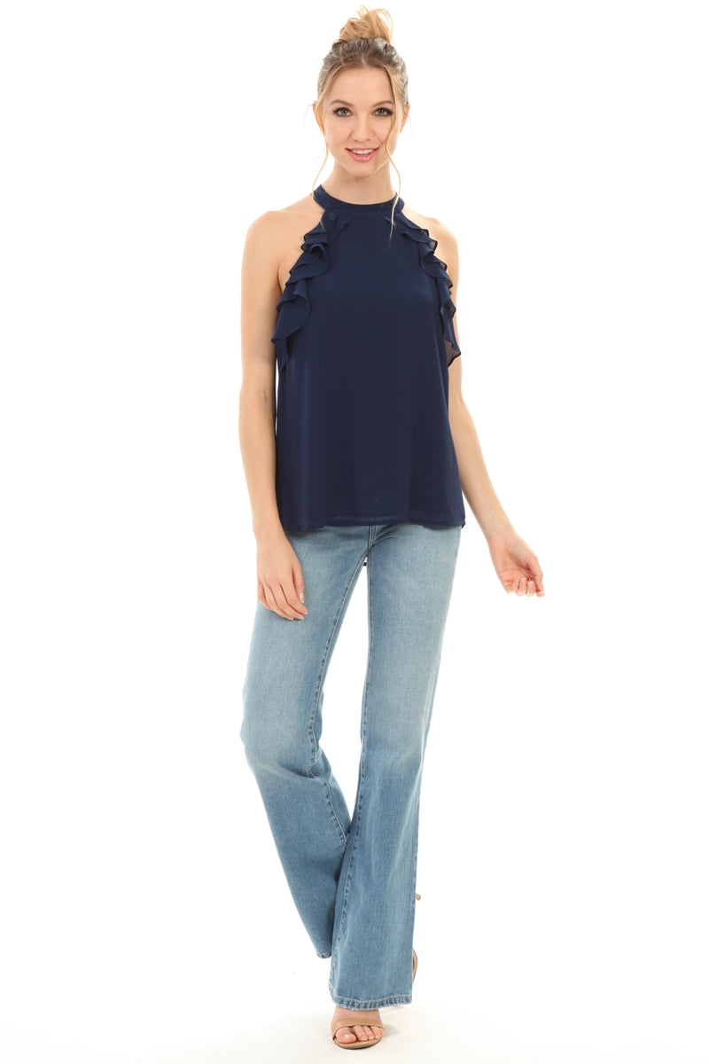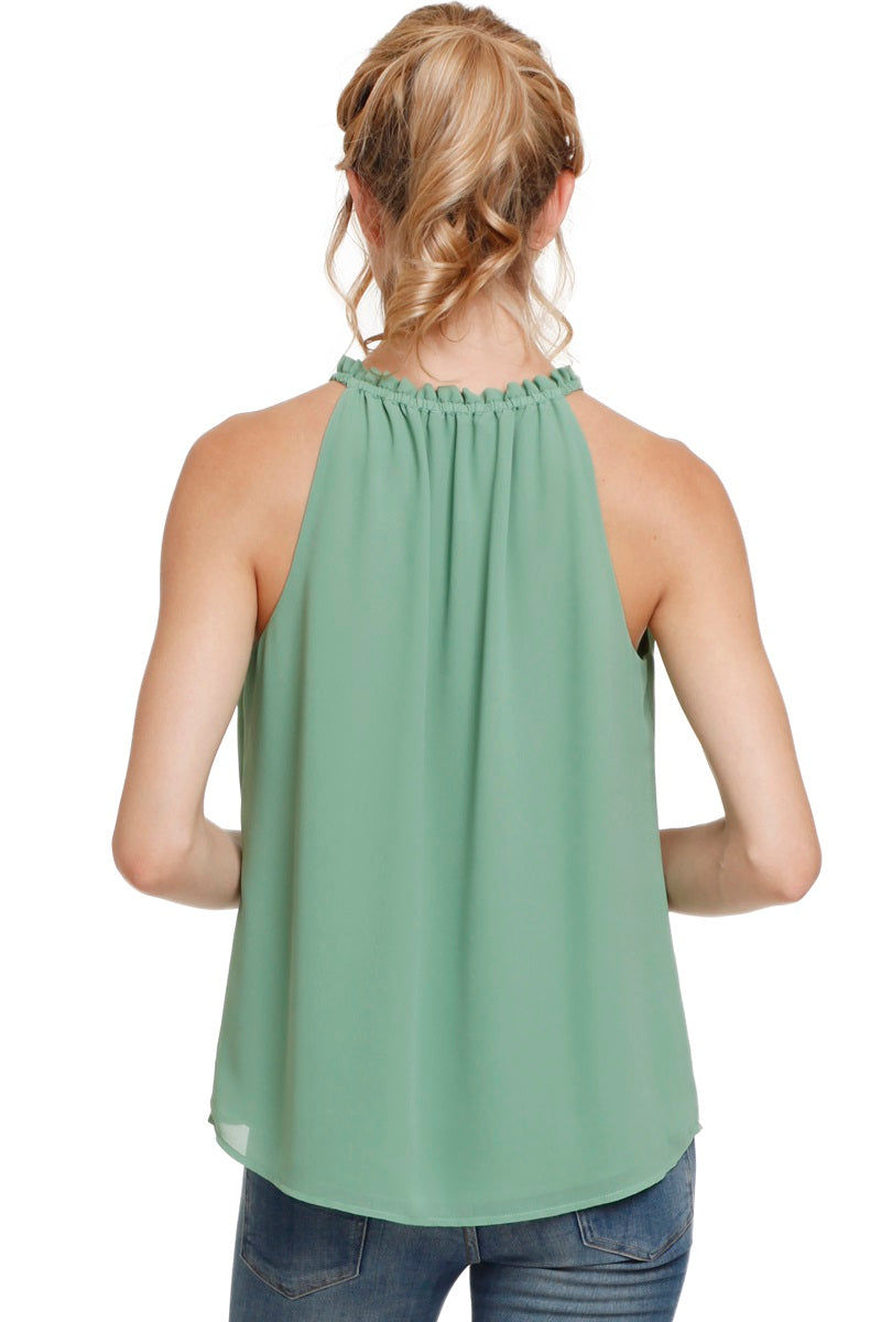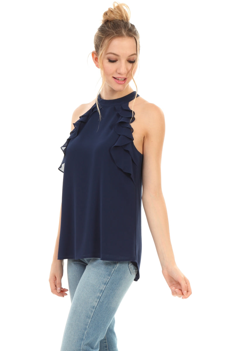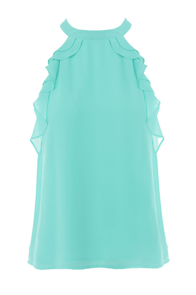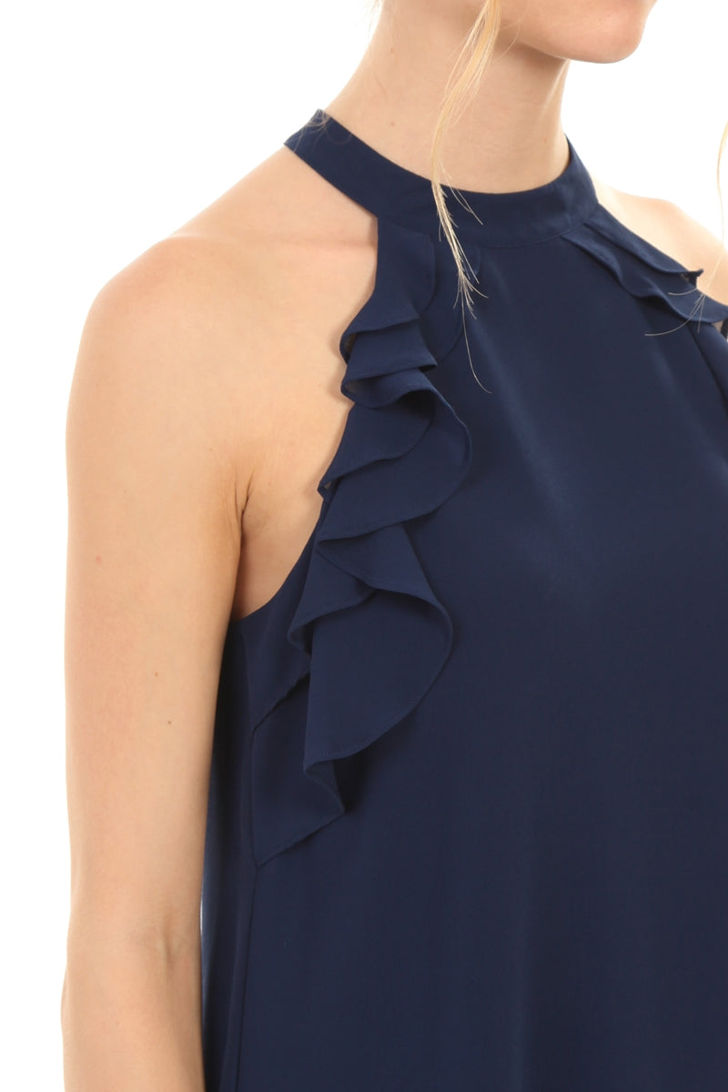 Sleeveless Top With Layered Ruffle Halter Neck