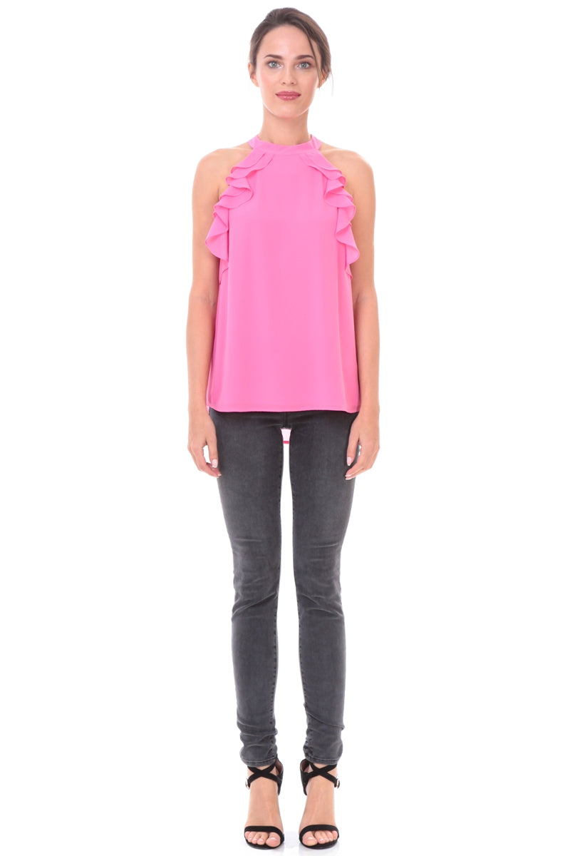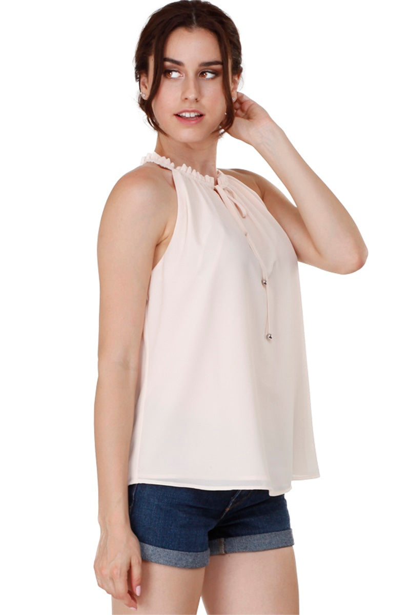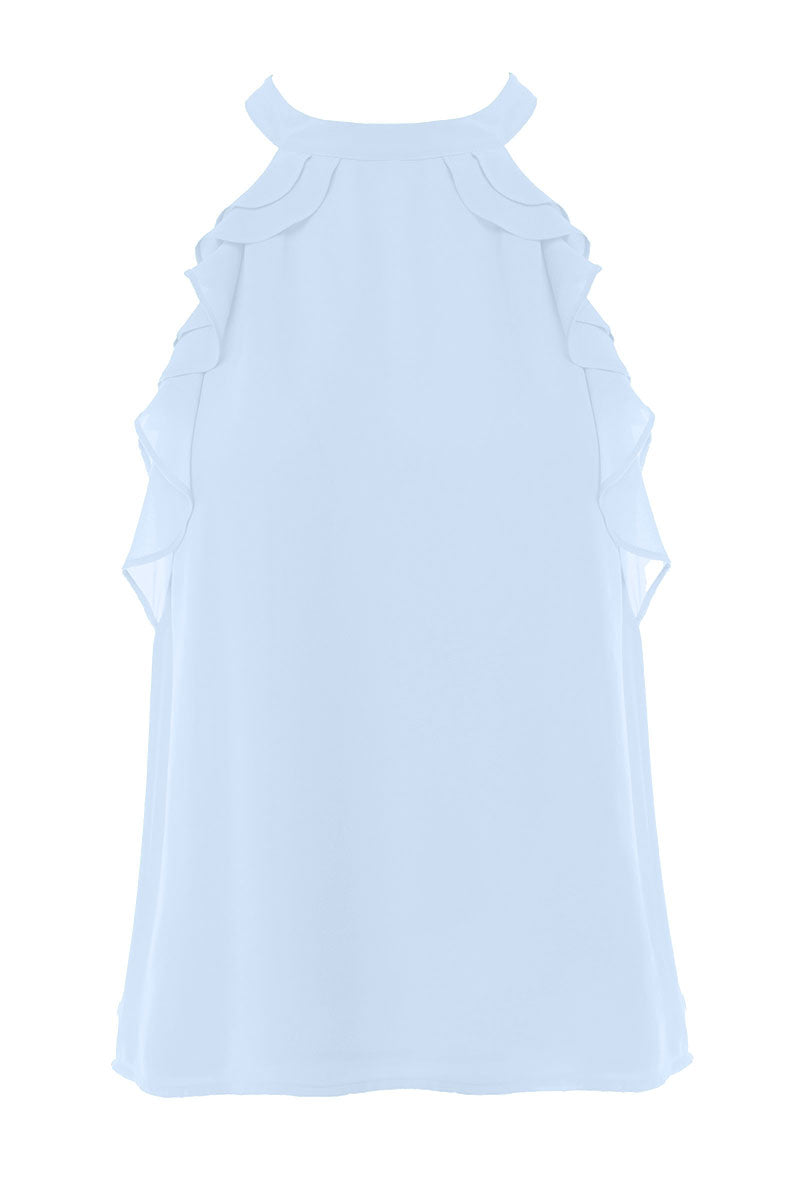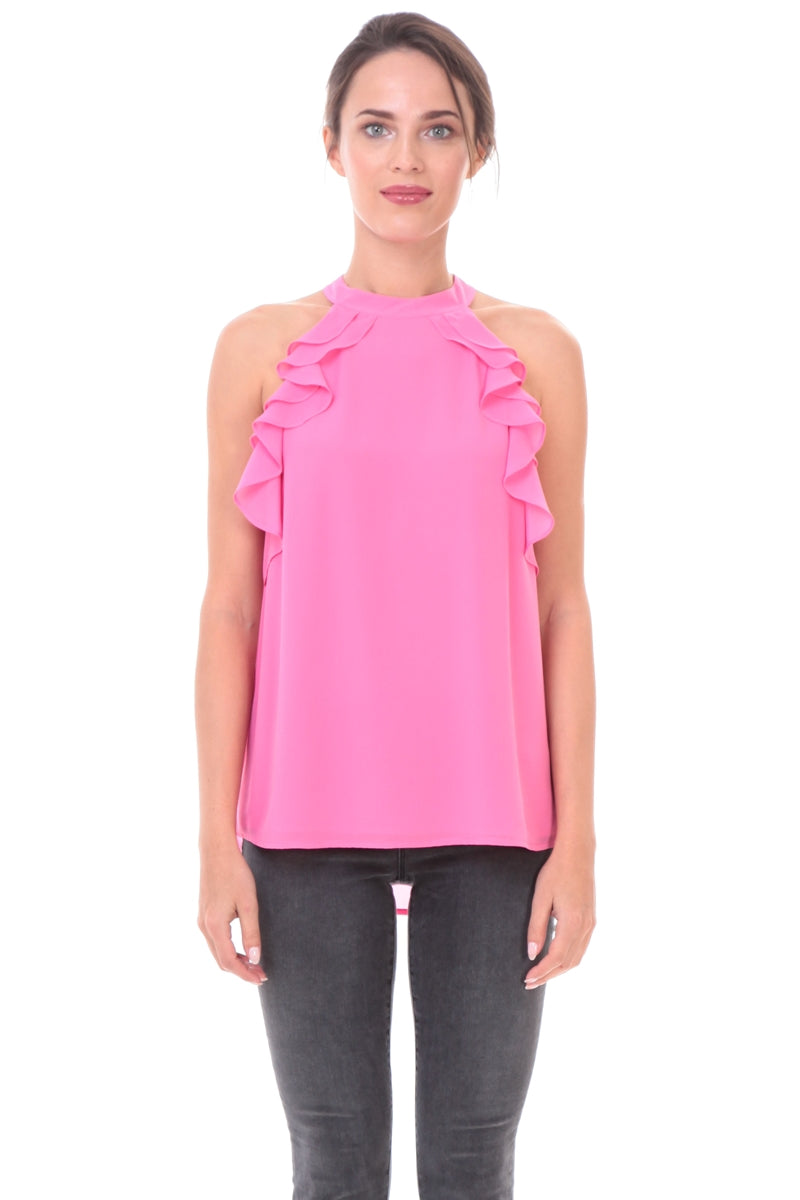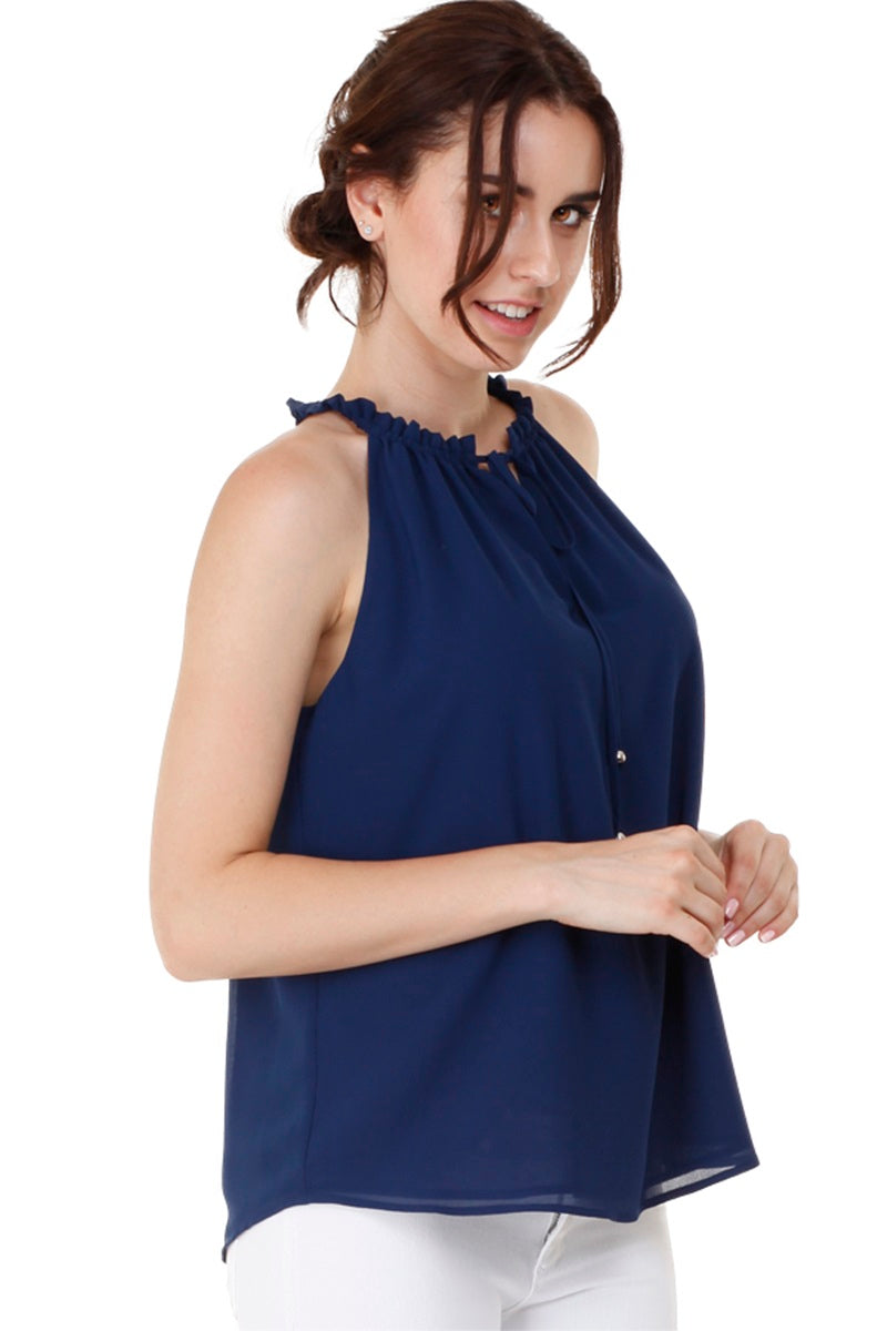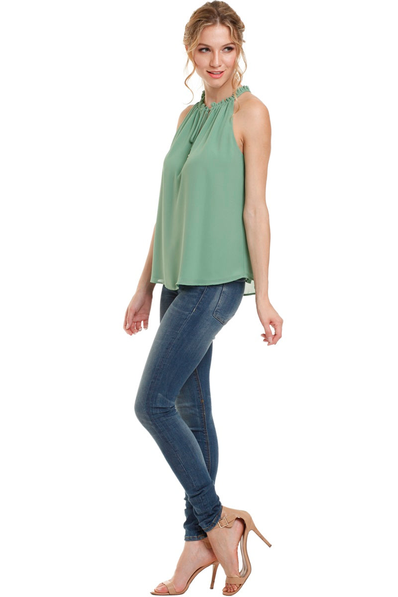Sleeveless Top With Layered Ruffle Halter Neck