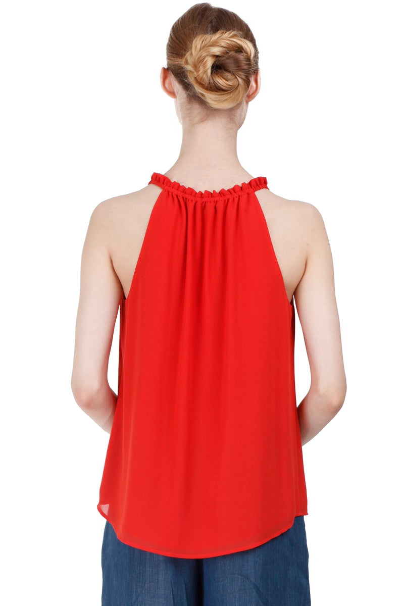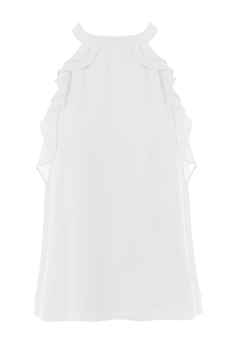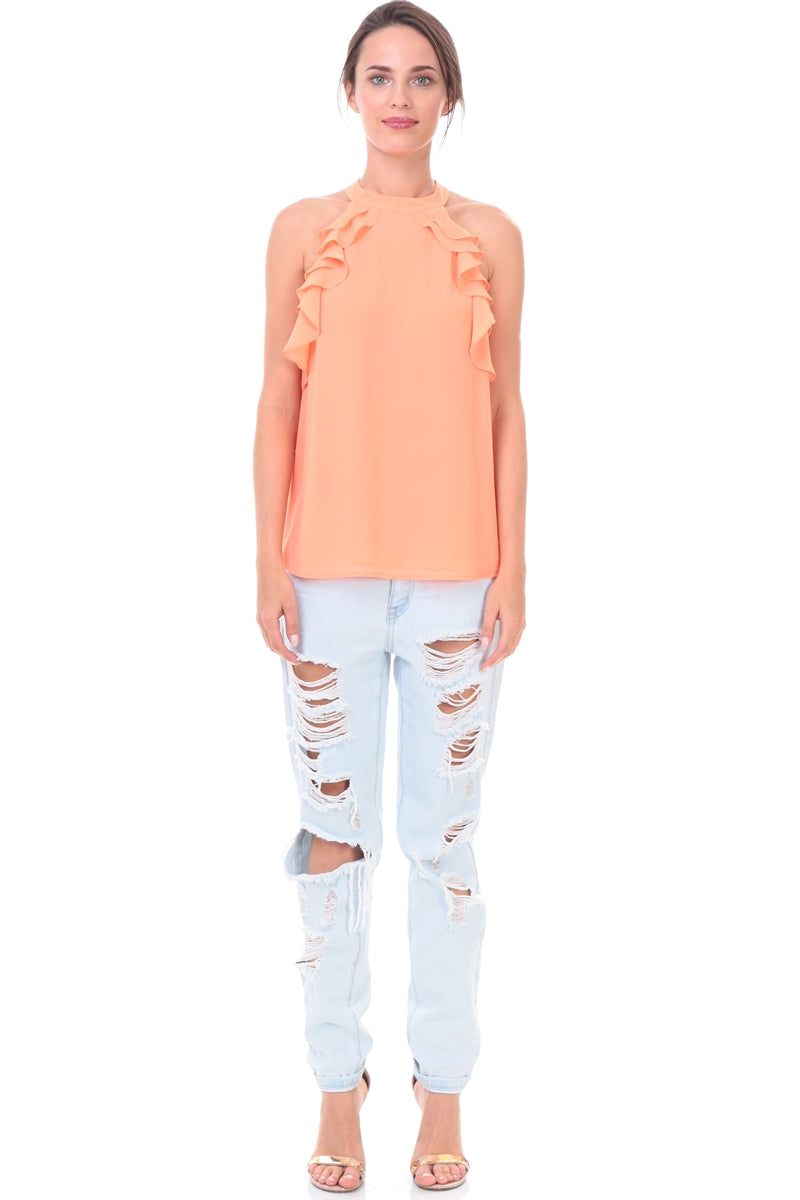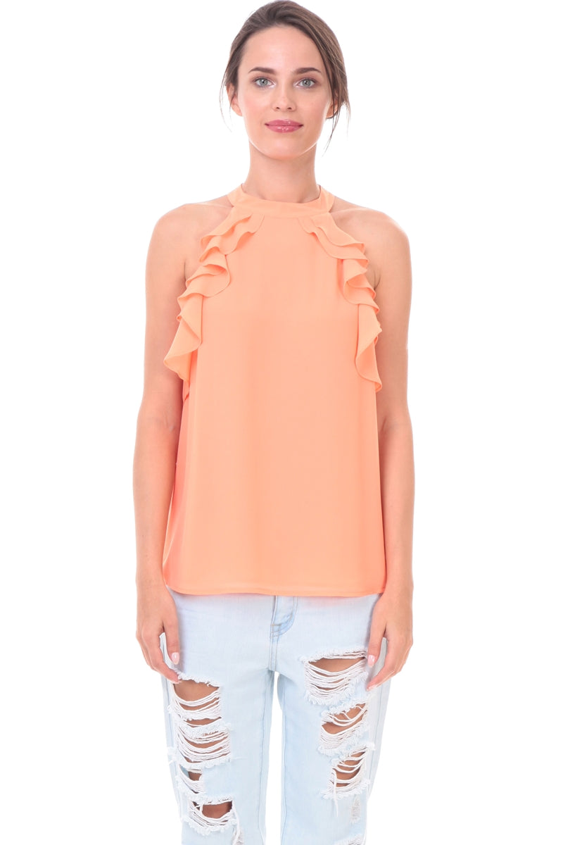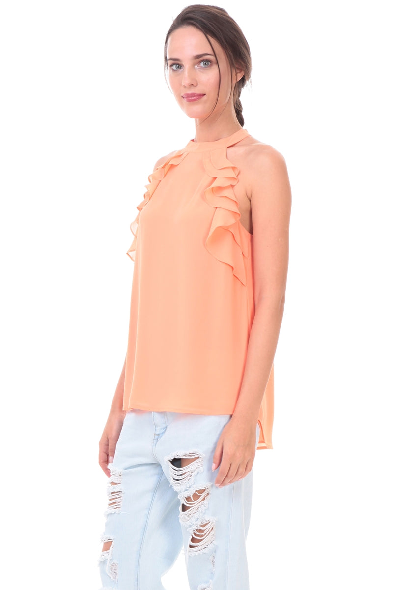 Sleeveless Top With Layered Ruffle Halter Neck