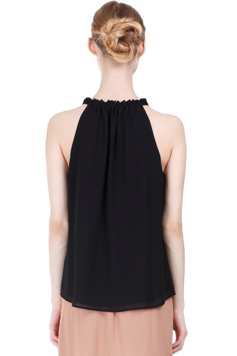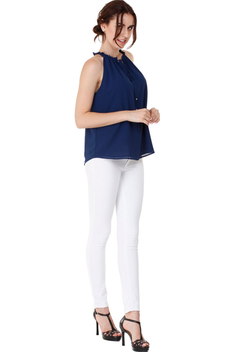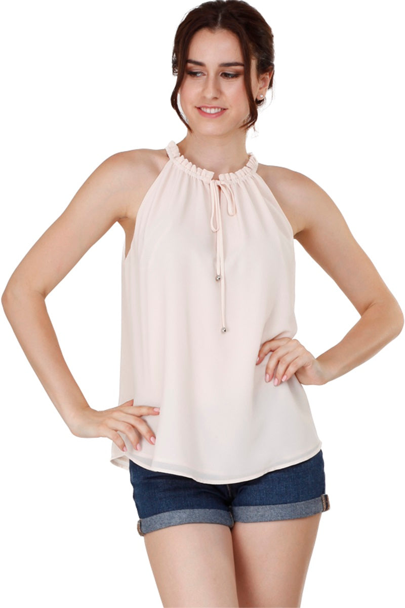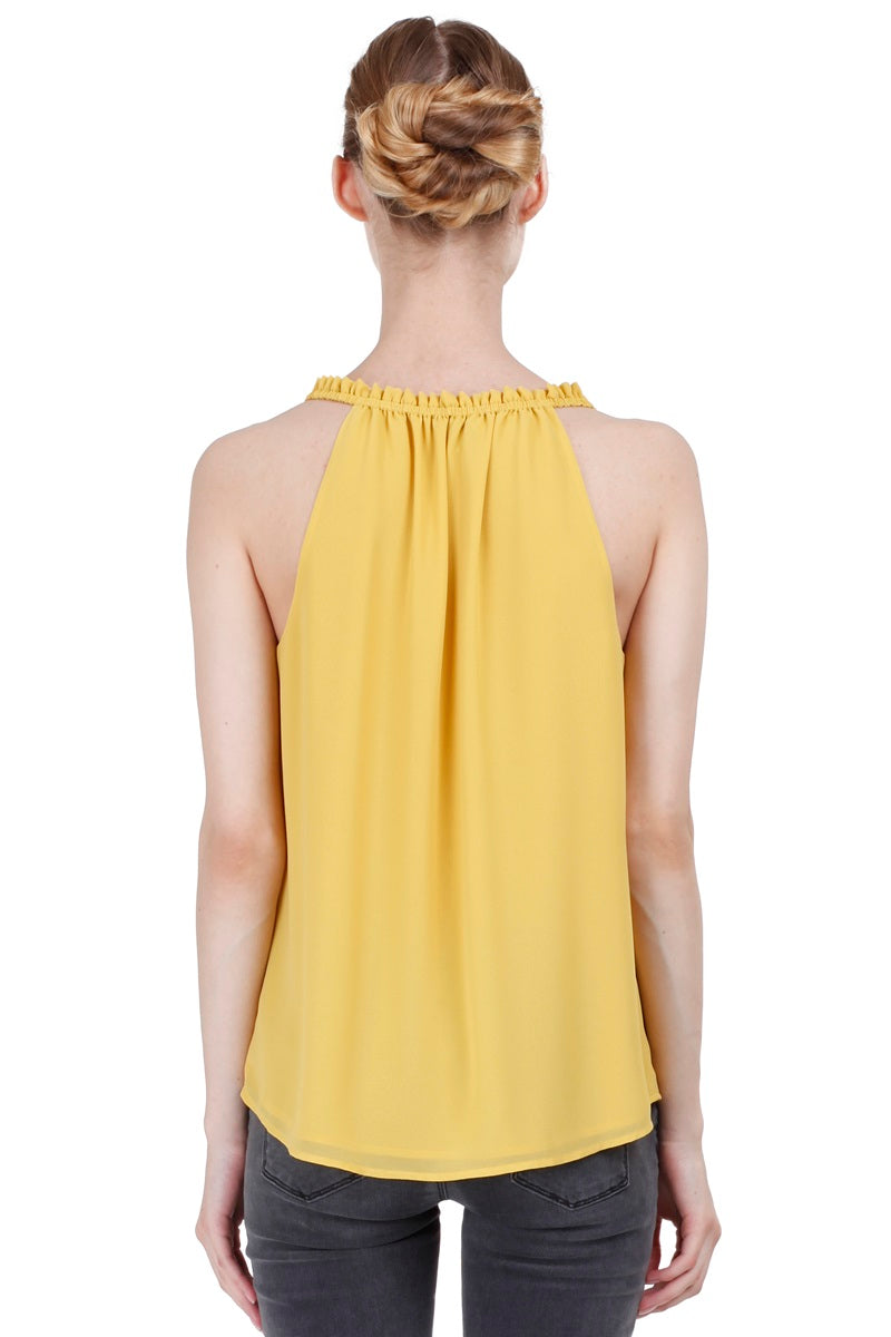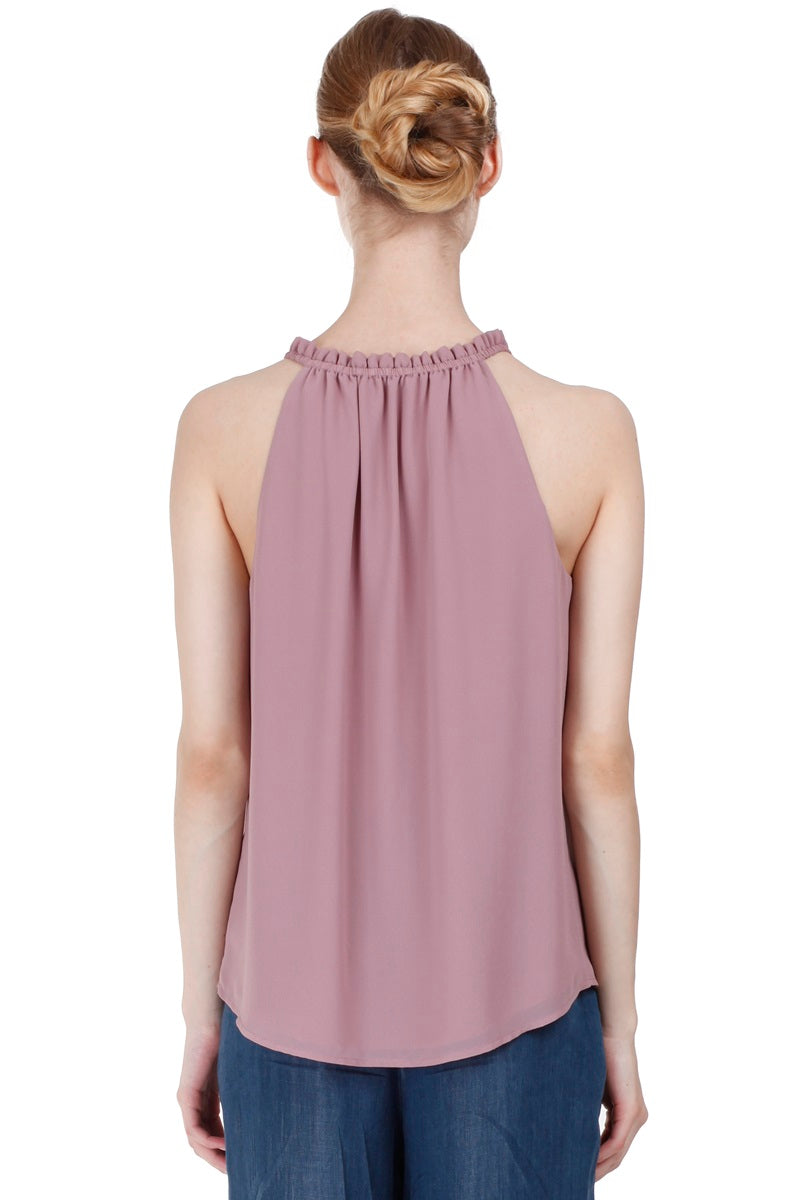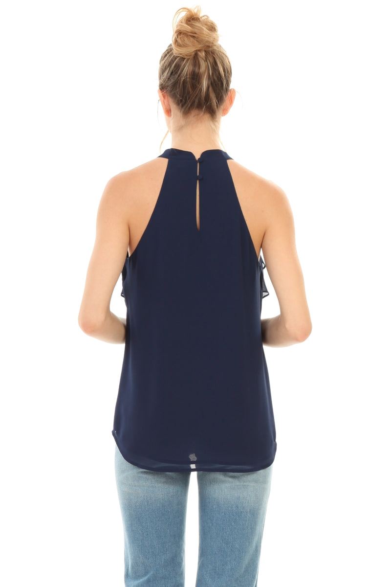 Sleeveless Top With Layered Ruffle Halter Neck