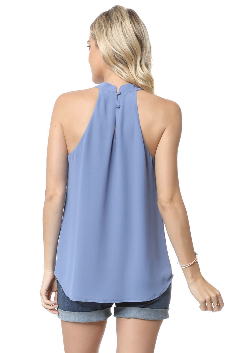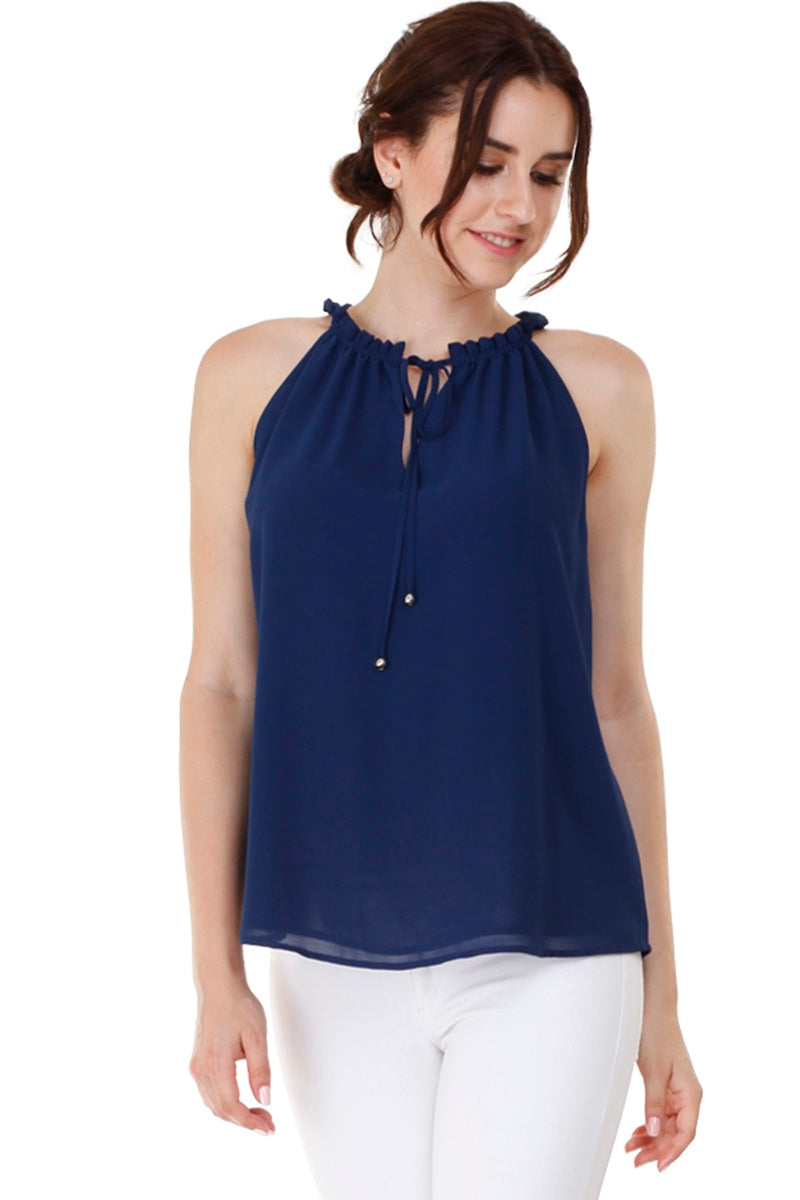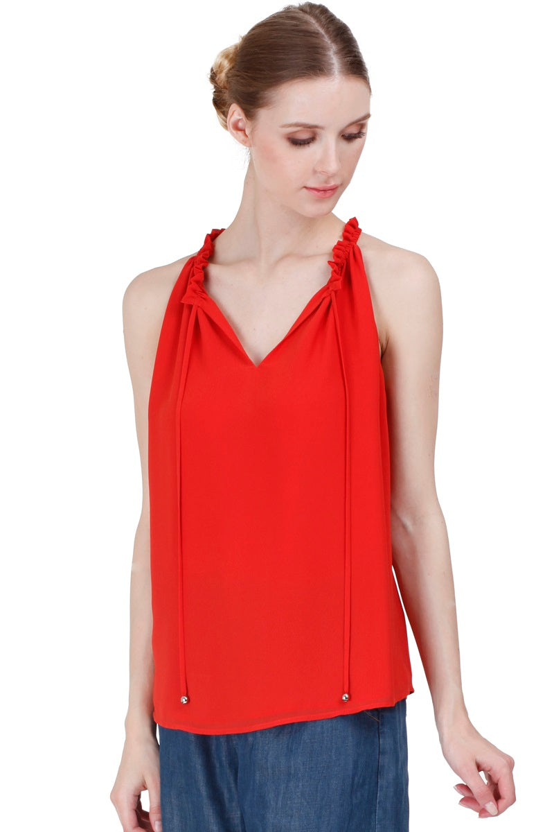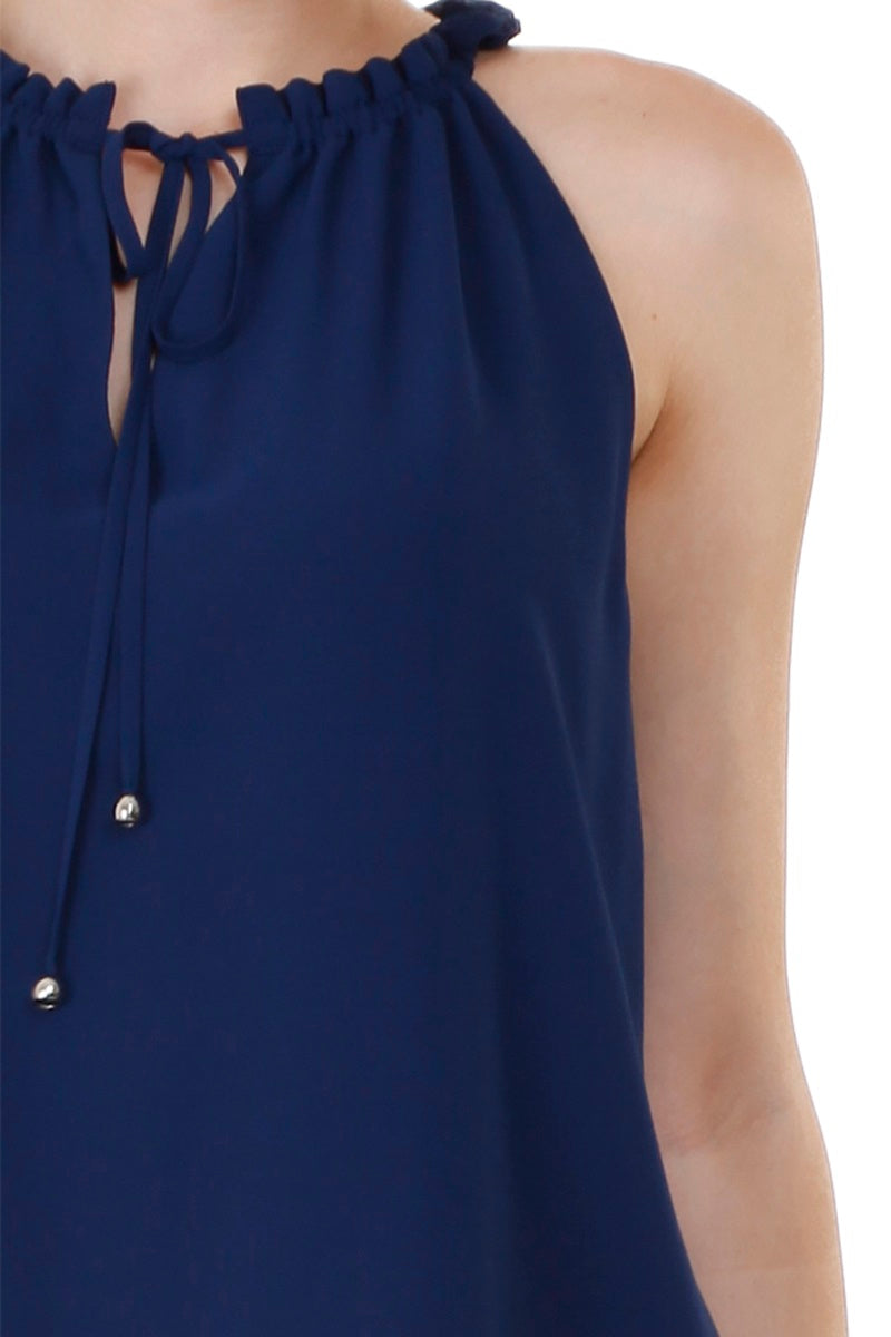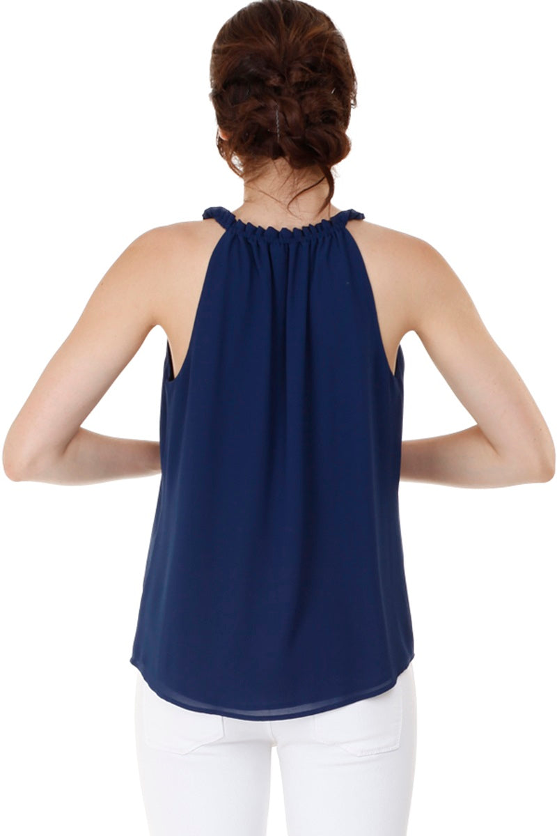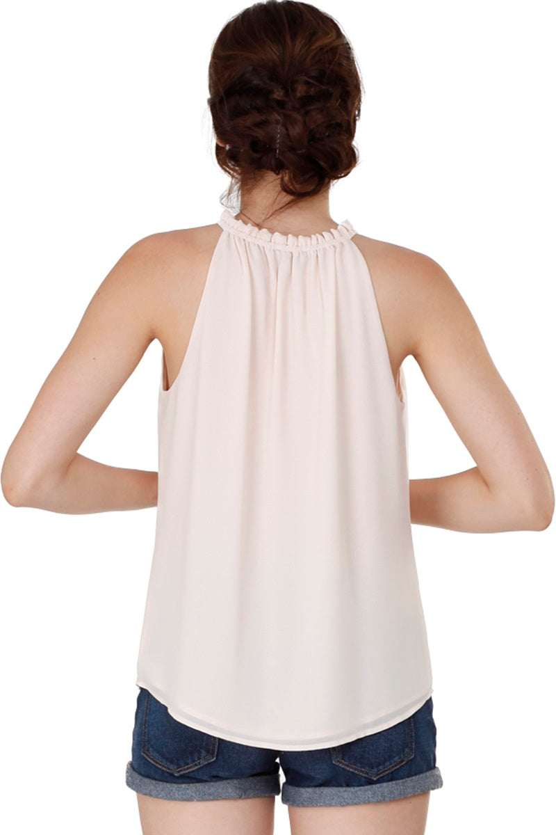 Sleeveless Top With Layered Ruffle Halter Neck