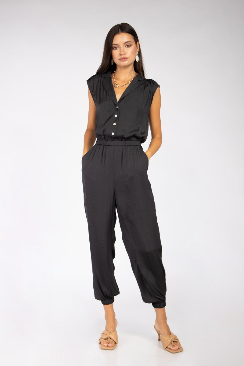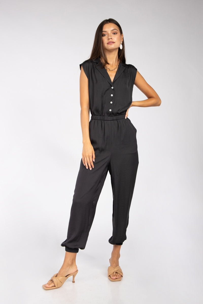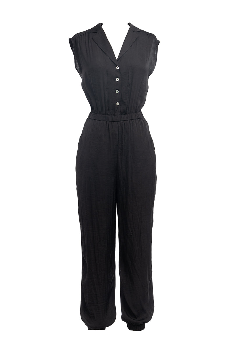 Drop Shoulder Collared Jumpsuit