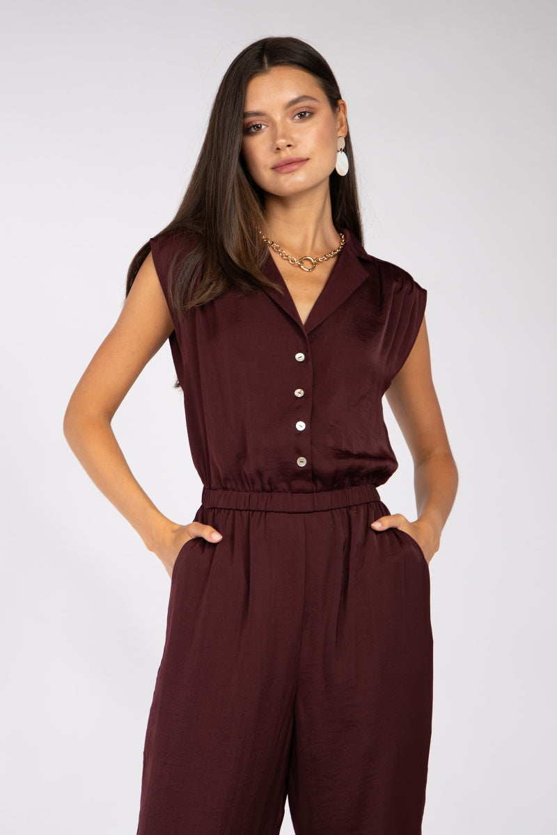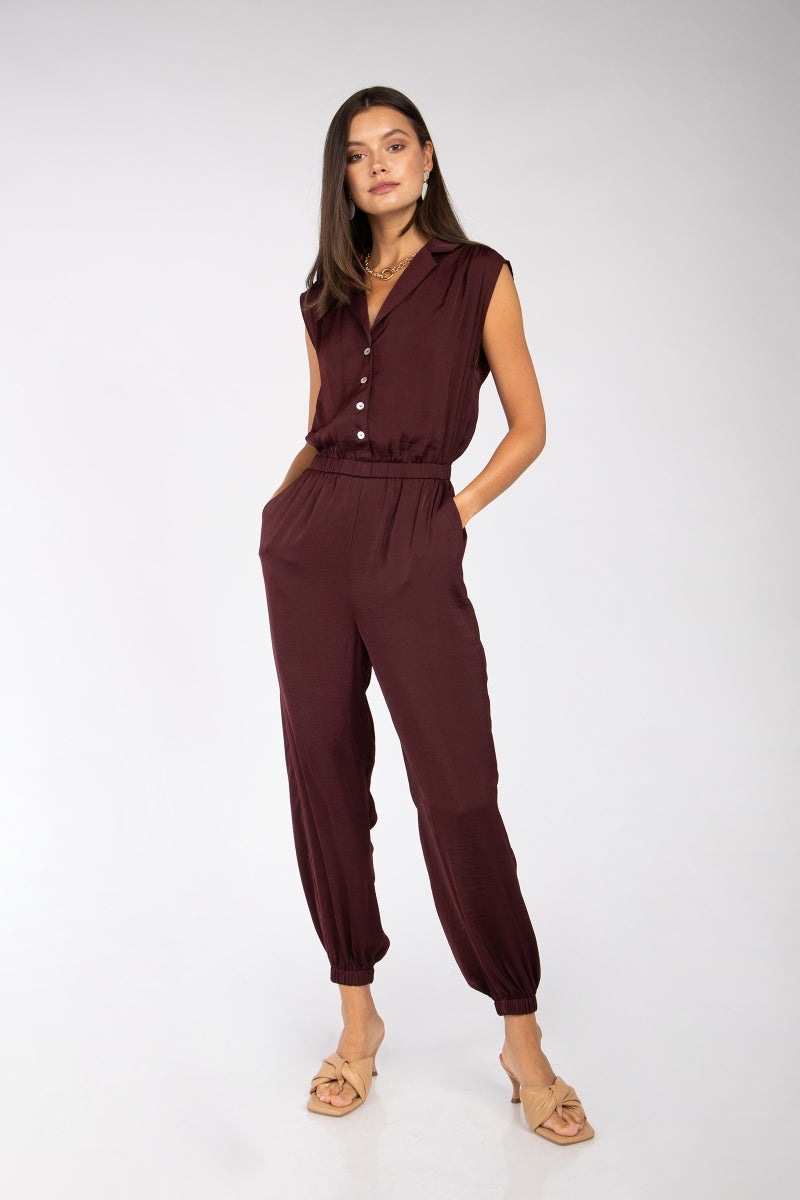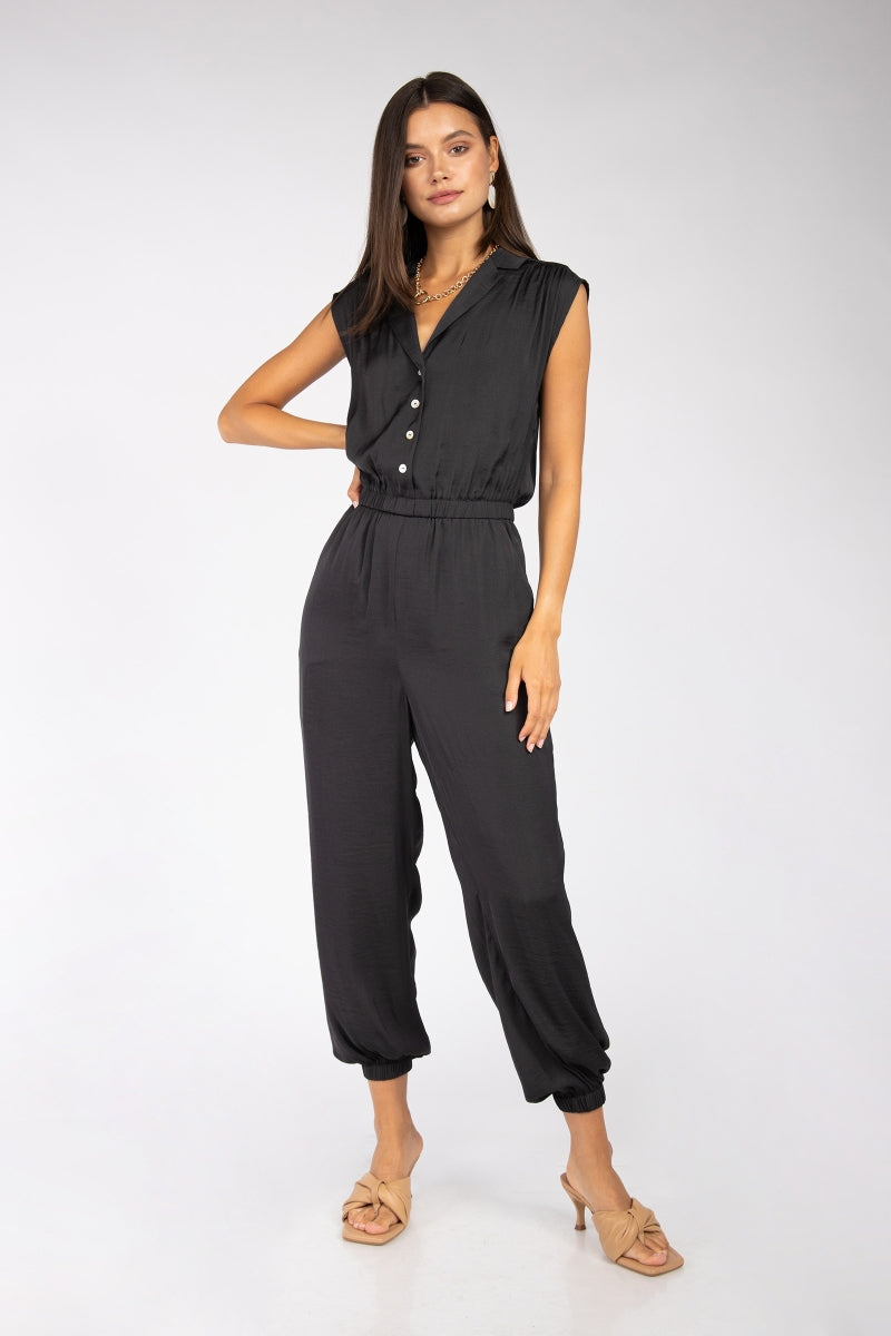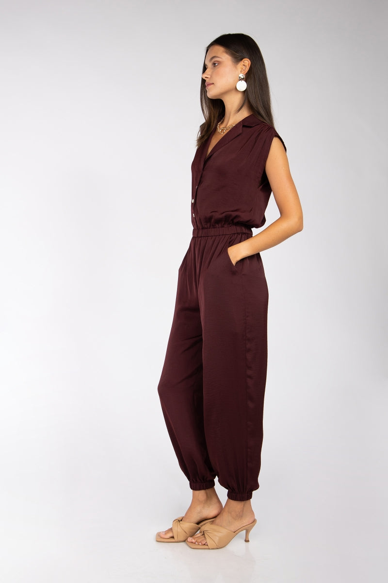 Drop Shoulder Collared Jumpsuit