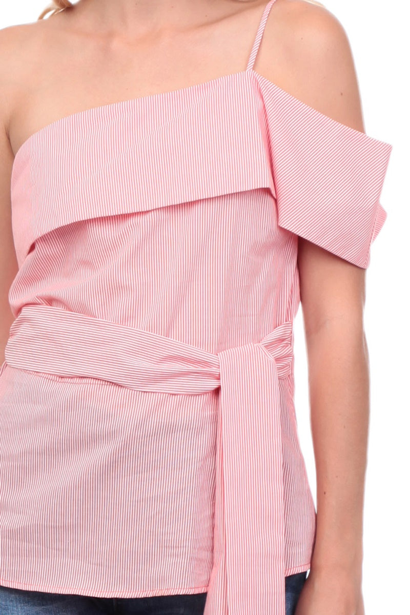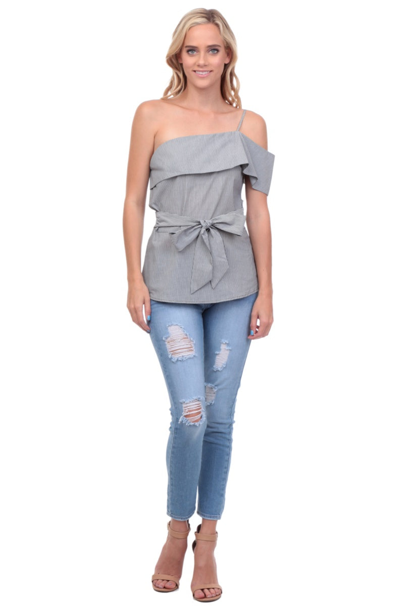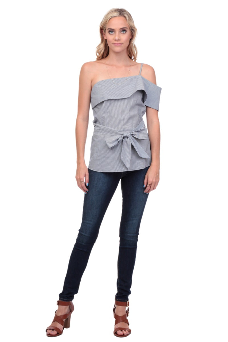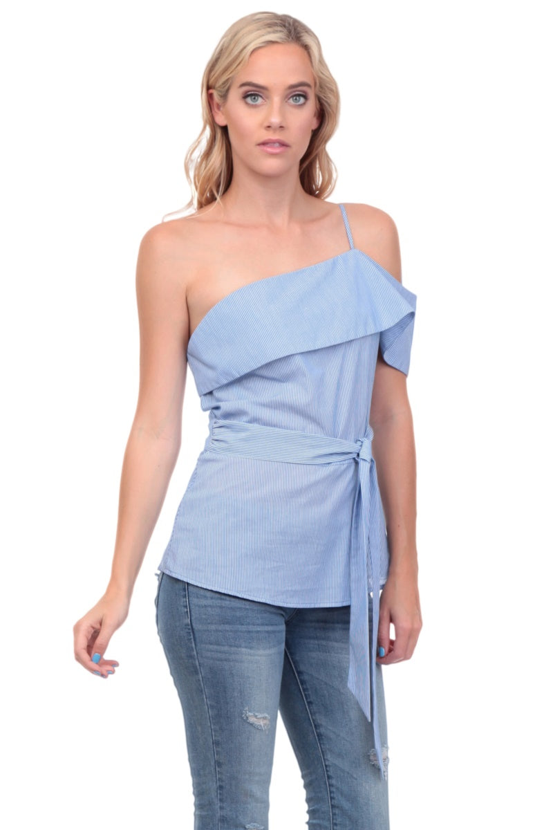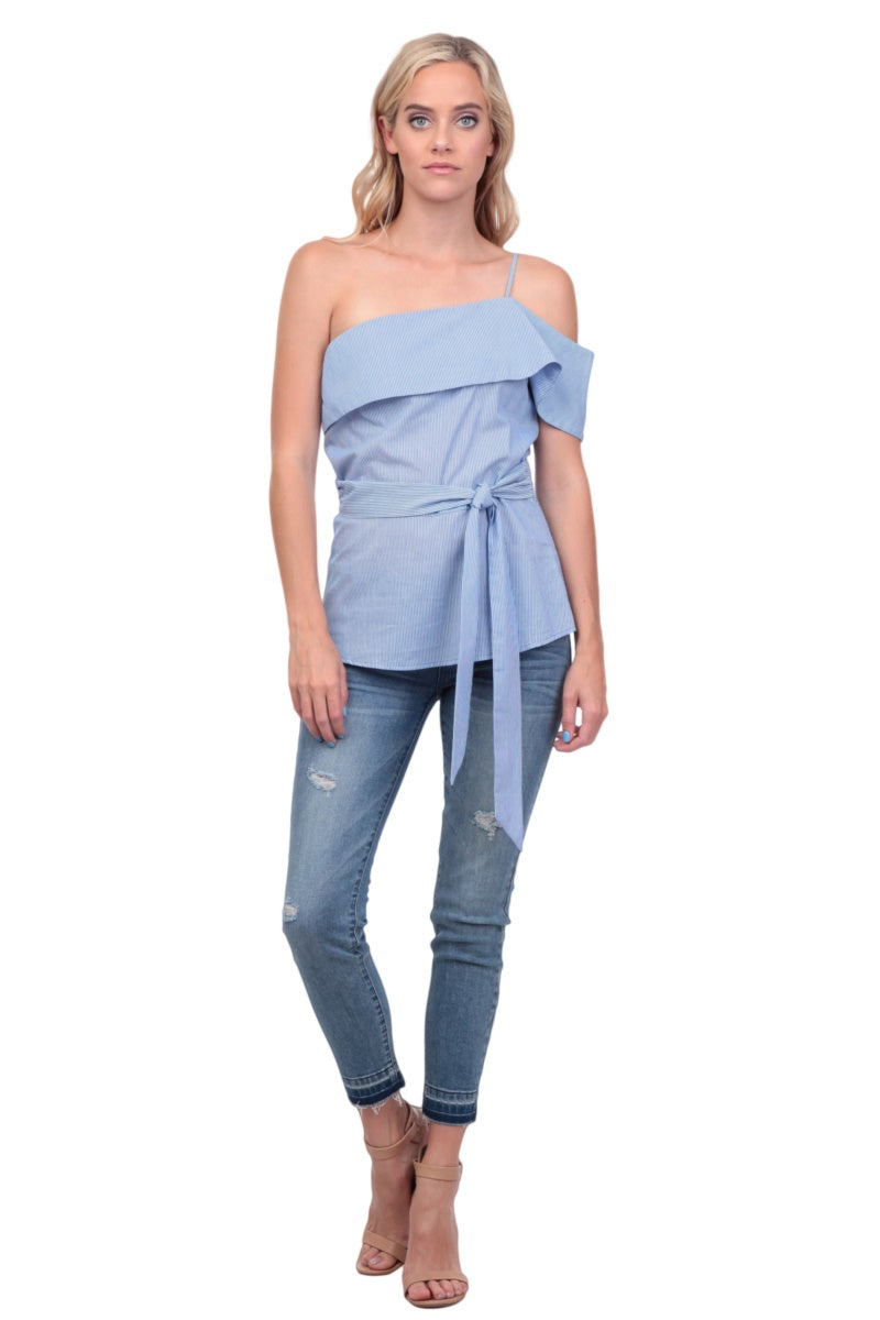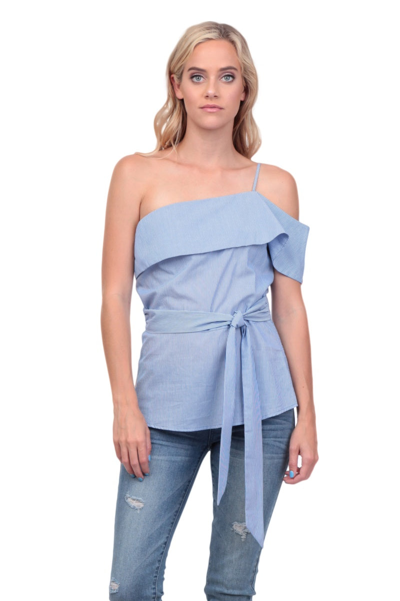 One Shoulder Waist Tie Blouse