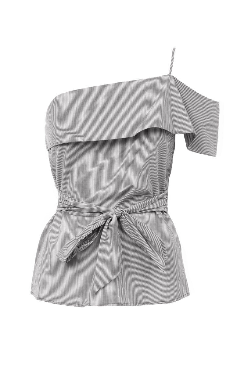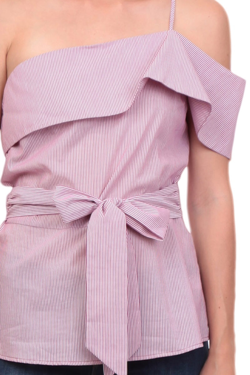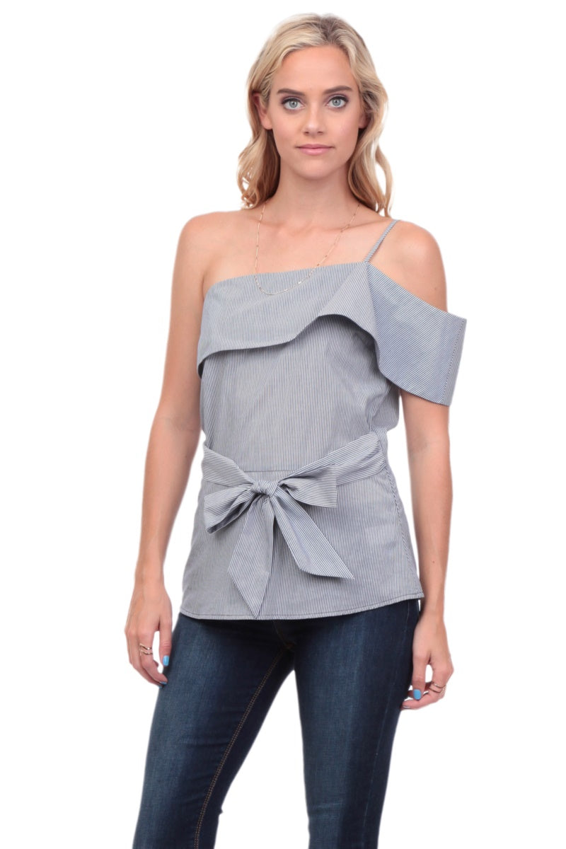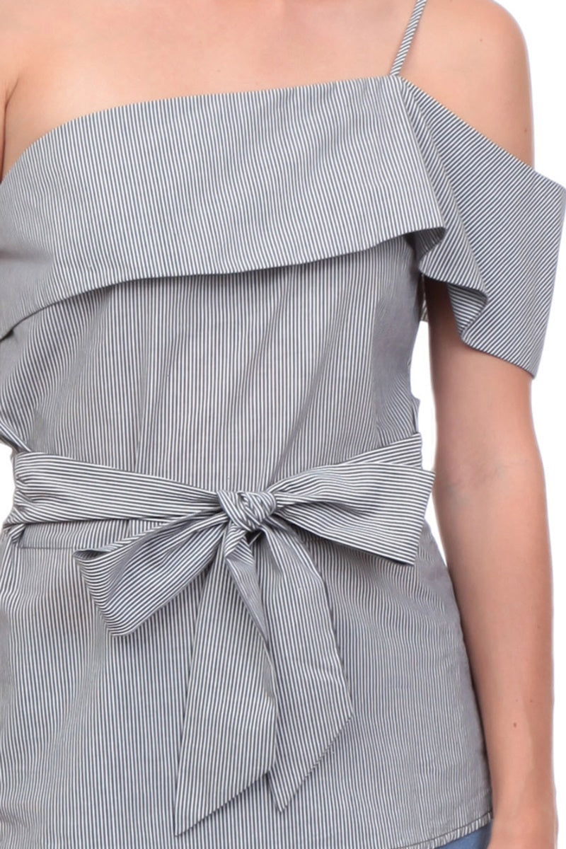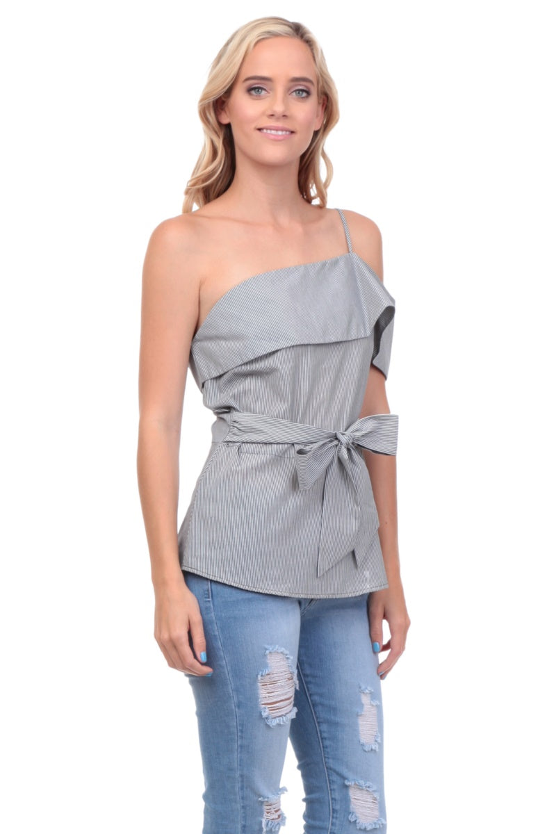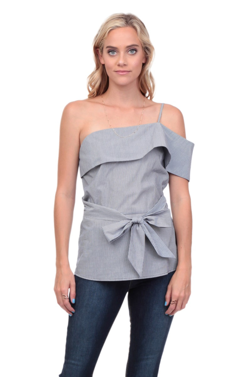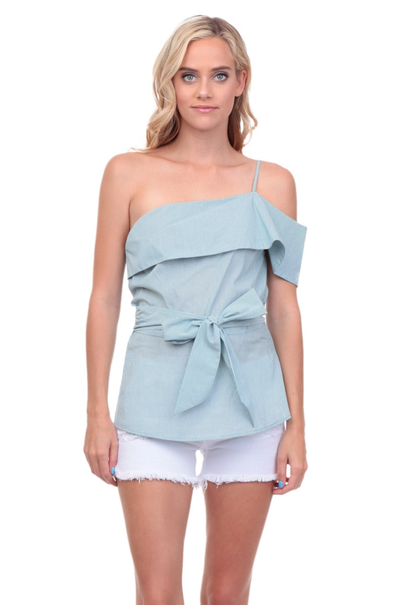 One Shoulder Waist Tie Blouse