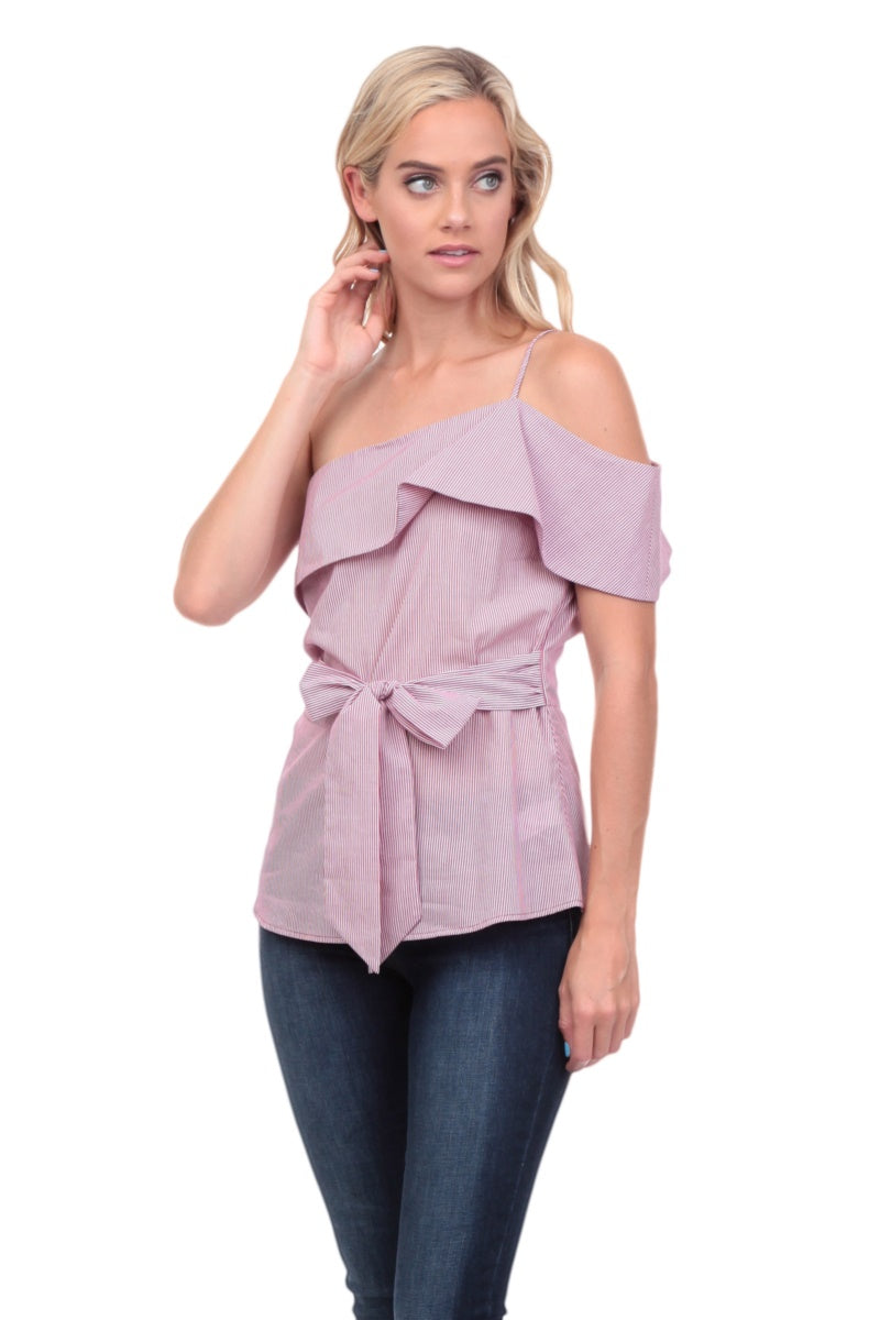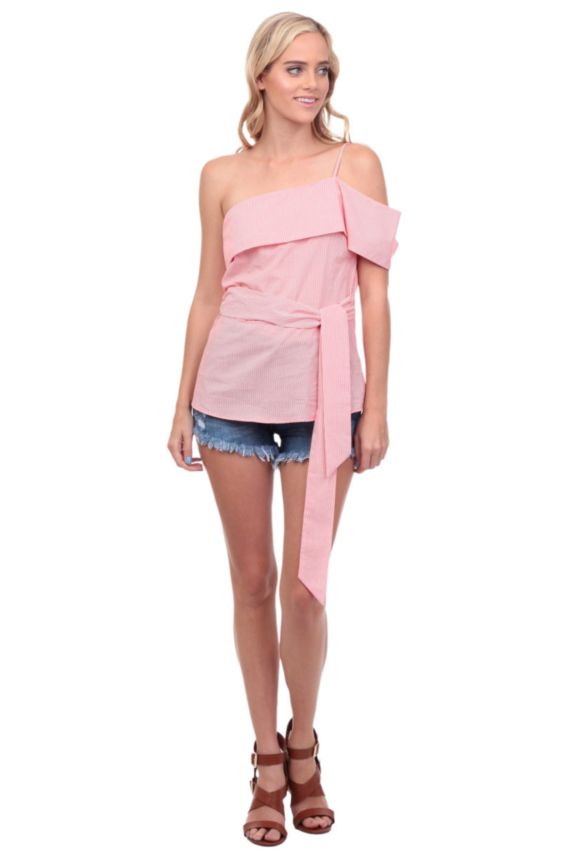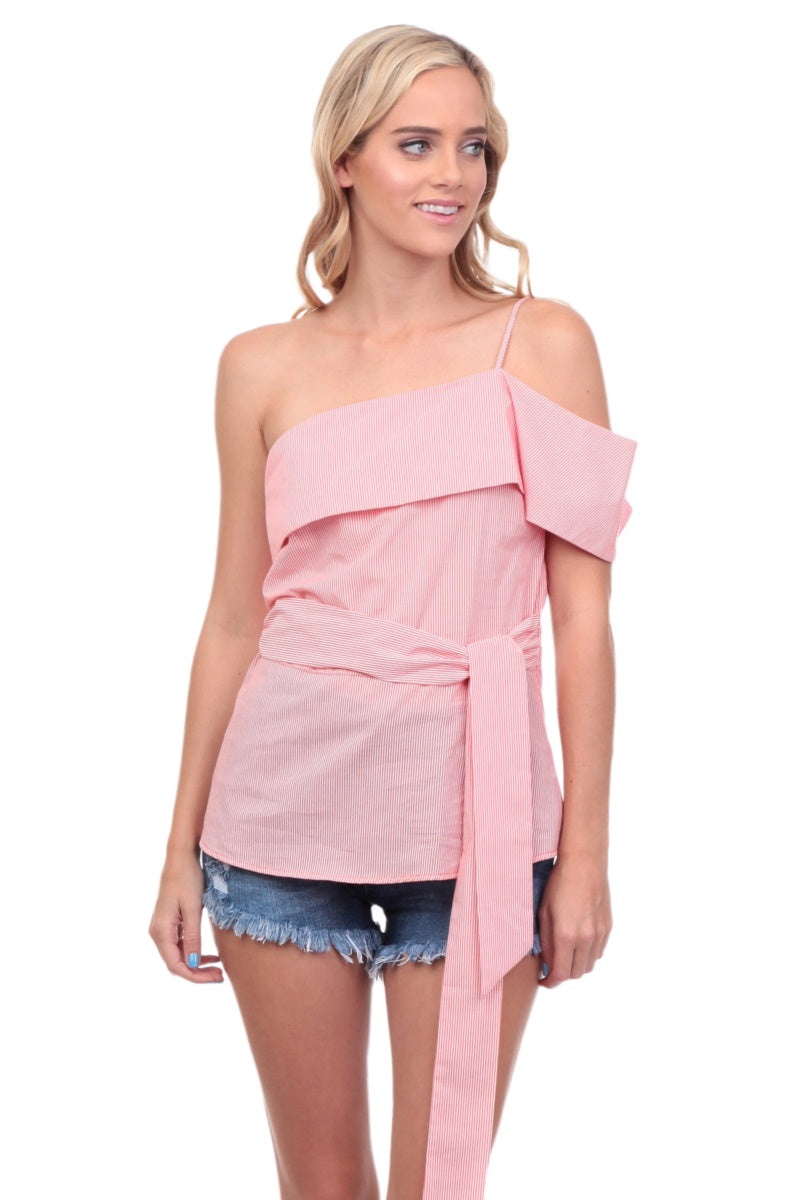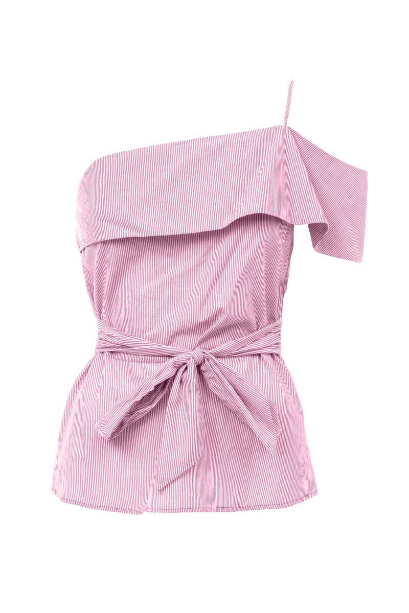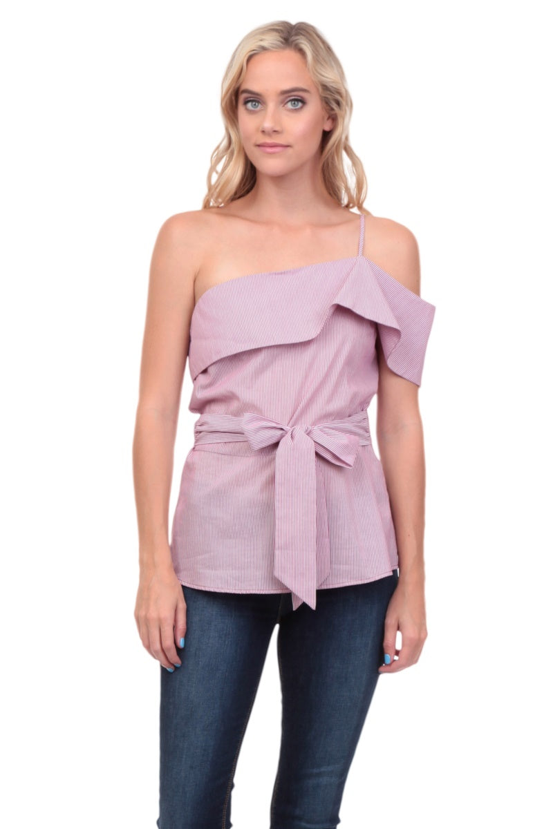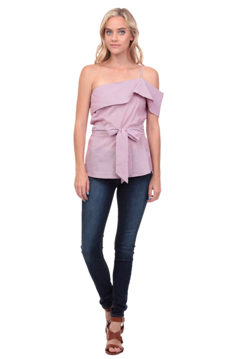One Shoulder Waist Tie Blouse