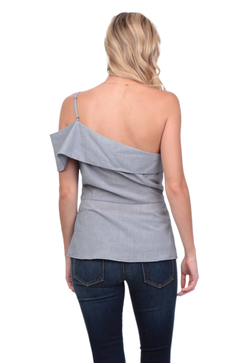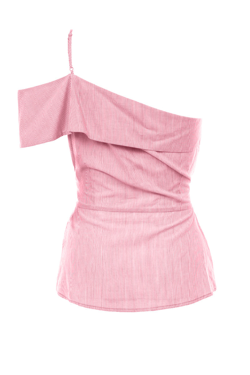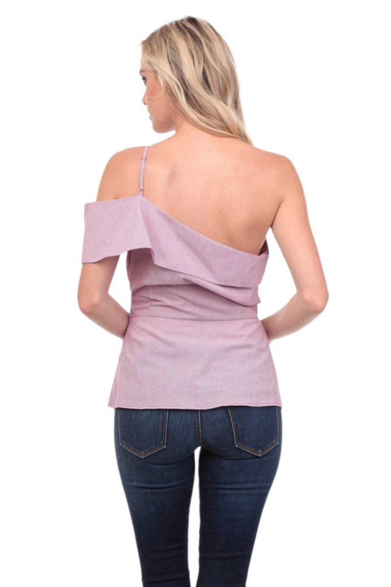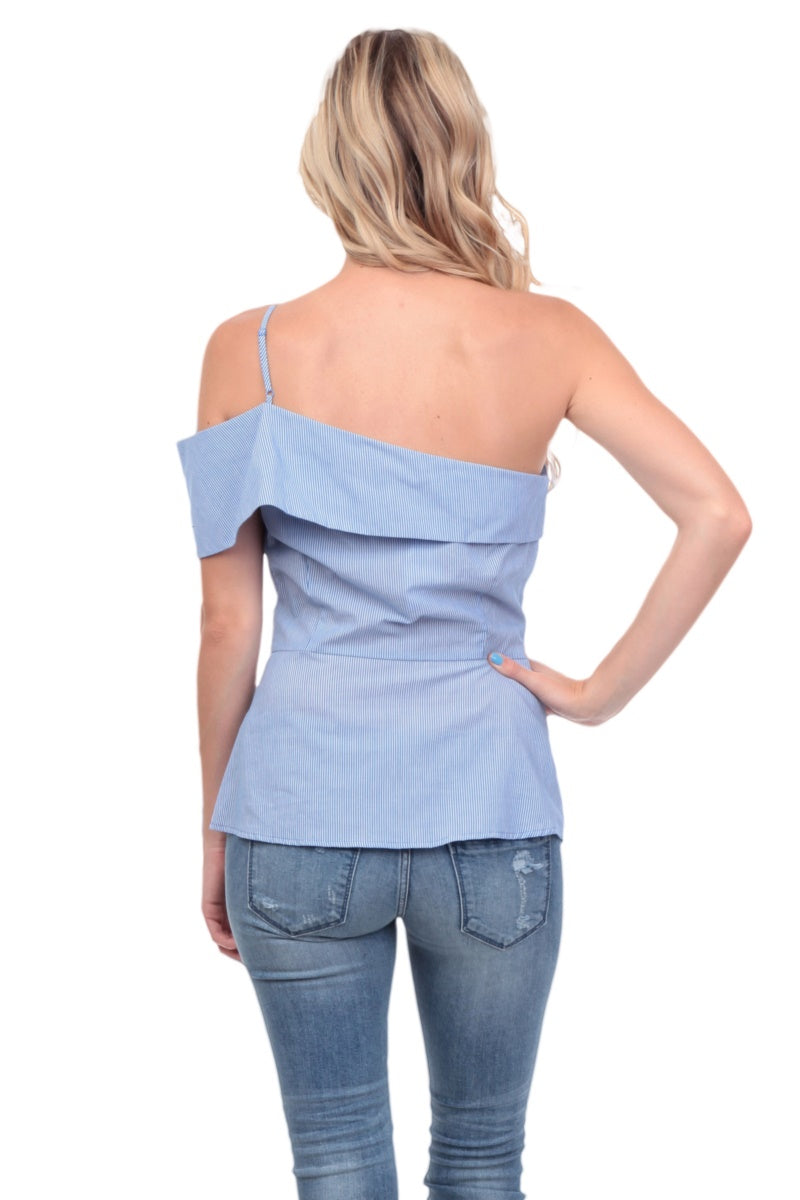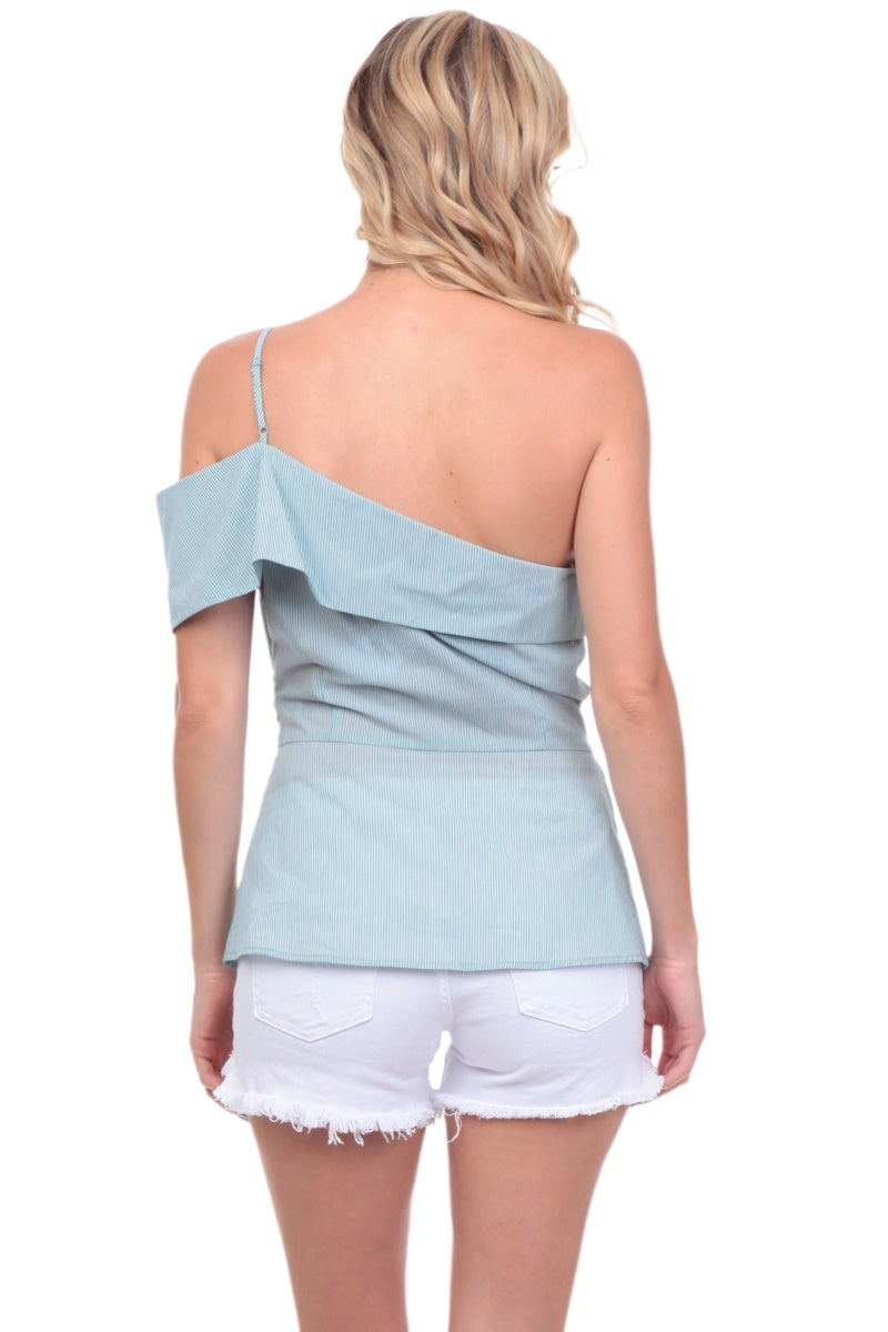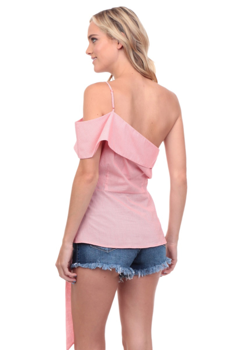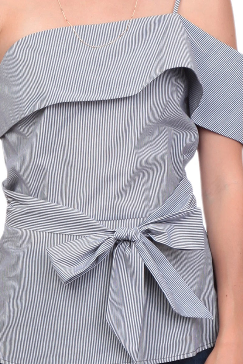 One Shoulder Waist Tie Blouse