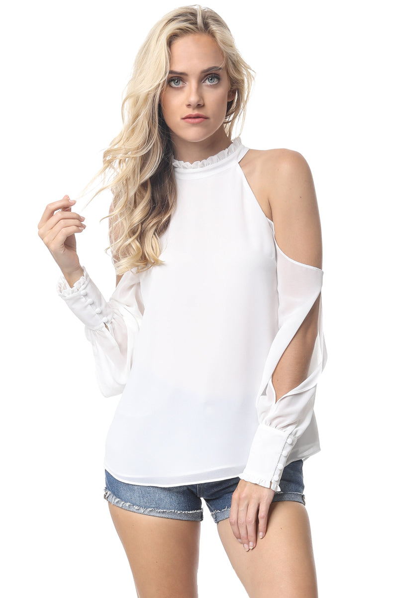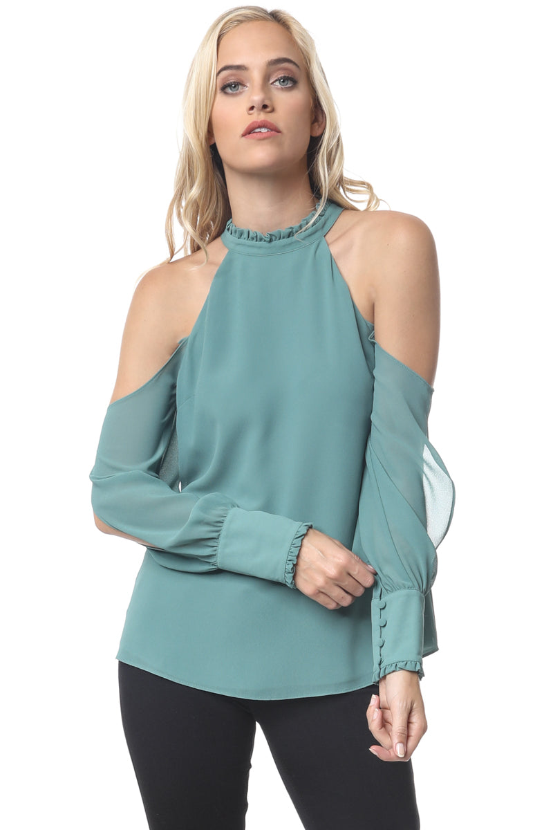 Cold Shoulder Long Sleeve Blouse