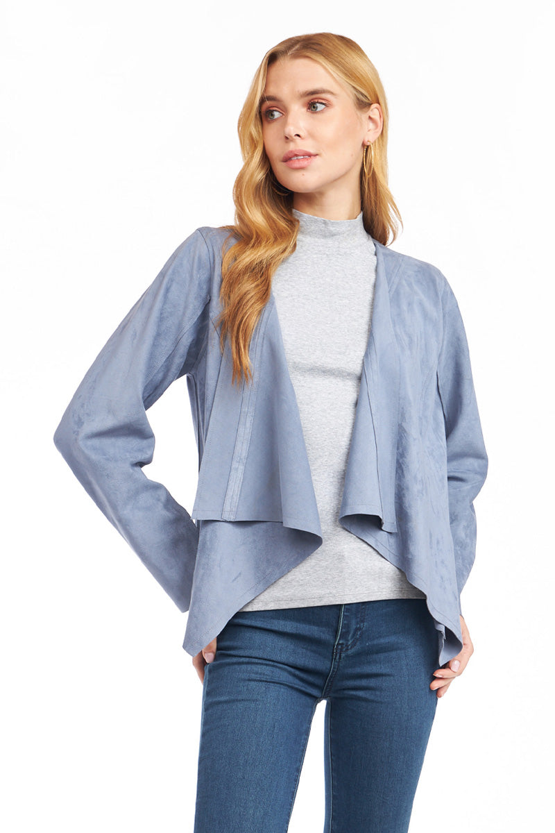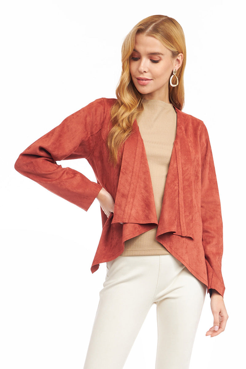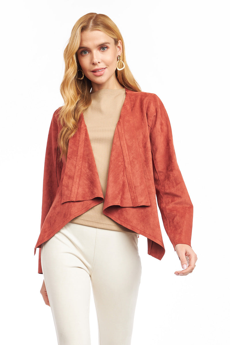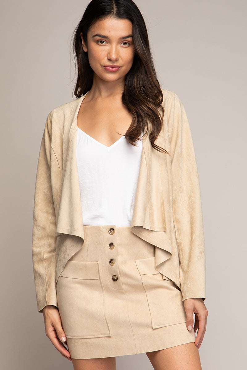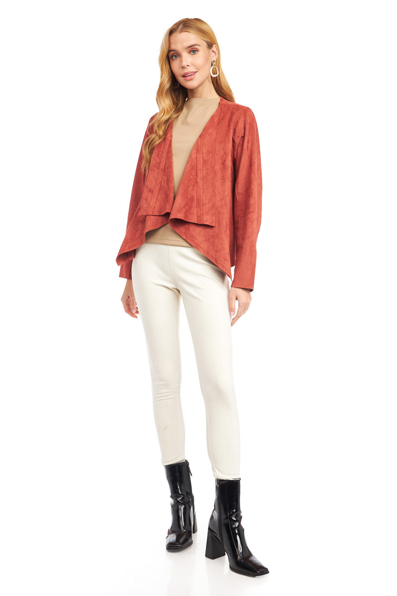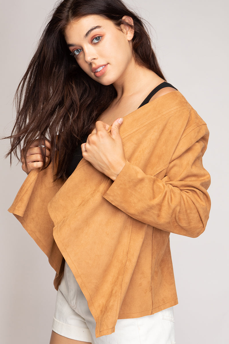 Cascading Drape Front Vegan Suede Crop Jacket