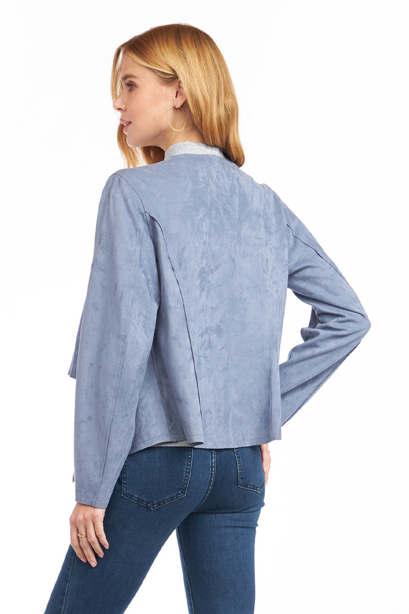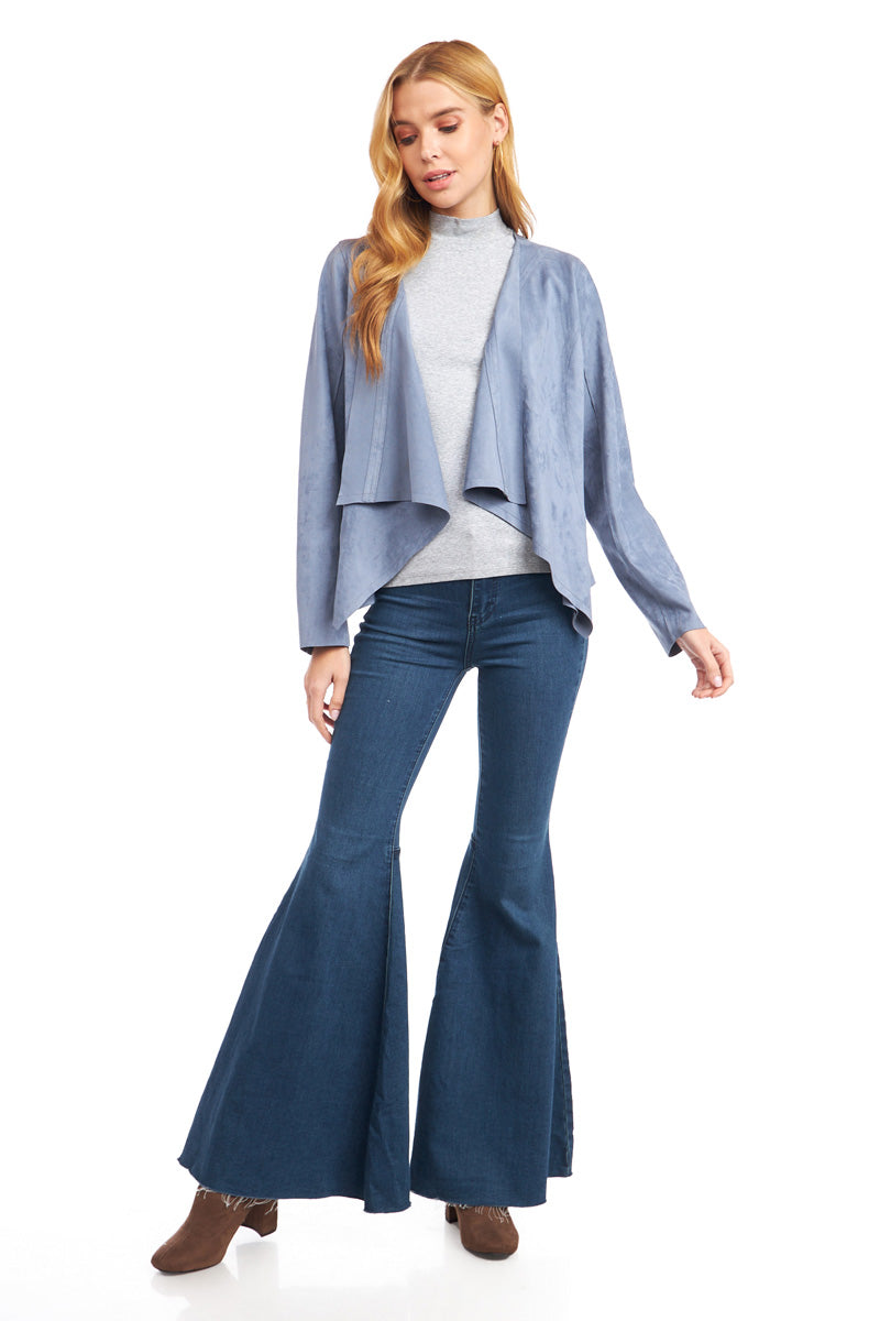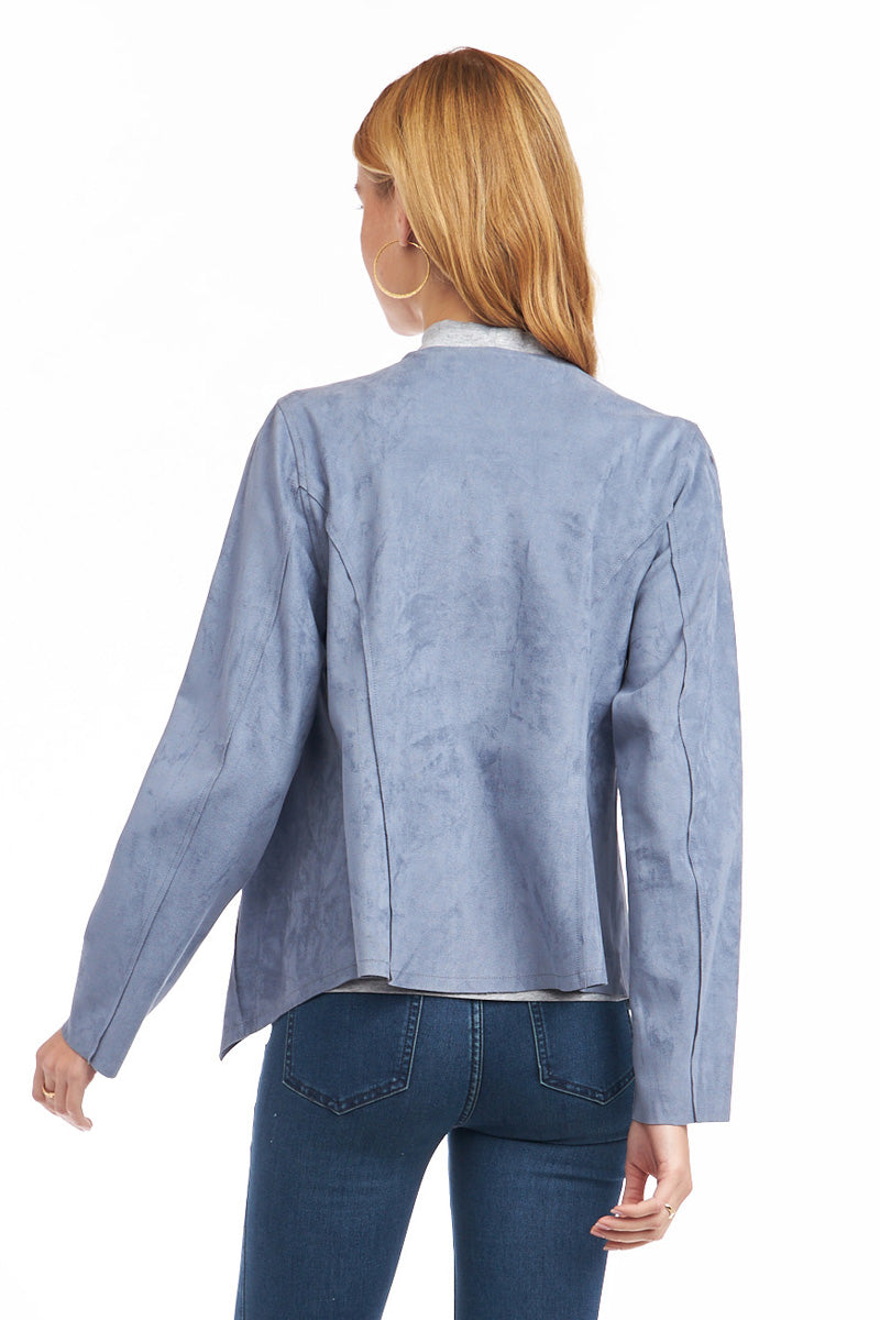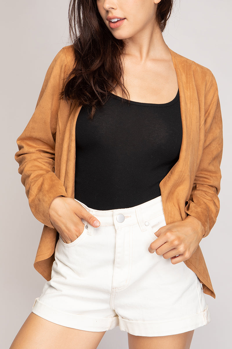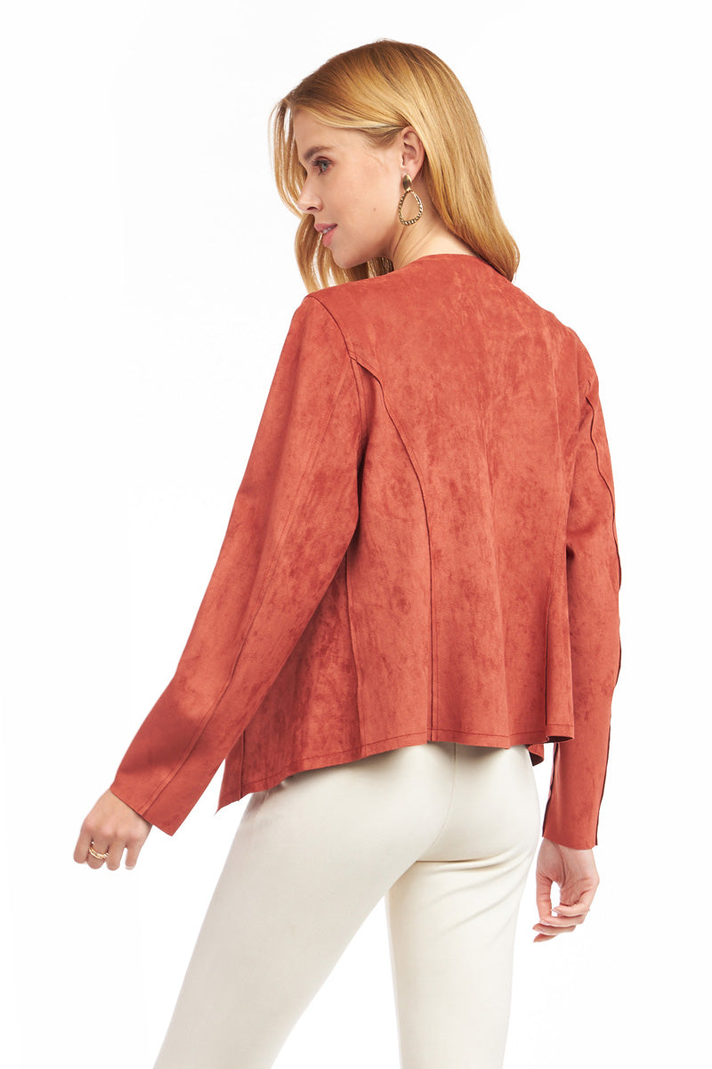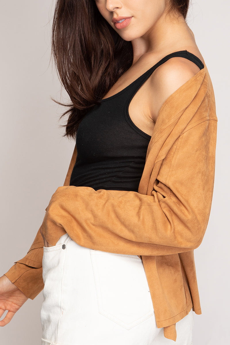 Cascading Drape Front Vegan Suede Crop Jacket