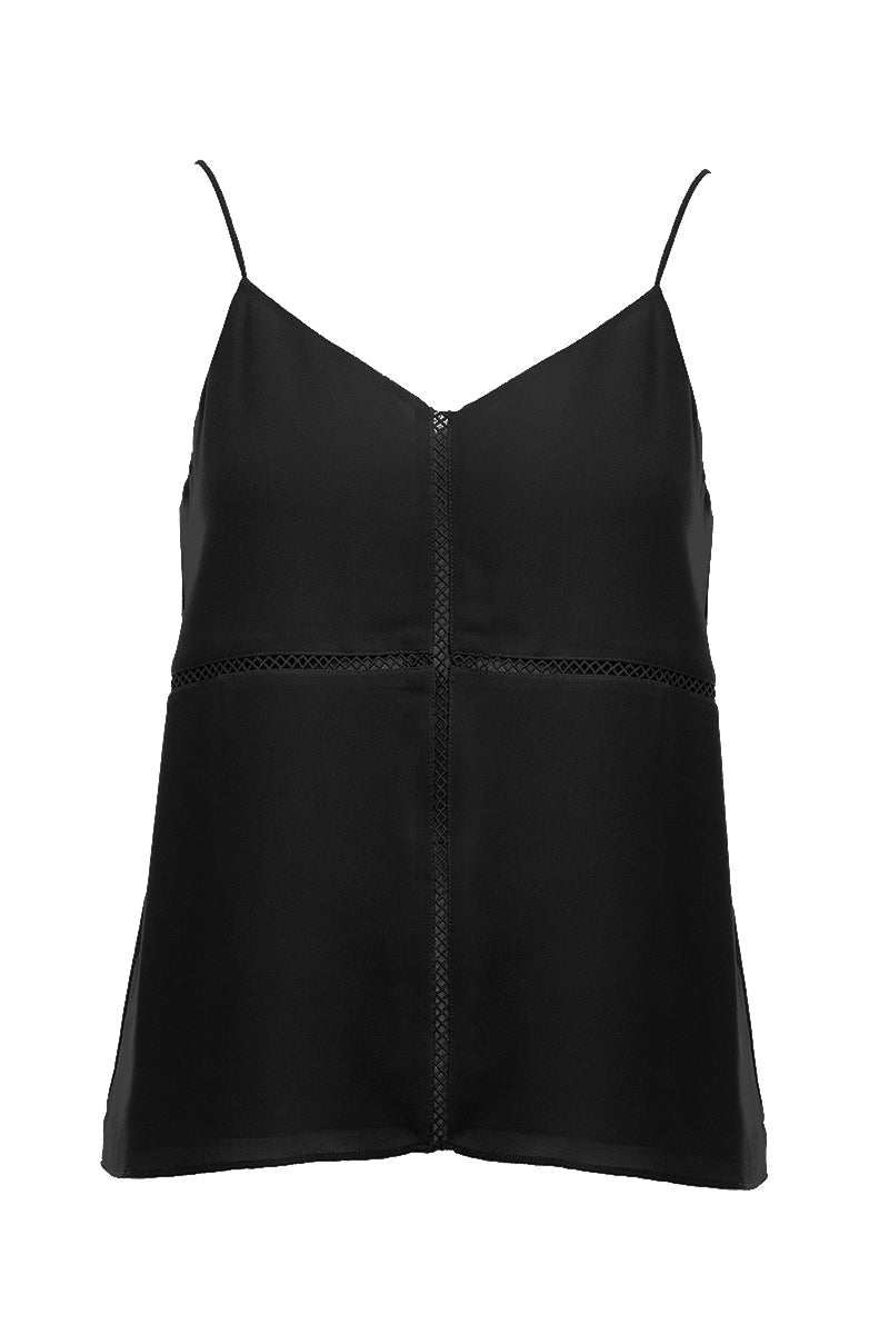 ╴Sleek and simple cami accented with delicate trim for a refined finish.
