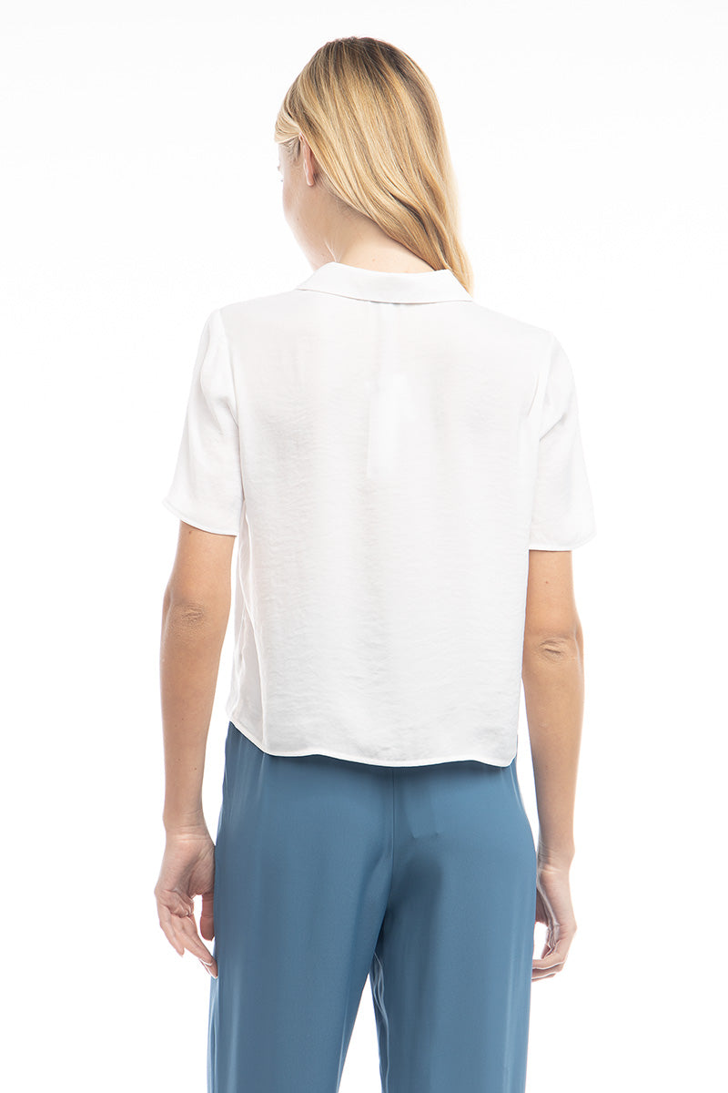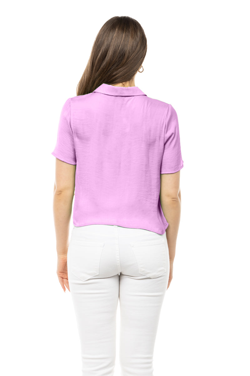 Collar Satin Blouse With Button Detail