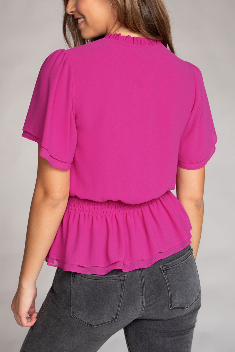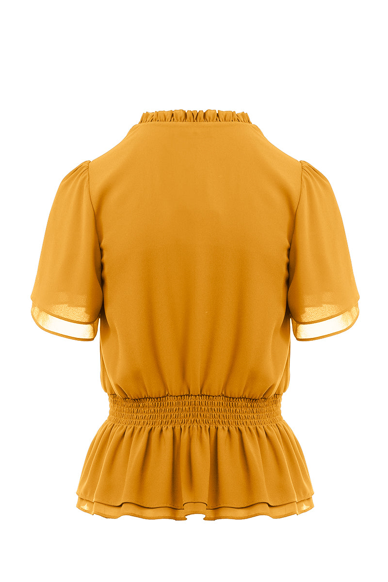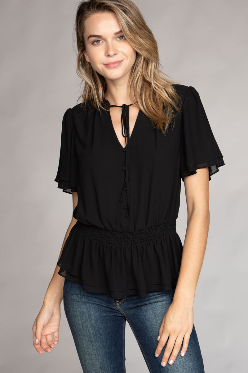Crop Smocking Waist Bell Sleeve Blouse