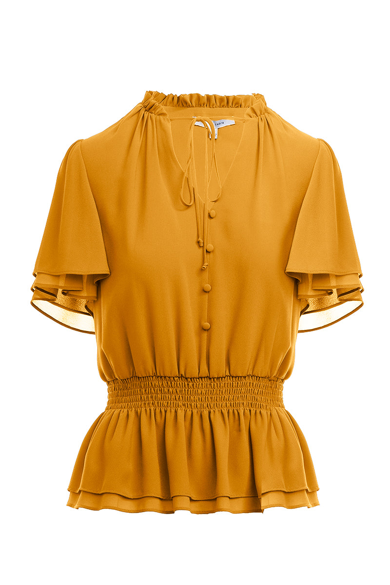 ╴Women's Crop Smocking Waist Bell Sleeve Blouse