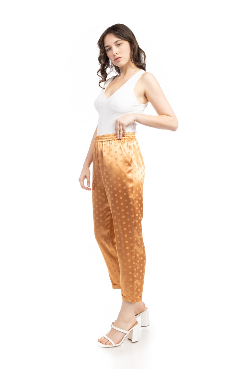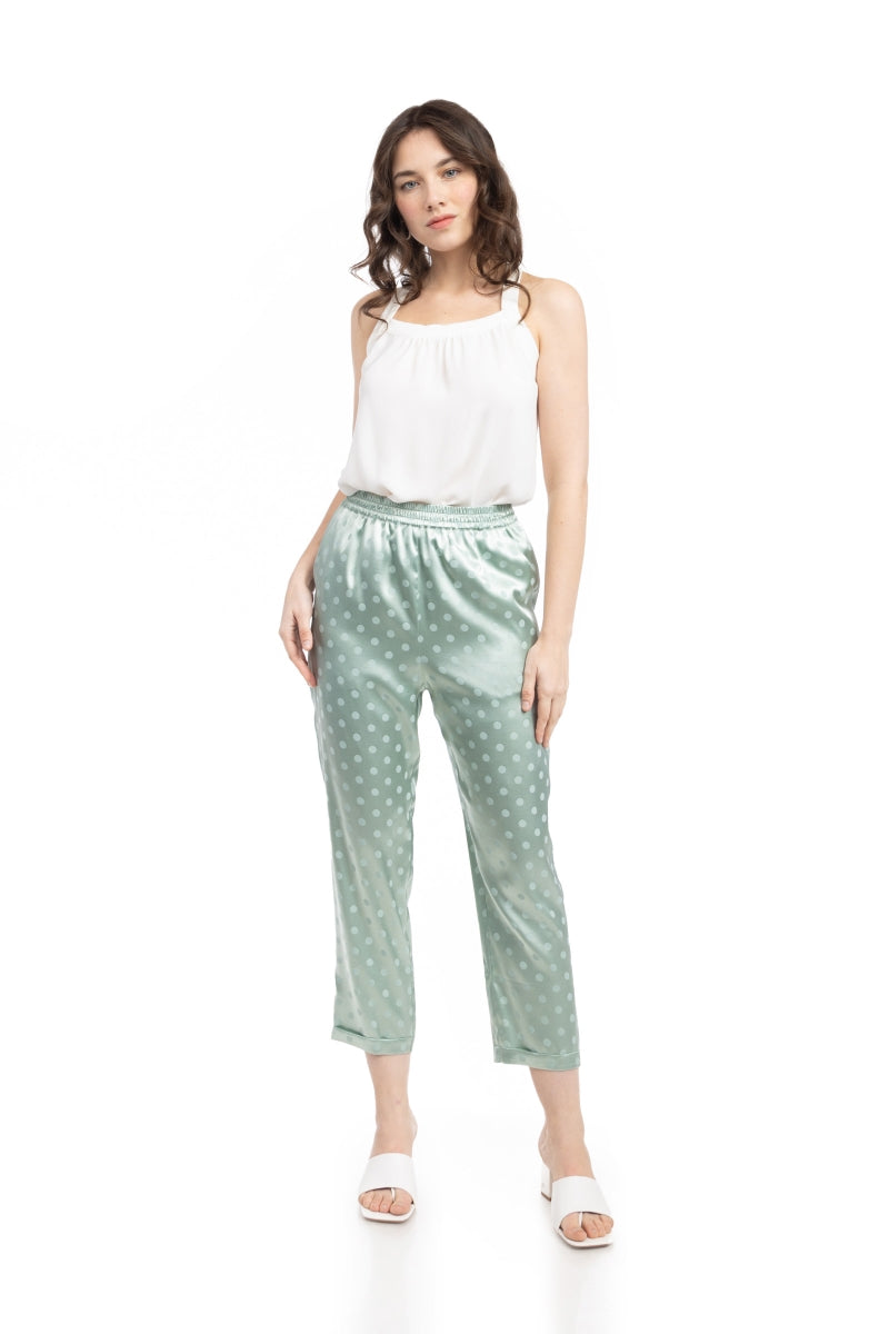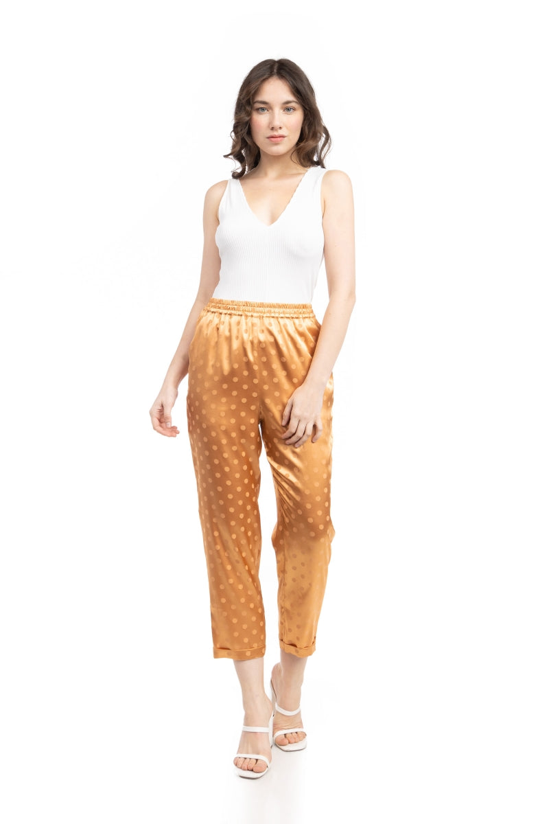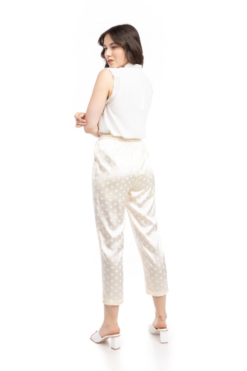 Crop Straight Waist Elastic Satin Jacquard Pants