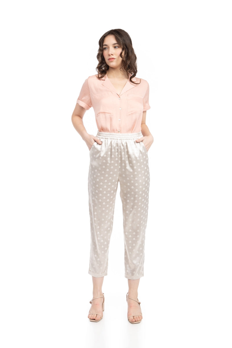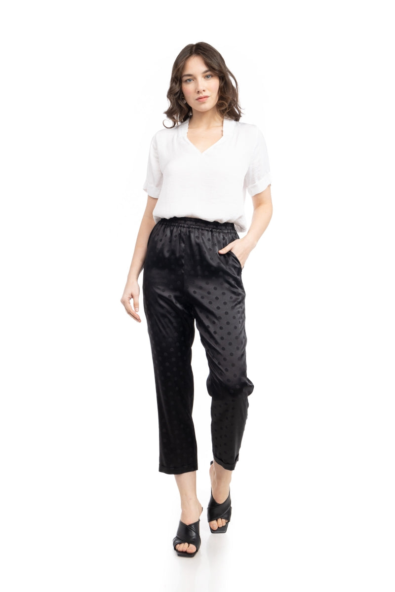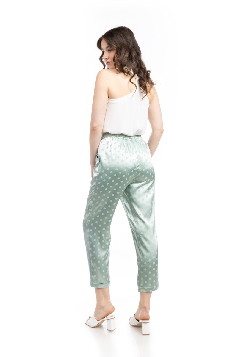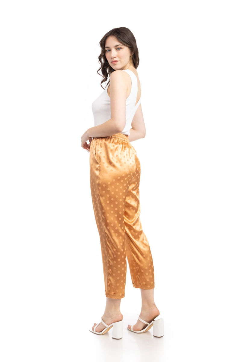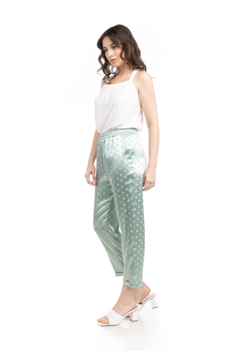 Crop Straight Waist Elastic Satin Jacquard Pants