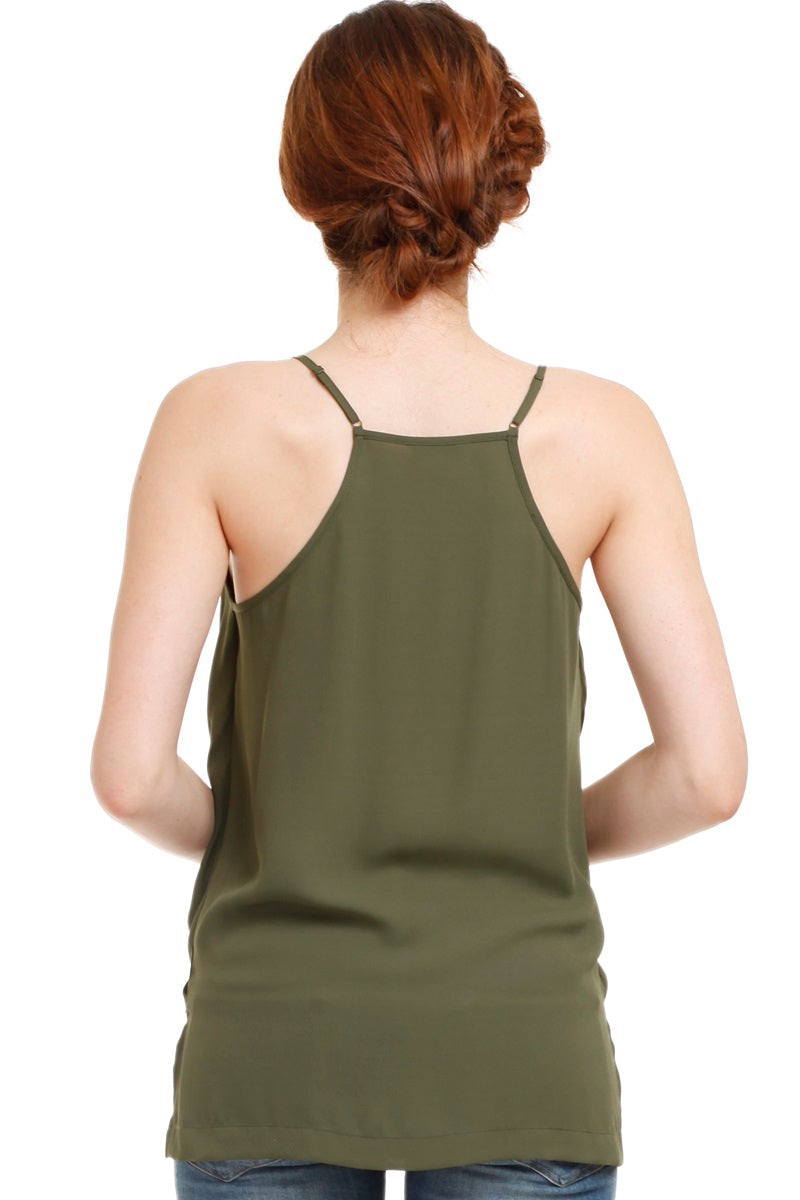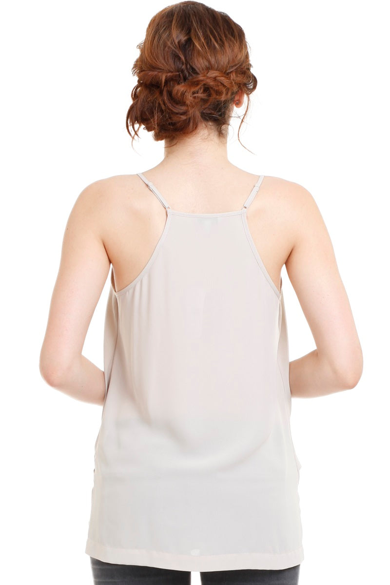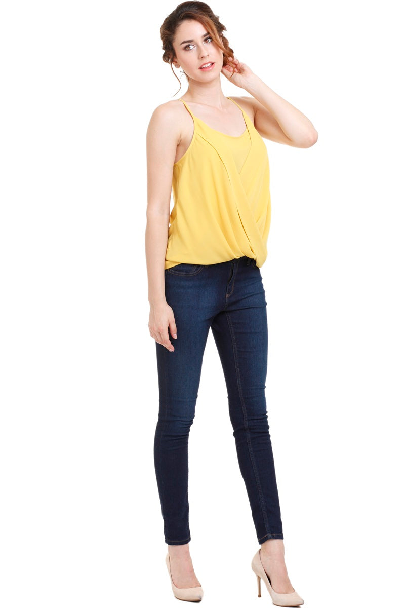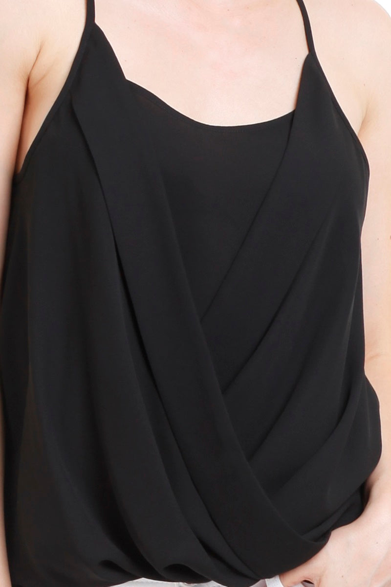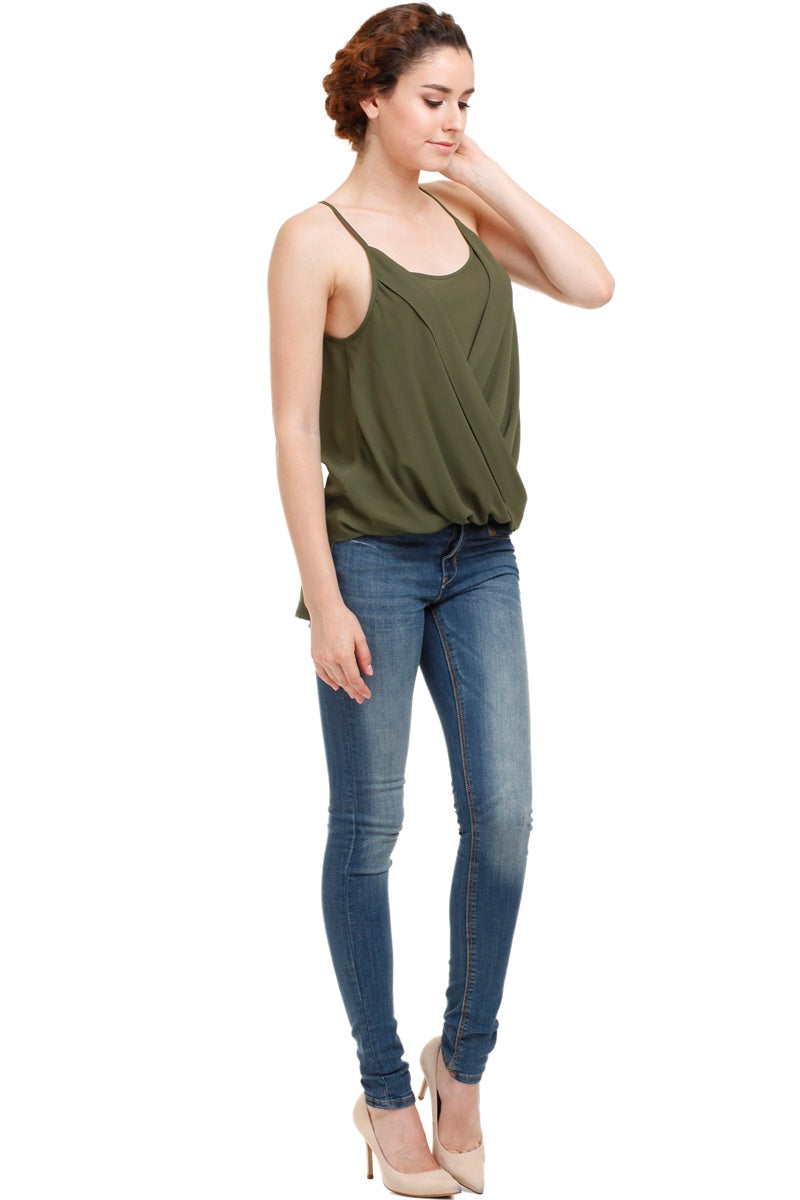╴Delicate spaghetti straps with a cross-over front for a flattering, feminine touch.
