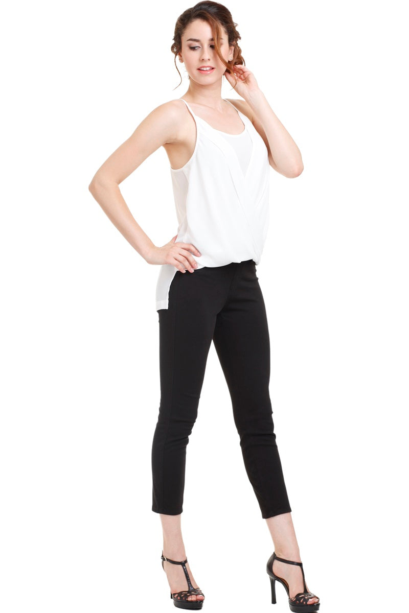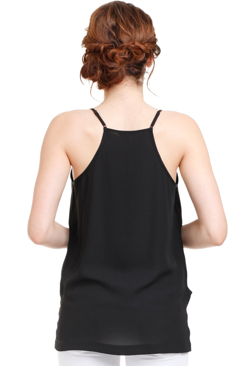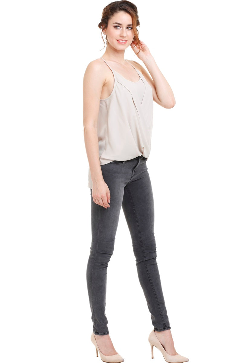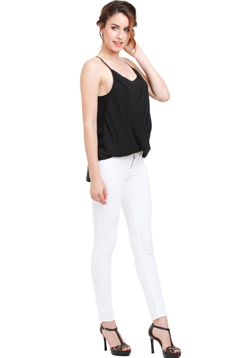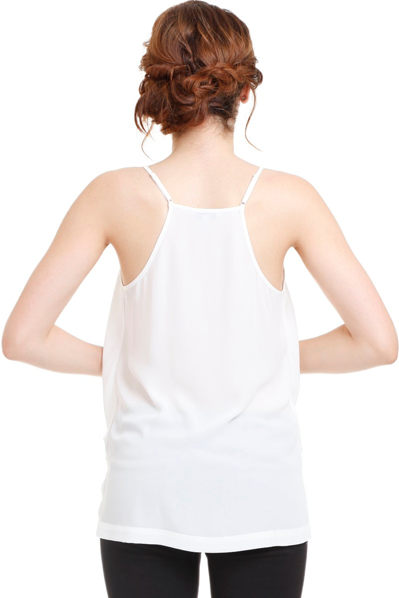 ╴Delicate spaghetti straps with a cross-over front for a flattering, feminine touch.