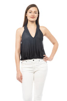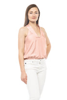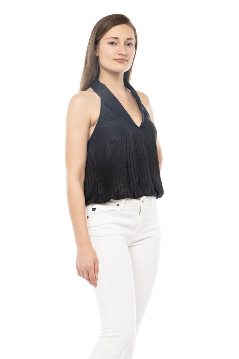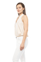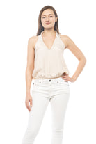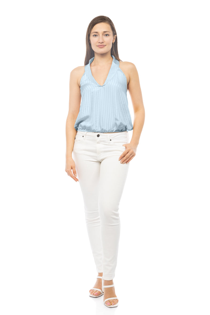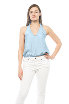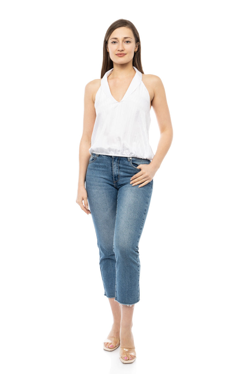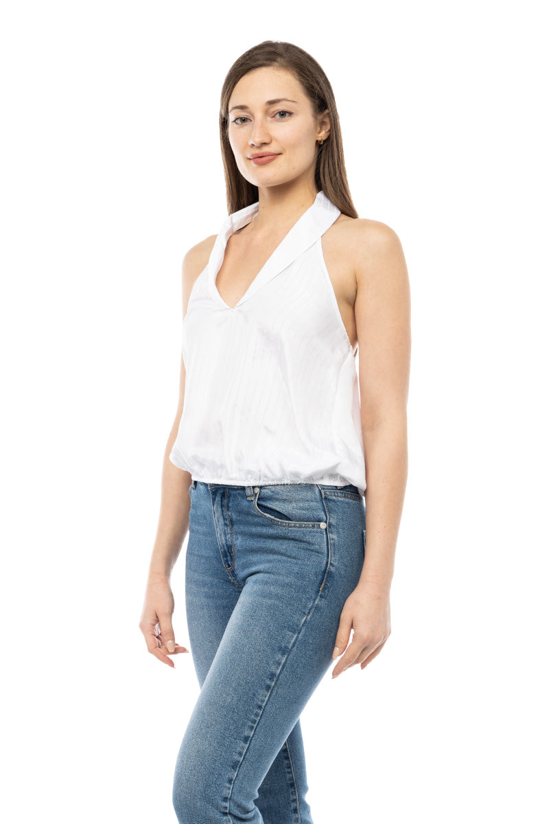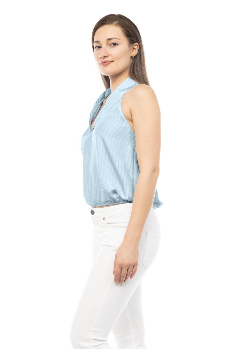 women's deep neck top with collar and elastic waist
