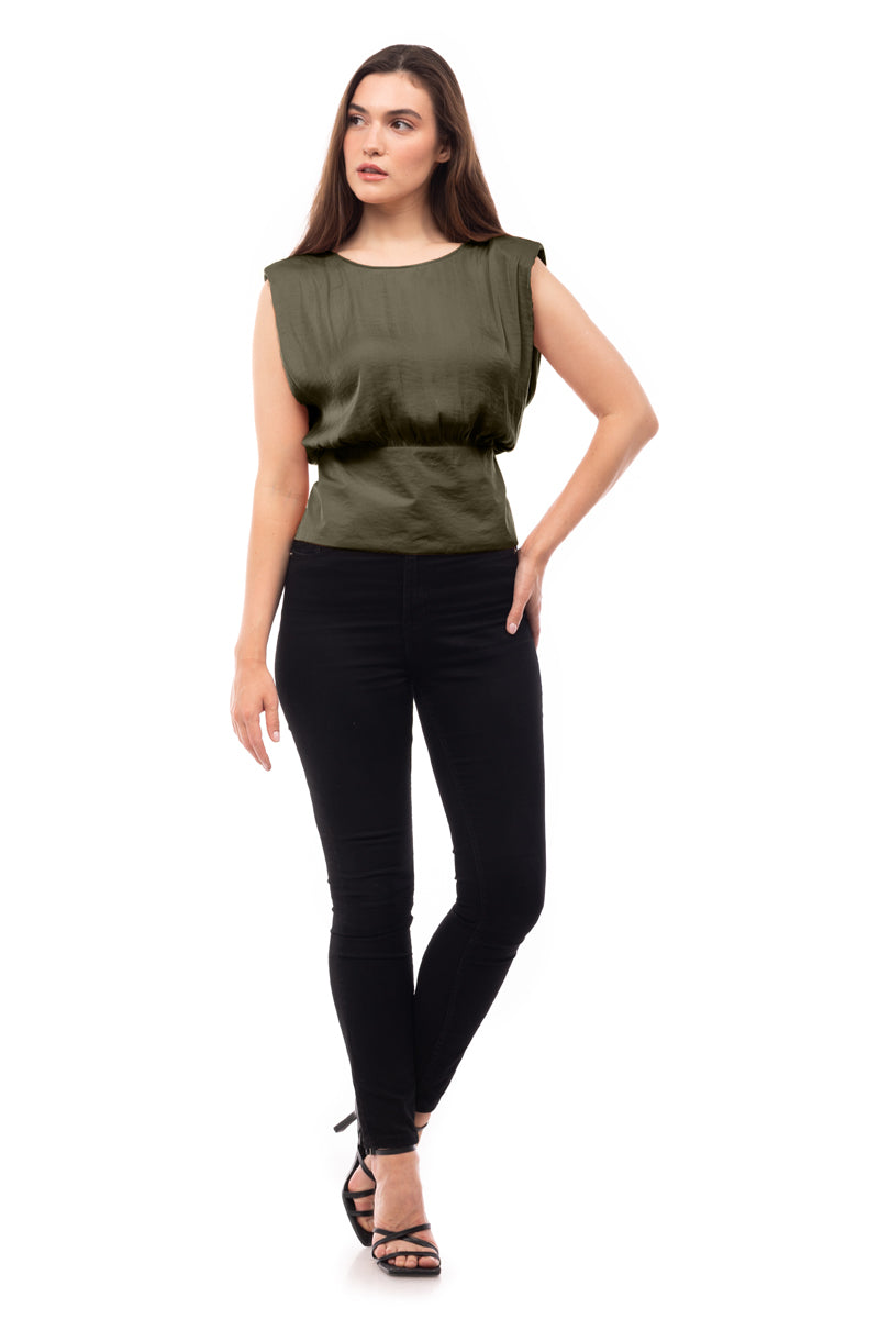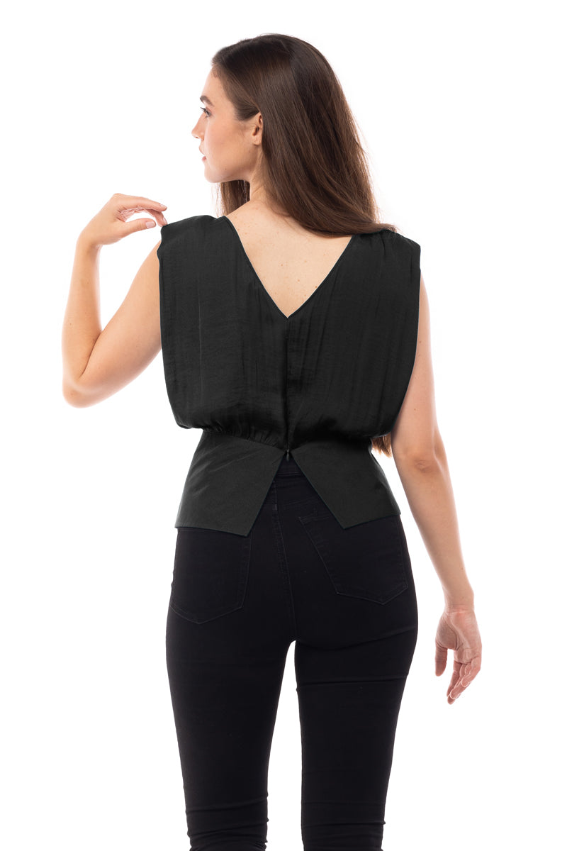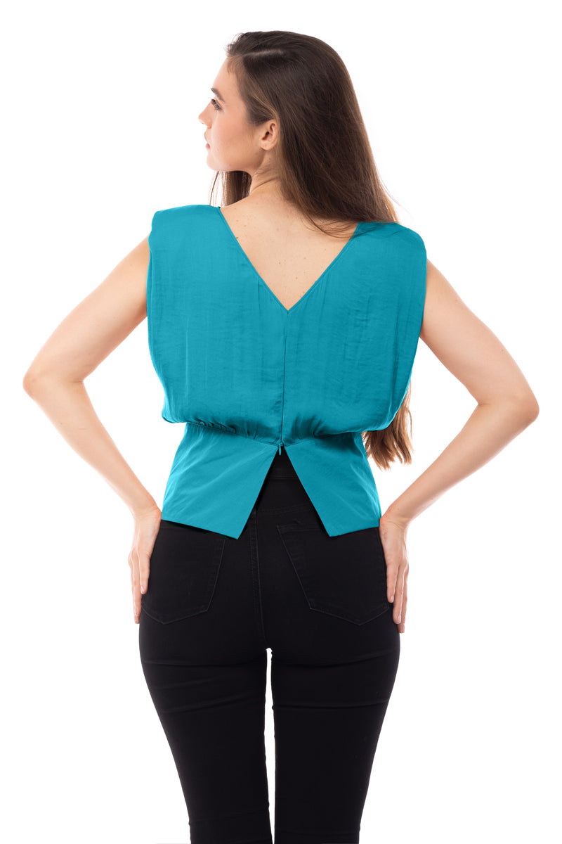 women's extended sleeve shoulder padded v-back