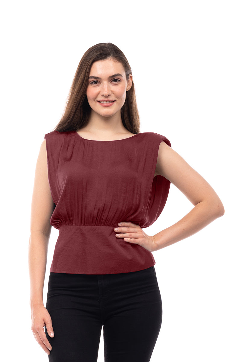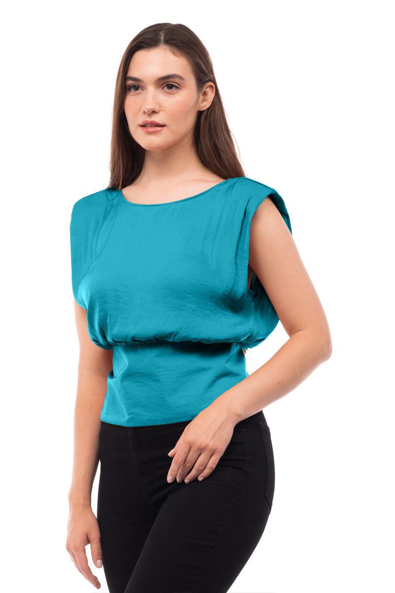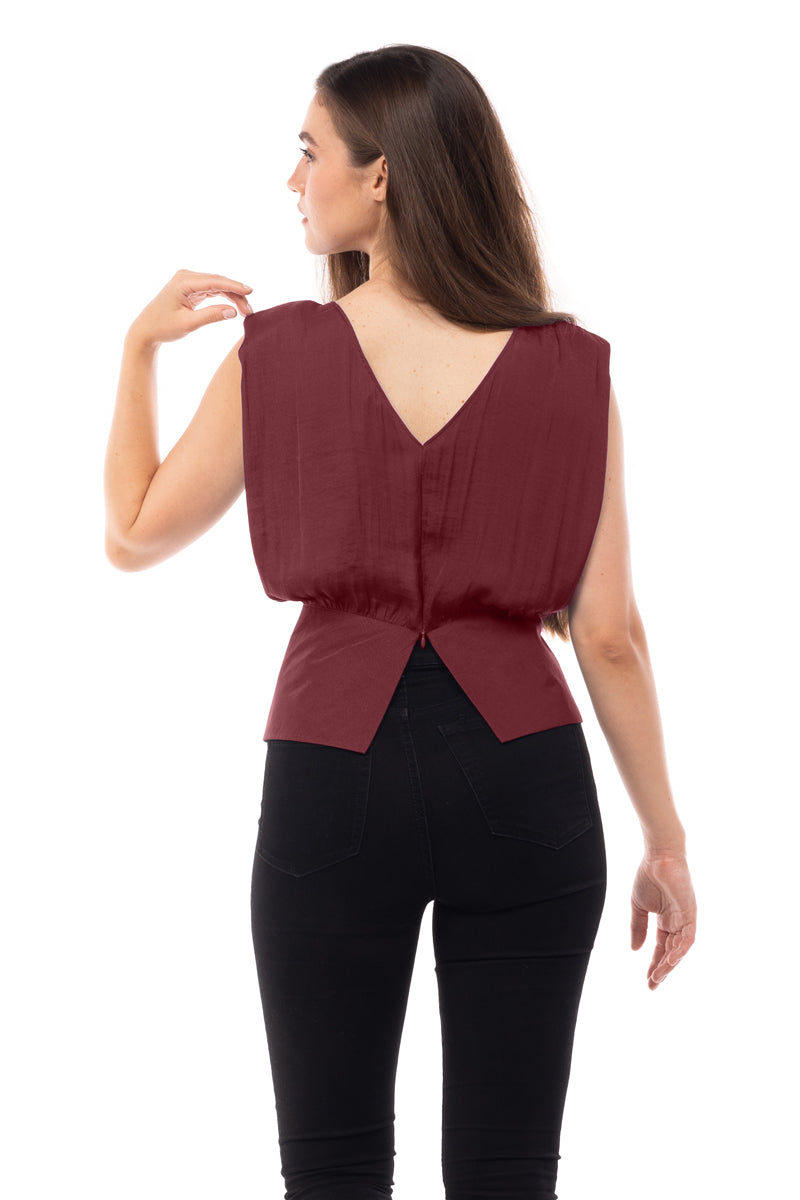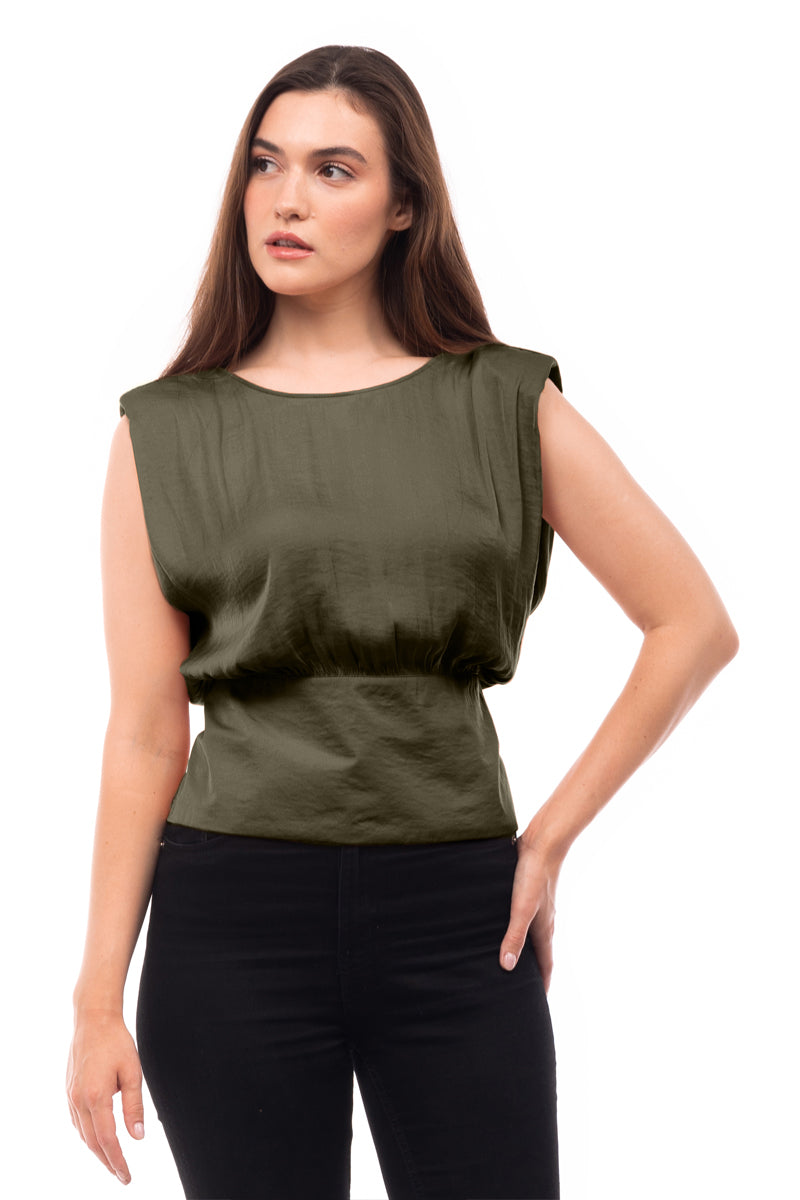women's extended sleeve shoulder padded v-back