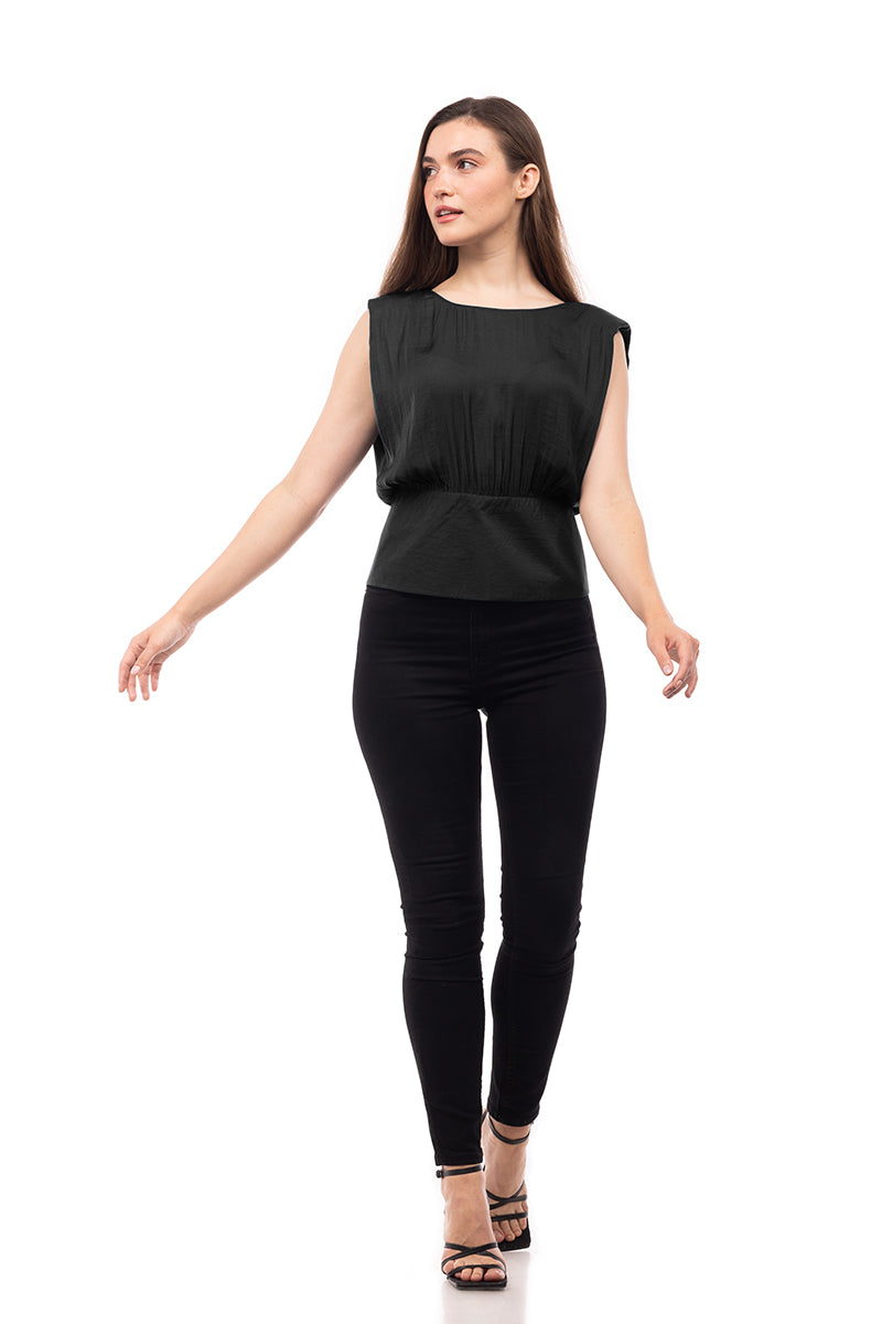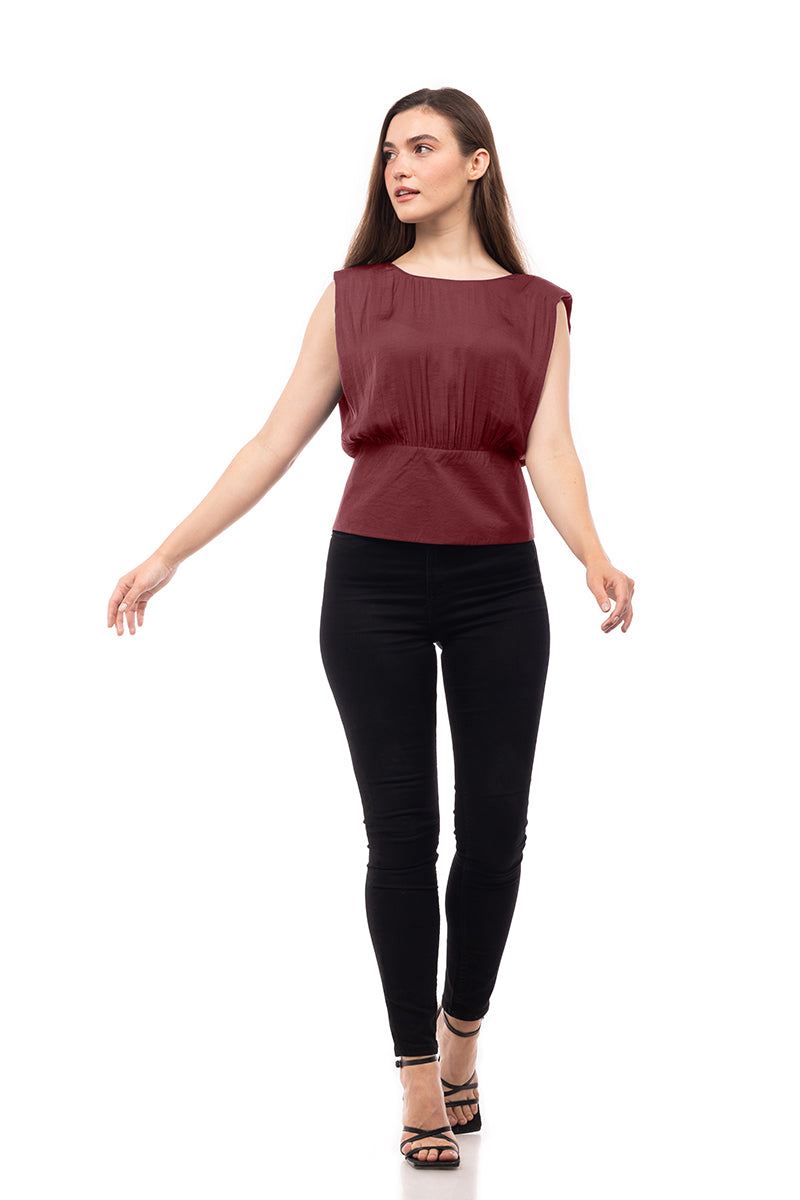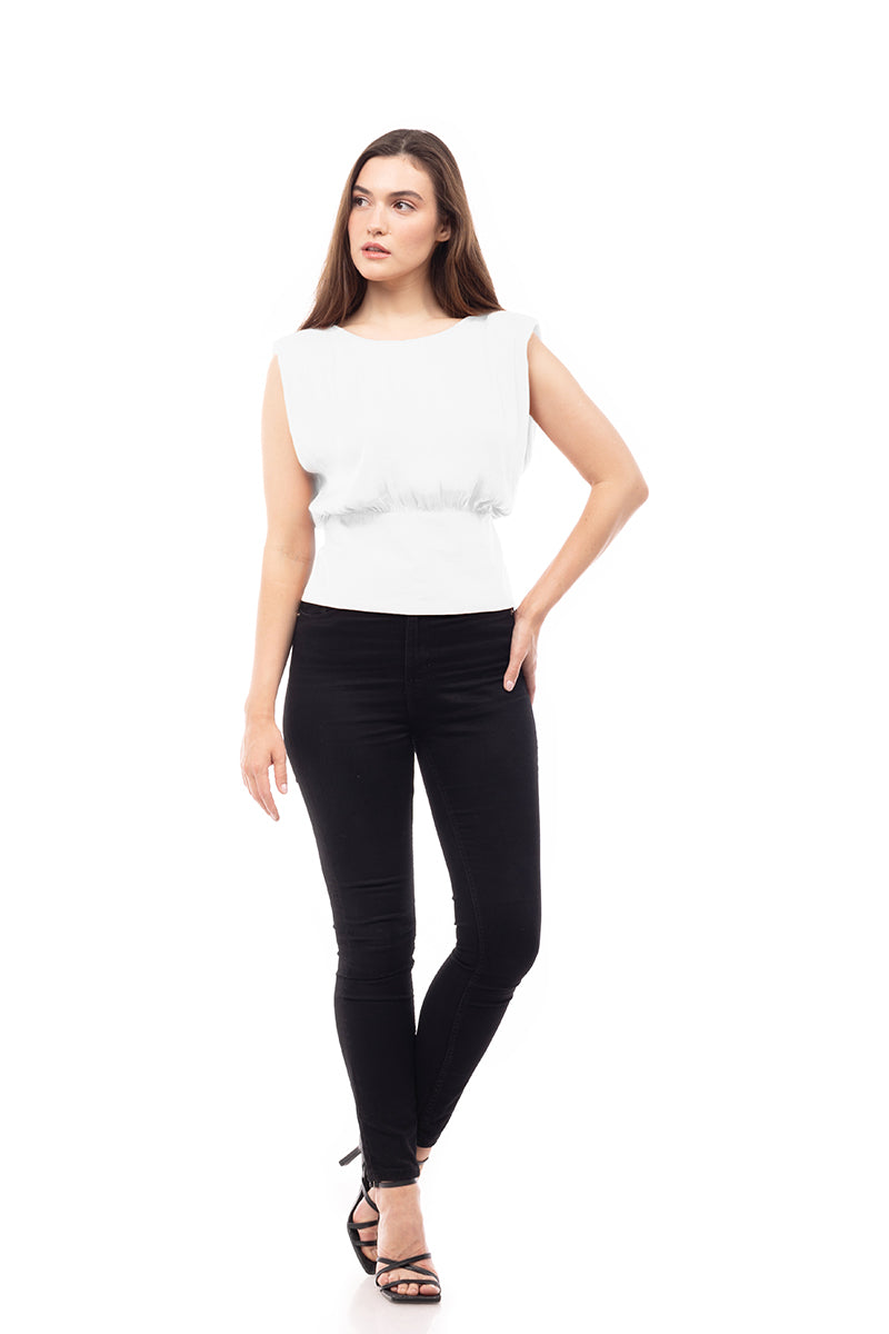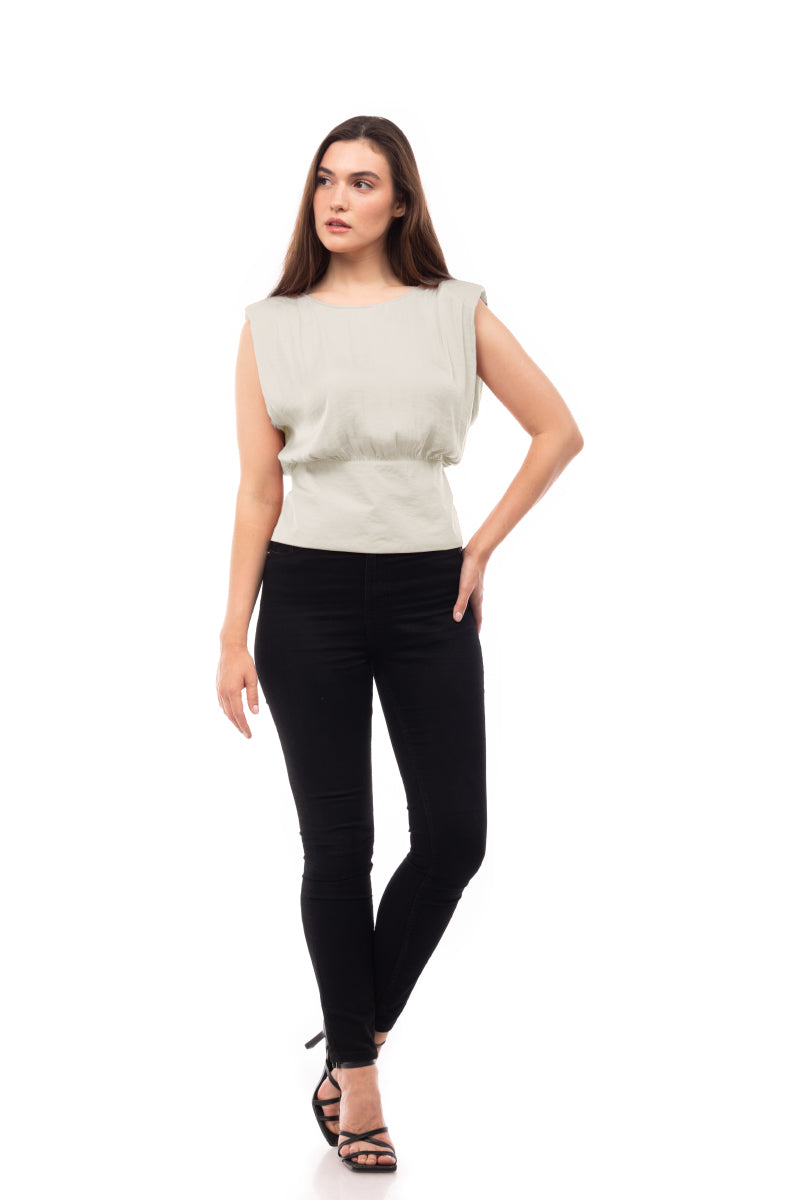 Extended Sleeve Shoulder Padded V-Back