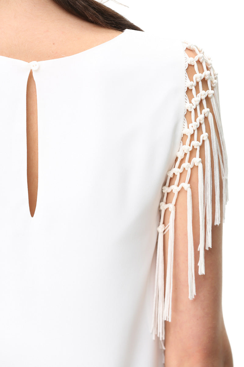 Fringe Sleeve V-Neck Dress