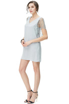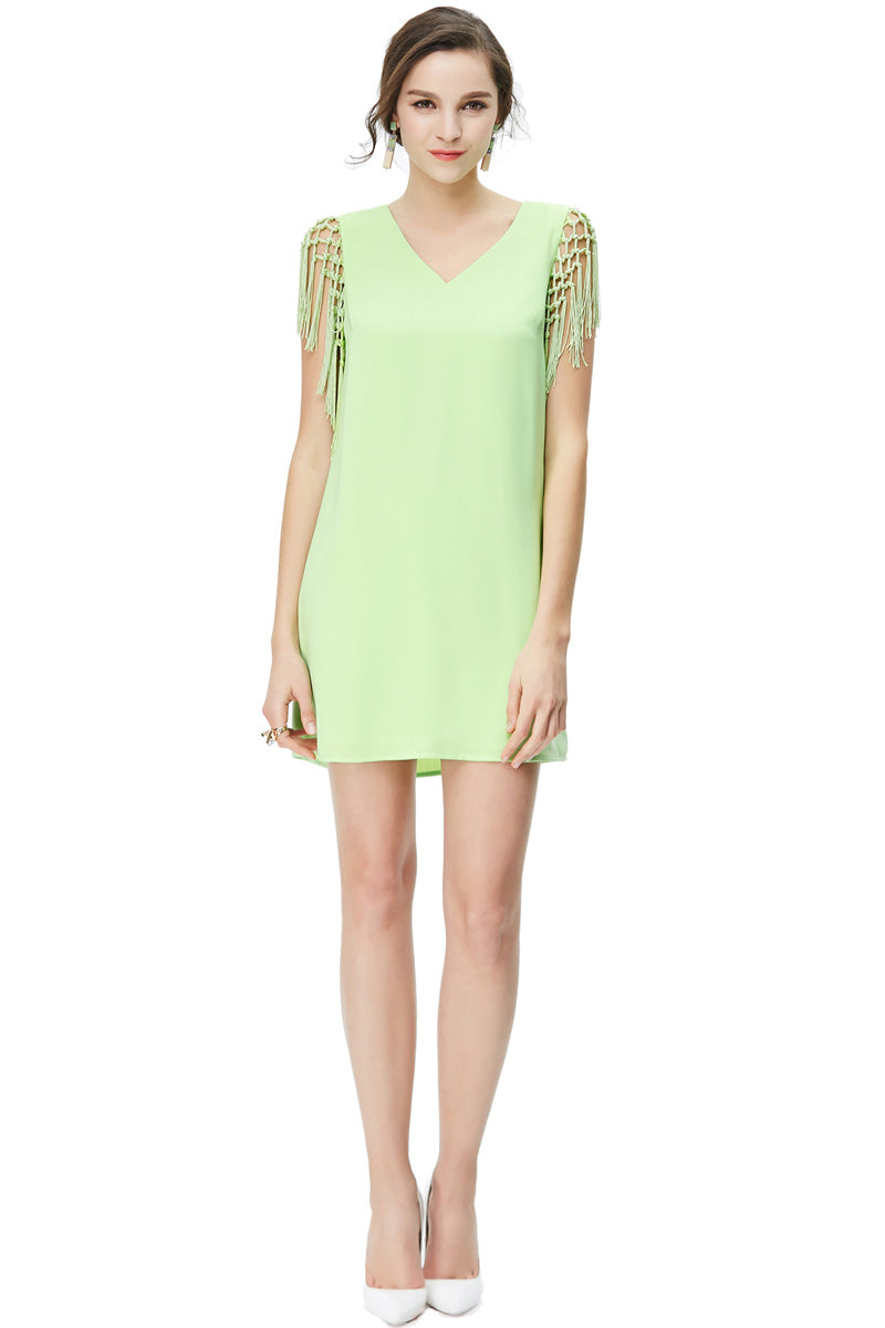 women's fringe sleeve v-neck dress