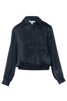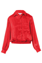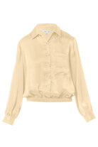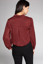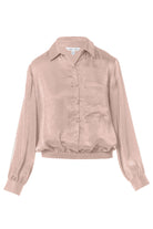 Long Sleeve Button Front Blouse With Elasticized Waist