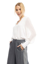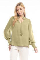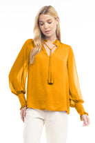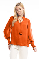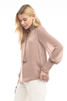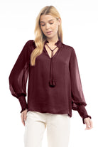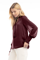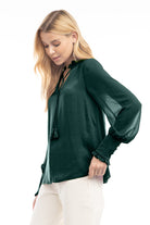 women's long sleeve tie neck blouse