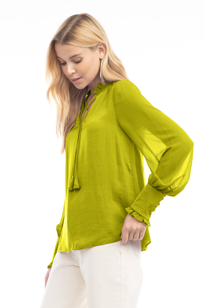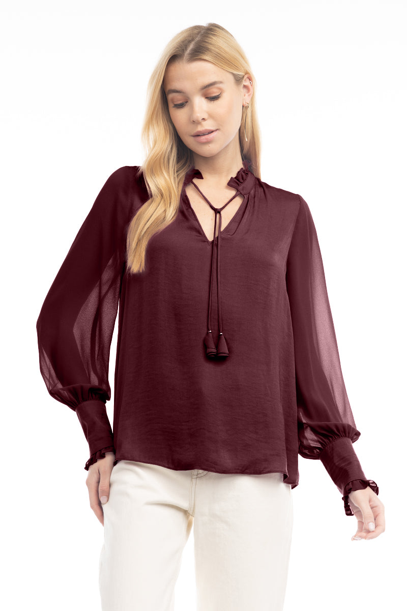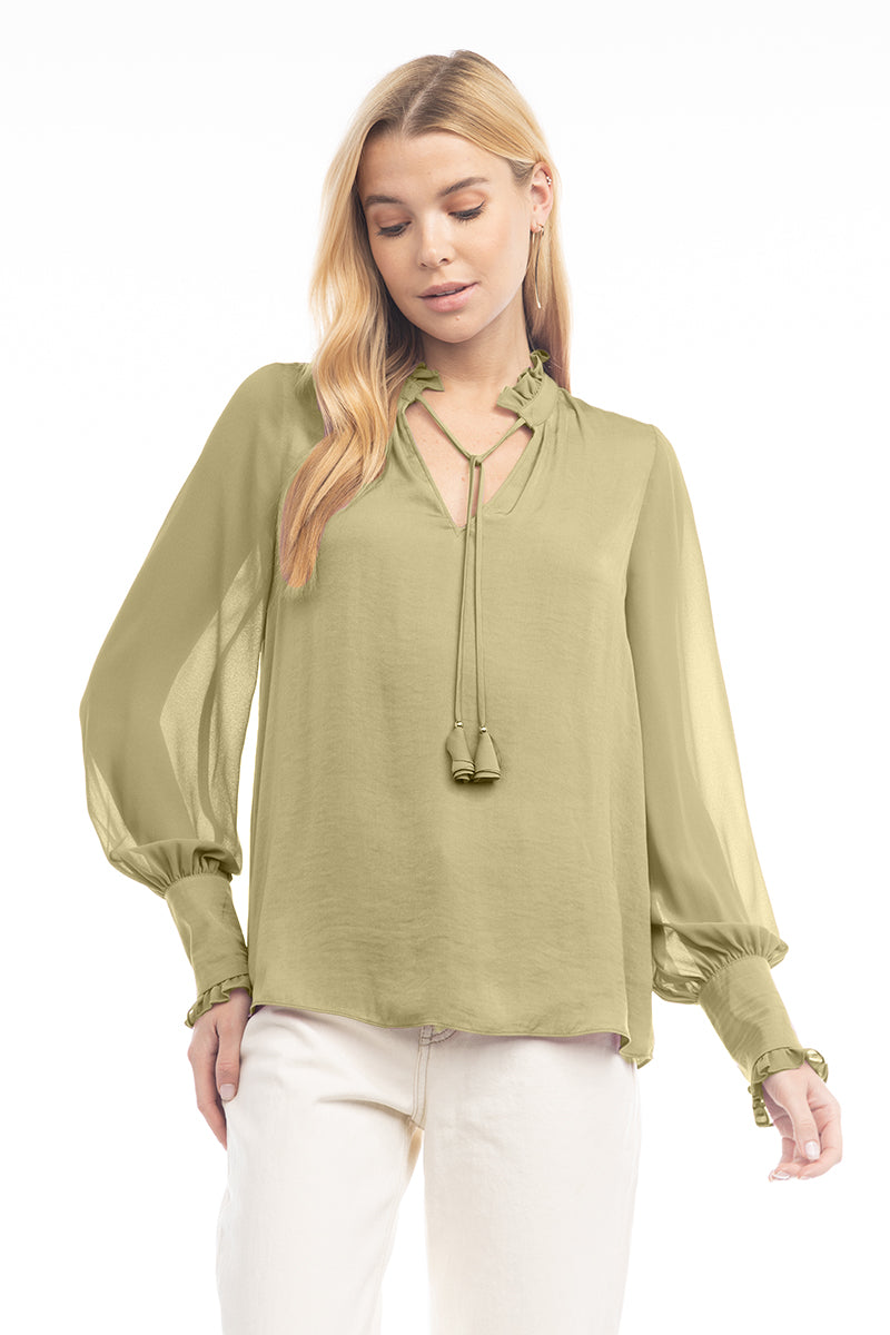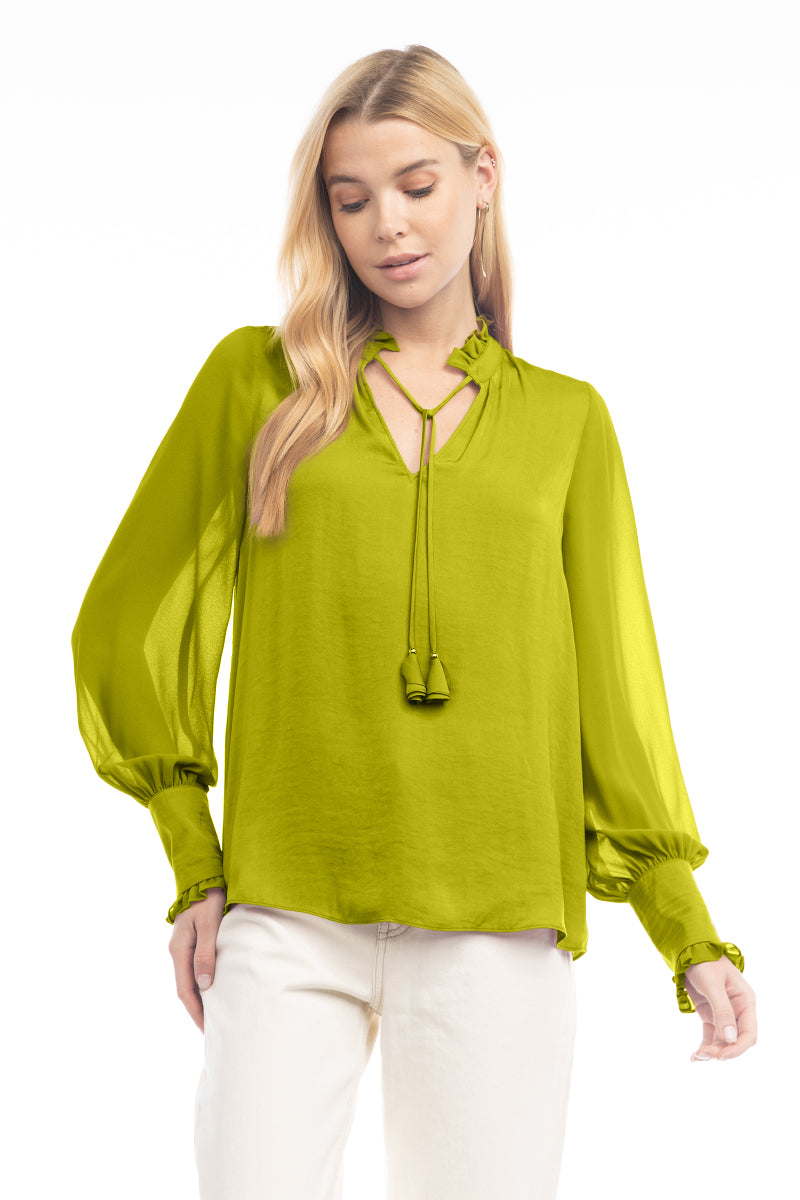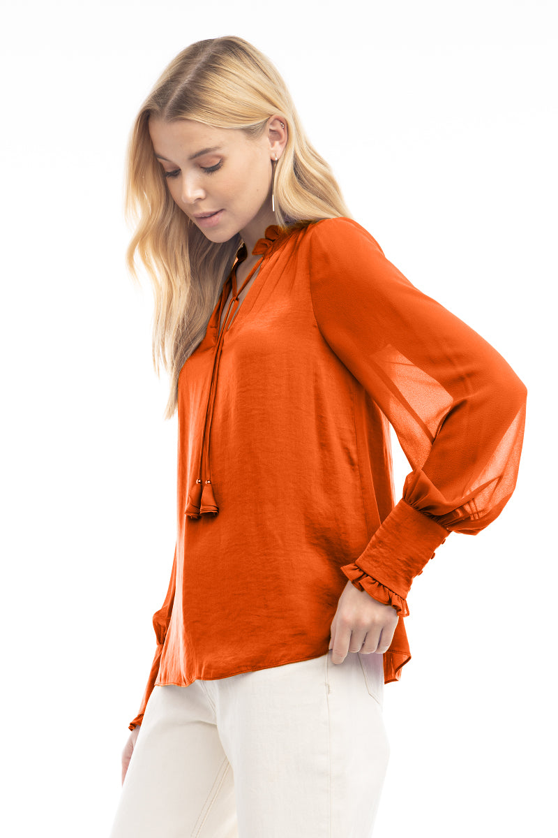 Long Sleeve Tie Neck Blouse