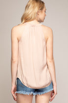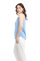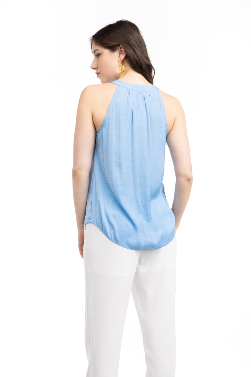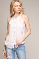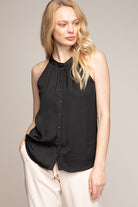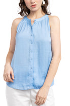 Neck Sleeveless Button Down Top